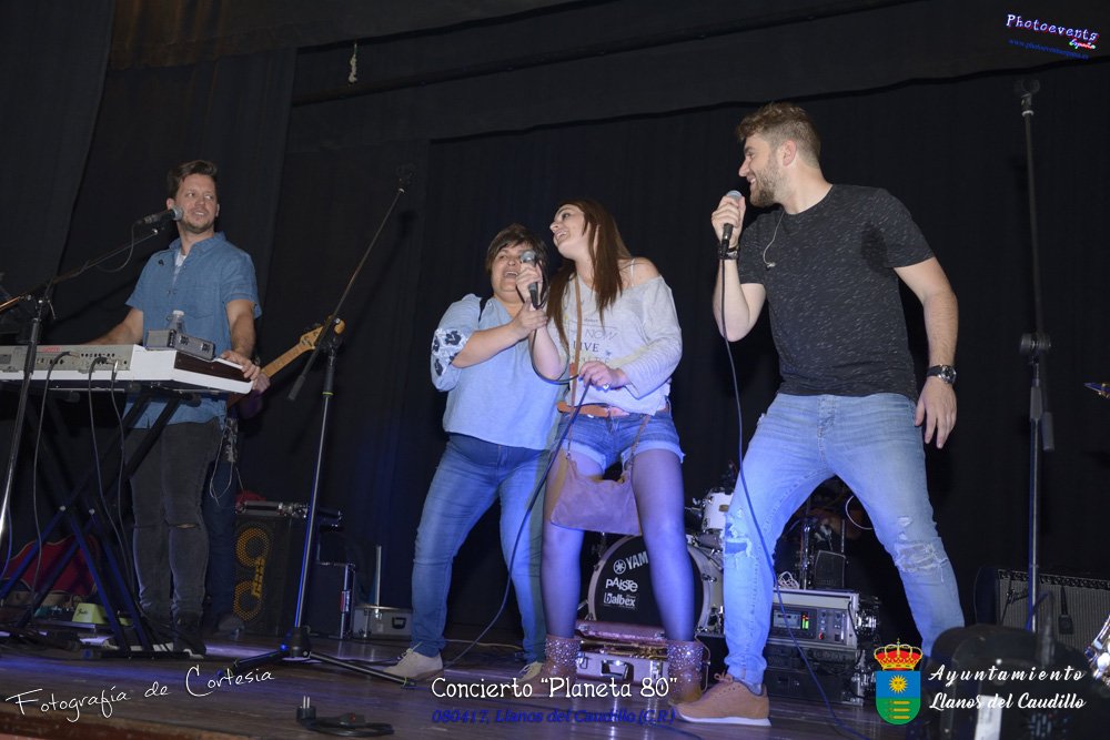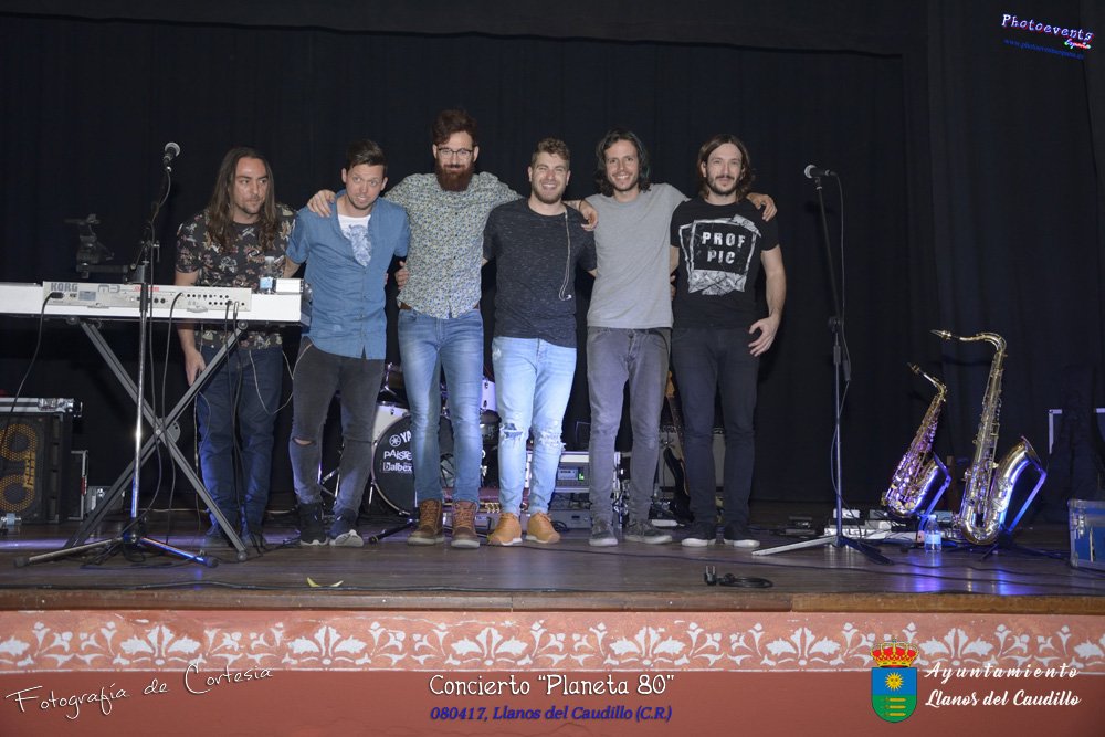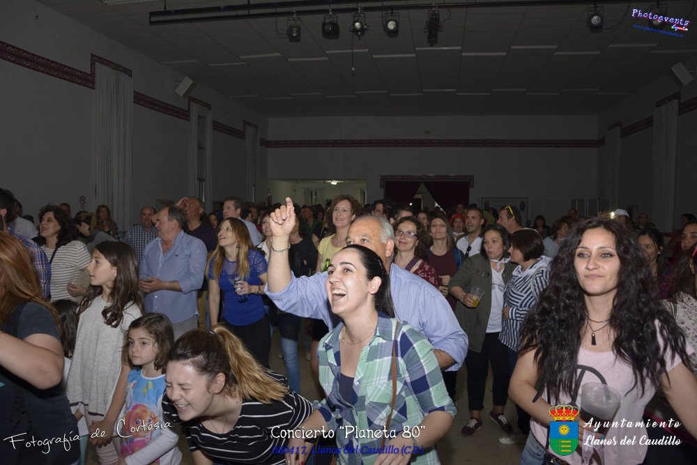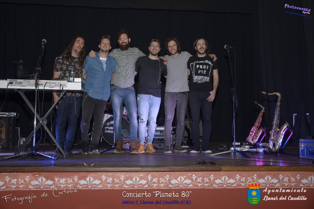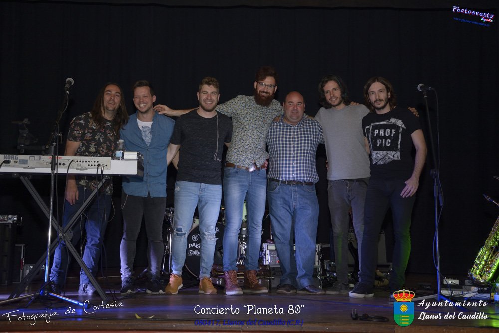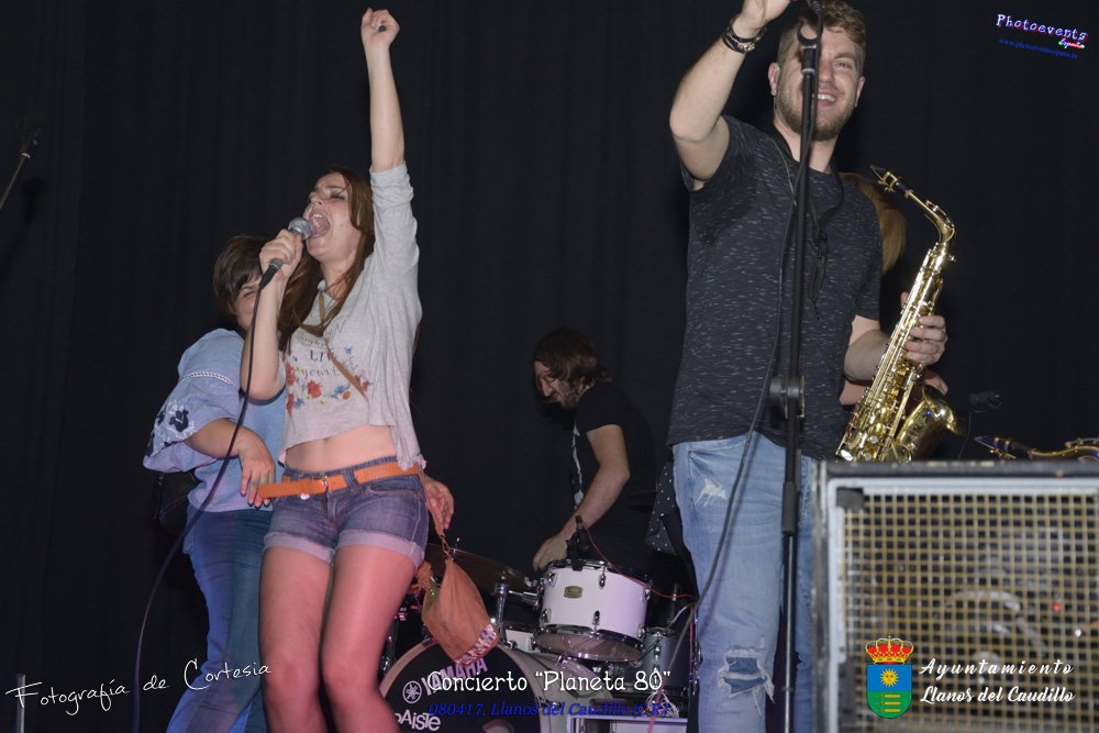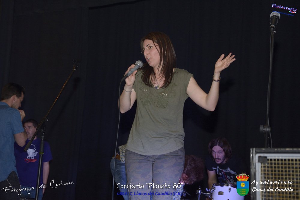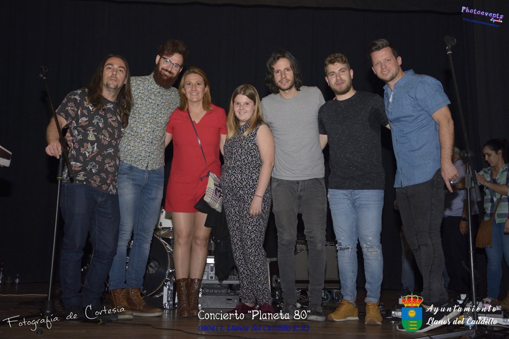 Fotografías realizadas durante el concierto realizado por el grupo Cordobes Planeta 80¨, que realiza un repaso musical Pock -Rock total de la movida de los grupos y canciones que han marcado en epoca de los 80-90, versionando a grupos conocidos como Polis, Queen, EL último de la fila y muchos más. Haciendo bailar a toda la gente que se congrgo en el Salón Cultural pasadas las 7 de la tarde . Dicho concierto se realizo el día 8 de Abril y está enmarcado dentro del programa presentado con motivo del Aniversario de constitución del Municipio de Llanos del Caudillo, Ciudad Real.