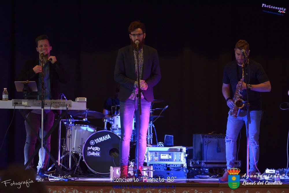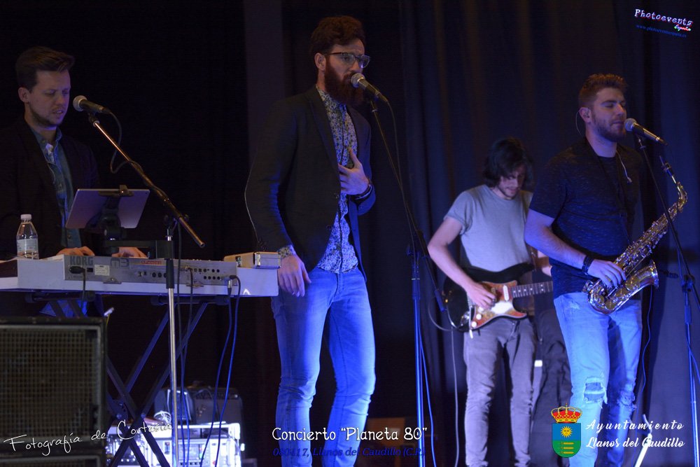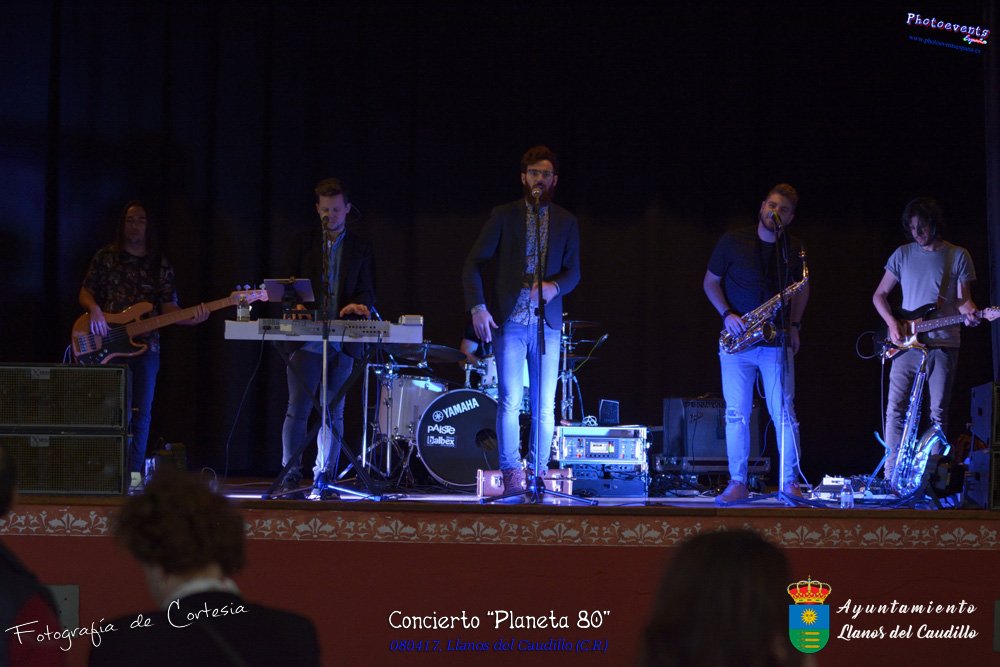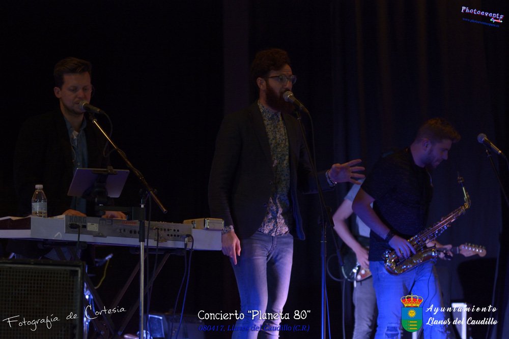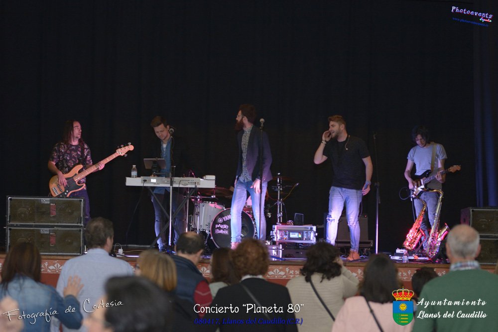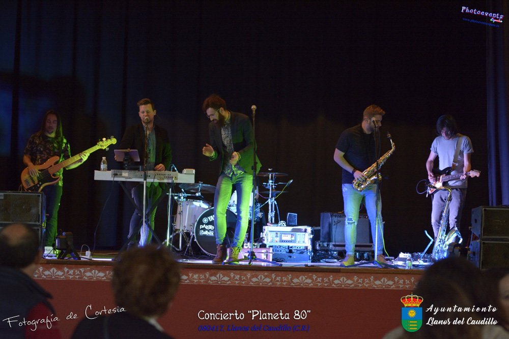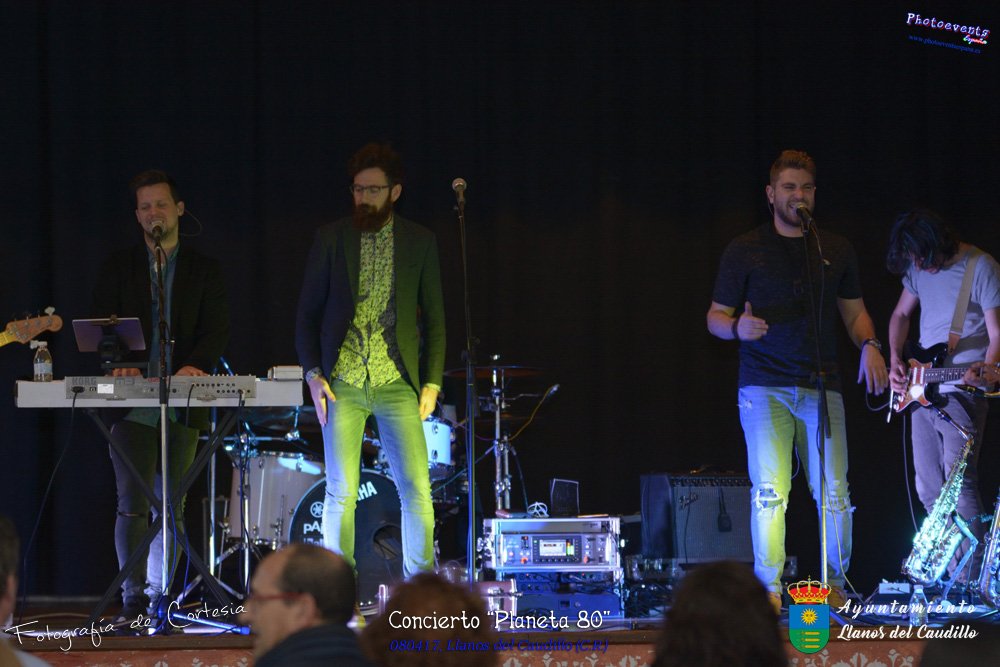 Fotografías realizadas durante el concierto realizado por el grupo Cordobes Planeta 80¨, que realiza un repaso musical Pock -Rock total de la movida de los grupos y canciones que han marcado en epoca de los 80-90, versionando a grupos conocidos como Polis, Queen, EL último de la fila y muchos más. Haciendo bailar a toda la gente que se congrgo en el Salón Cultural pasadas las 7 de la tarde . Dicho concierto se realizo el día 8 de Abril y está enmarcado dentro del programa presentado con motivo del Aniversario de constitución del Municipio de Llanos del Caudillo, Ciudad Real.