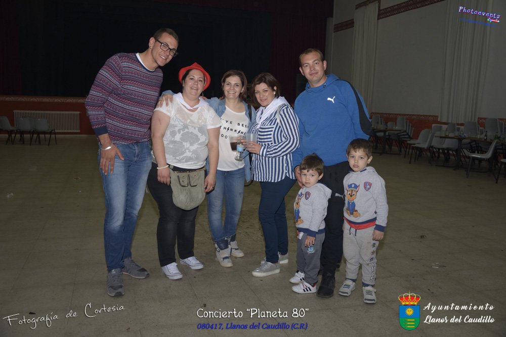 Fotografías realizadas durante el concierto realizado por el grupo Cordobes Planeta 80¨, que realiza un repaso musical Pock -Rock total de la movida de los grupos y canciones que han marcado en epoca de los 80-90, versionando a grupos conocidos como Polis, Queen, EL último de la fila y muchos más. Haciendo bailar a toda la gente que se congrgo en el Salón Cultural pasadas las 7 de la tarde . Dicho concierto se realizo el día 8 de Abril y está enmarcado dentro del programa presentado con motivo del Aniversario de constitución del Municipio de Llanos del Caudillo, Ciudad Real.
