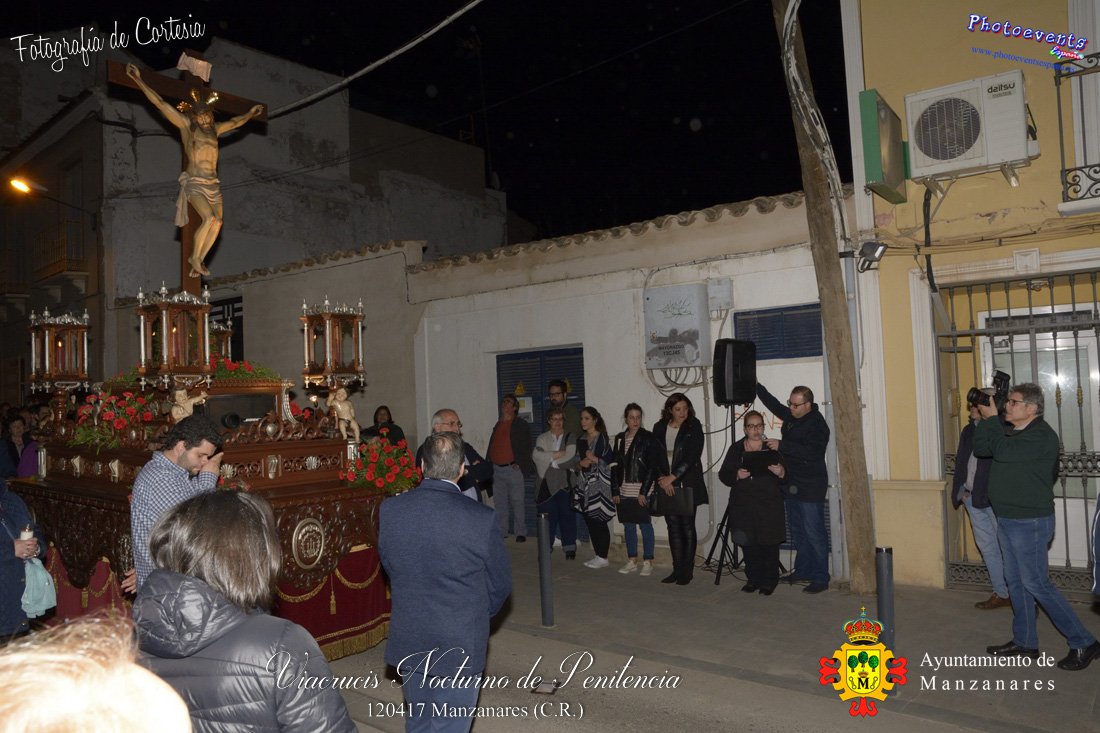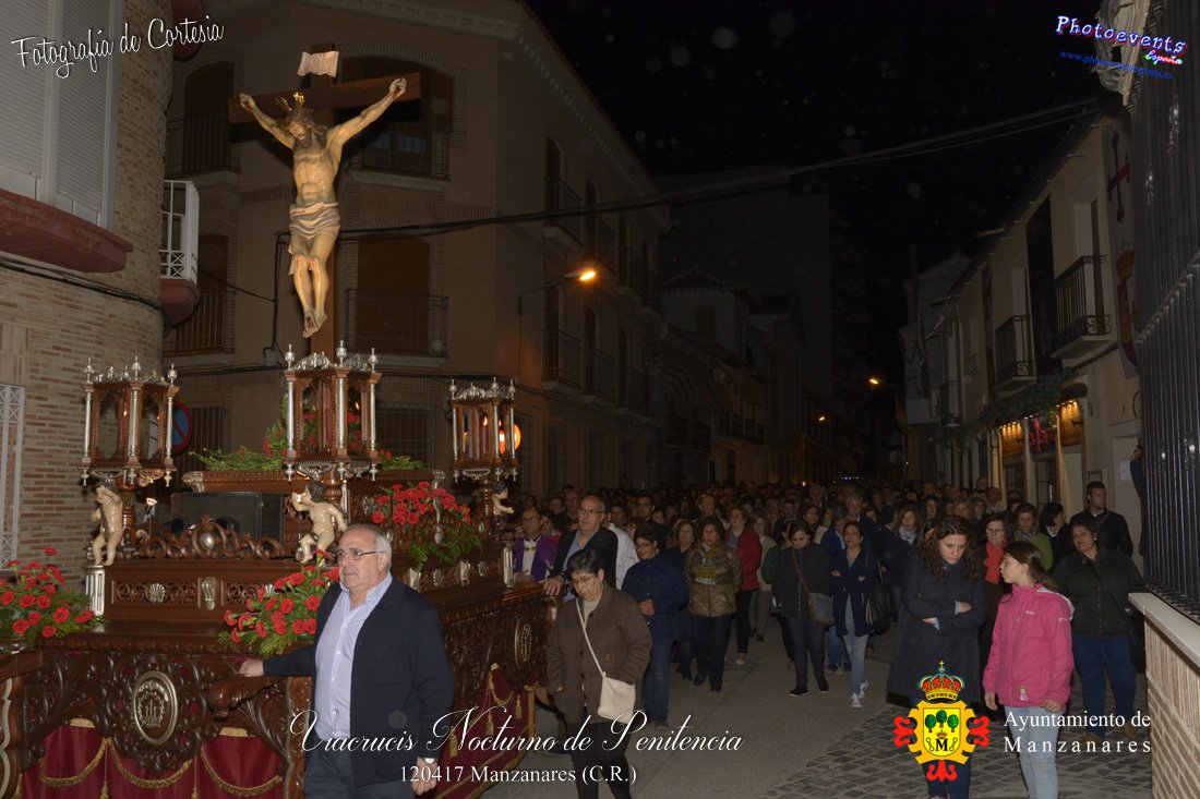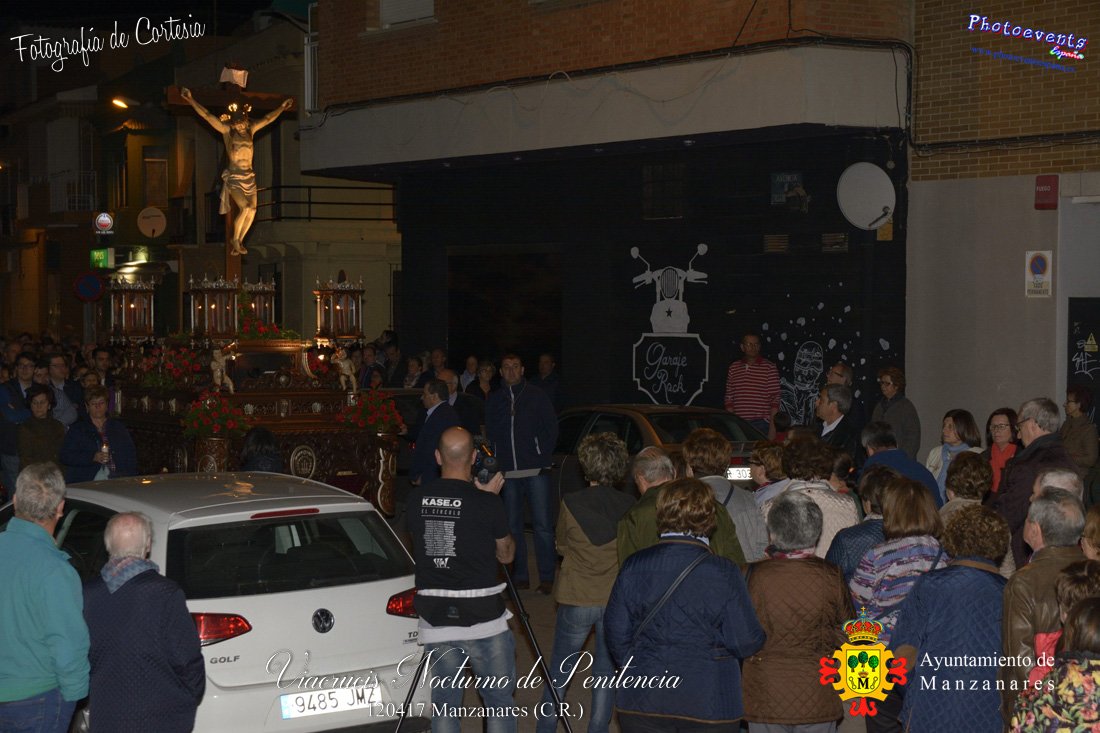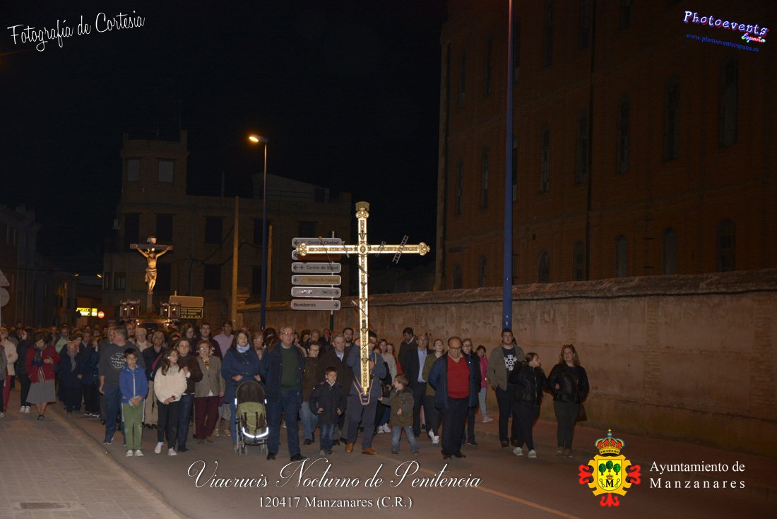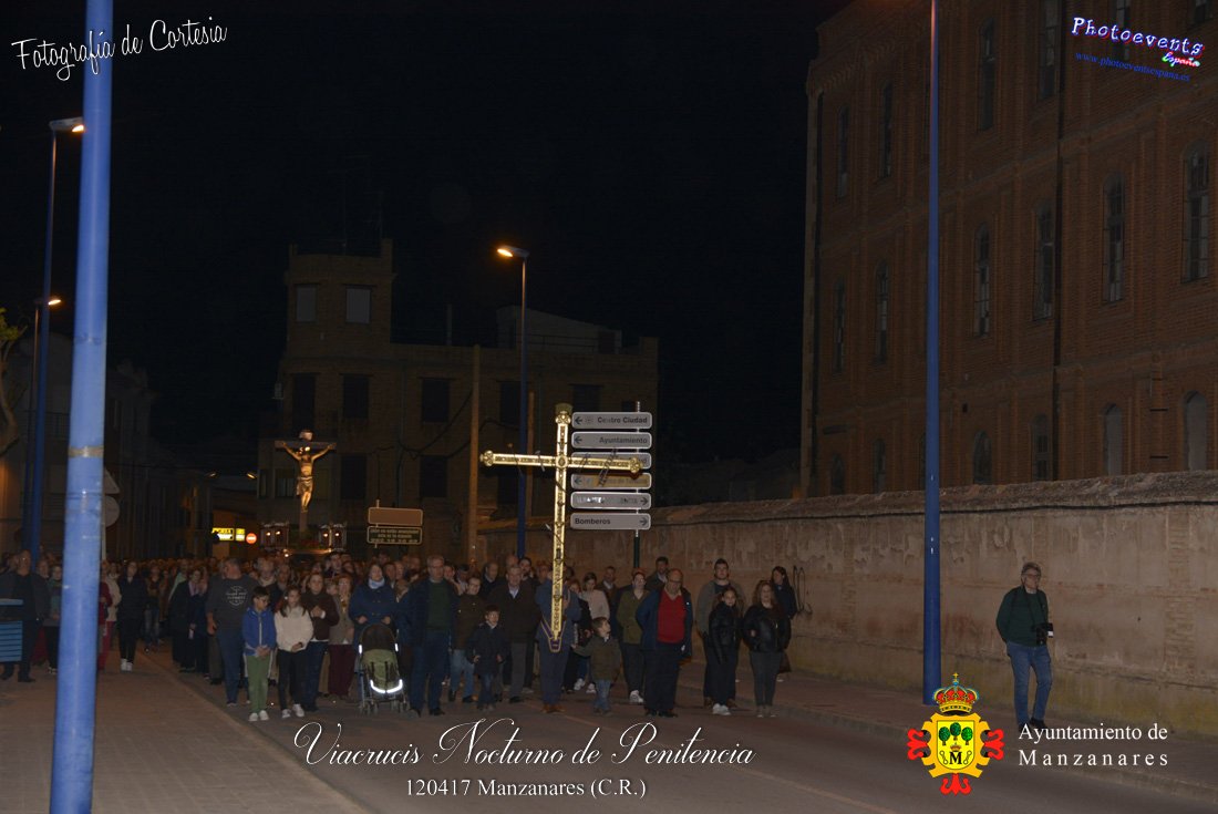 Fotografías realizadas durante el Viacrucis Nocturno de Penitencia , que desde la Ermita de la Vera-Cruz hasta el Cristo de las Agoniás , recorrio varias calles y las correspondientes estaciones de penitencia, para volver nuevamente a la hermita de la Veracruz. Formando parte esta de los distintos actos y procesiones que se dán cita en la localidad con motivo de la Semana Santa 2017, consultar recorridos y programa . Dicho viacrucis tenía lugar en la noche del día 12 de Abril en la localidad de Manzanares, Ciudad Real.