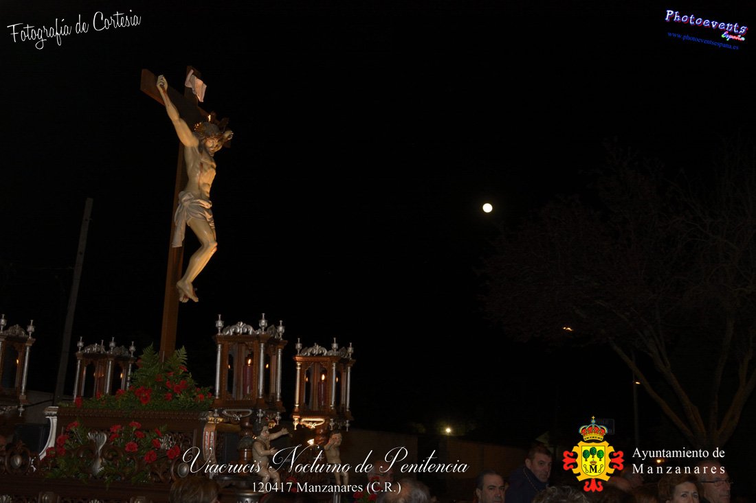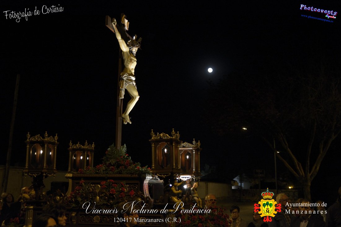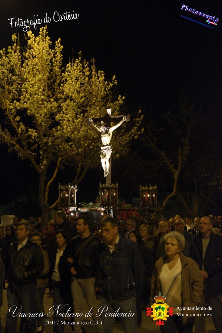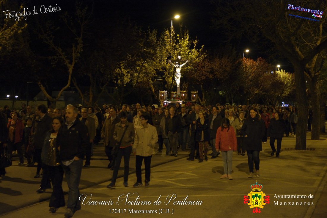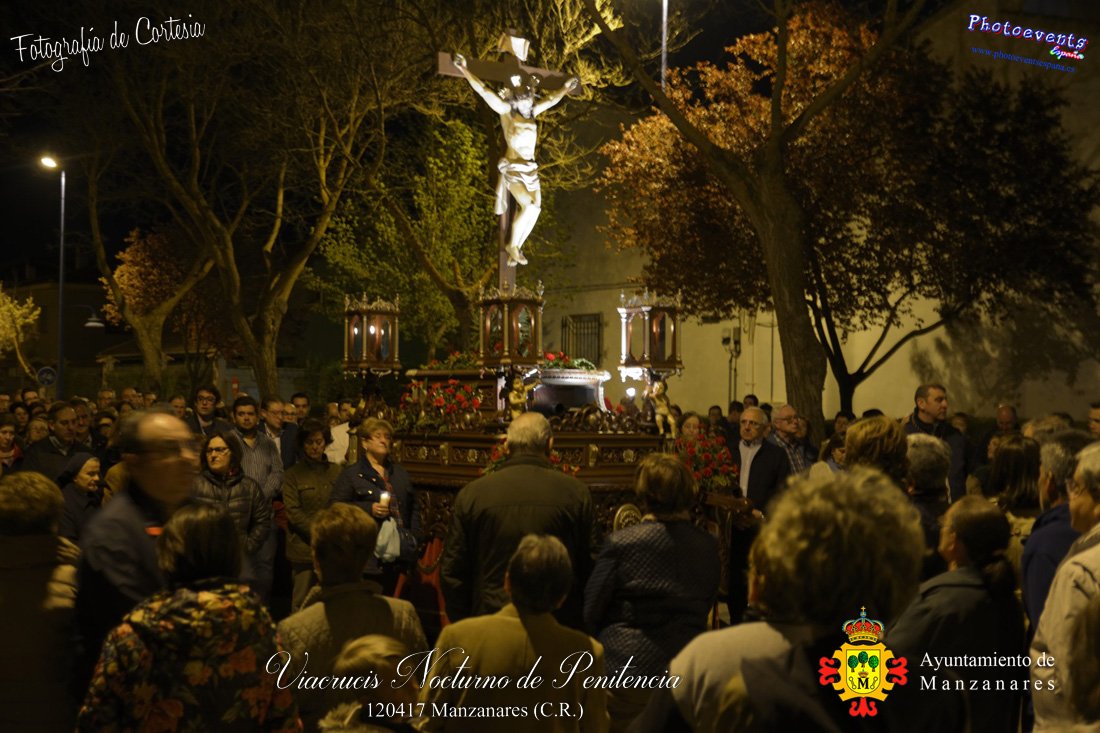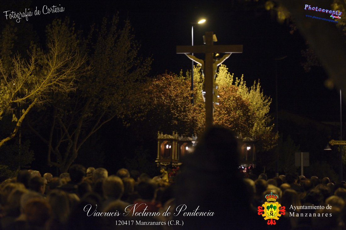 Fotografías realizadas durante el Viacrucis Nocturno de Penitencia , que desde la Ermita de la Vera-Cruz hasta el Cristo de las Agoniás , recorrio varias calles y las correspondientes estaciones de penitencia, para volver nuevamente a la hermita de la Veracruz. Formando parte esta de los distintos actos y procesiones que se dán cita en la localidad con motivo de la Semana Santa 2017, consultar recorridos y programa . Dicho viacrucis tenía lugar en la noche del día 12 de Abril en la localidad de Manzanares, Ciudad Real.
