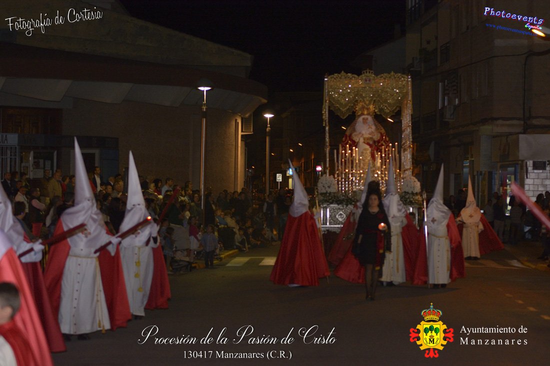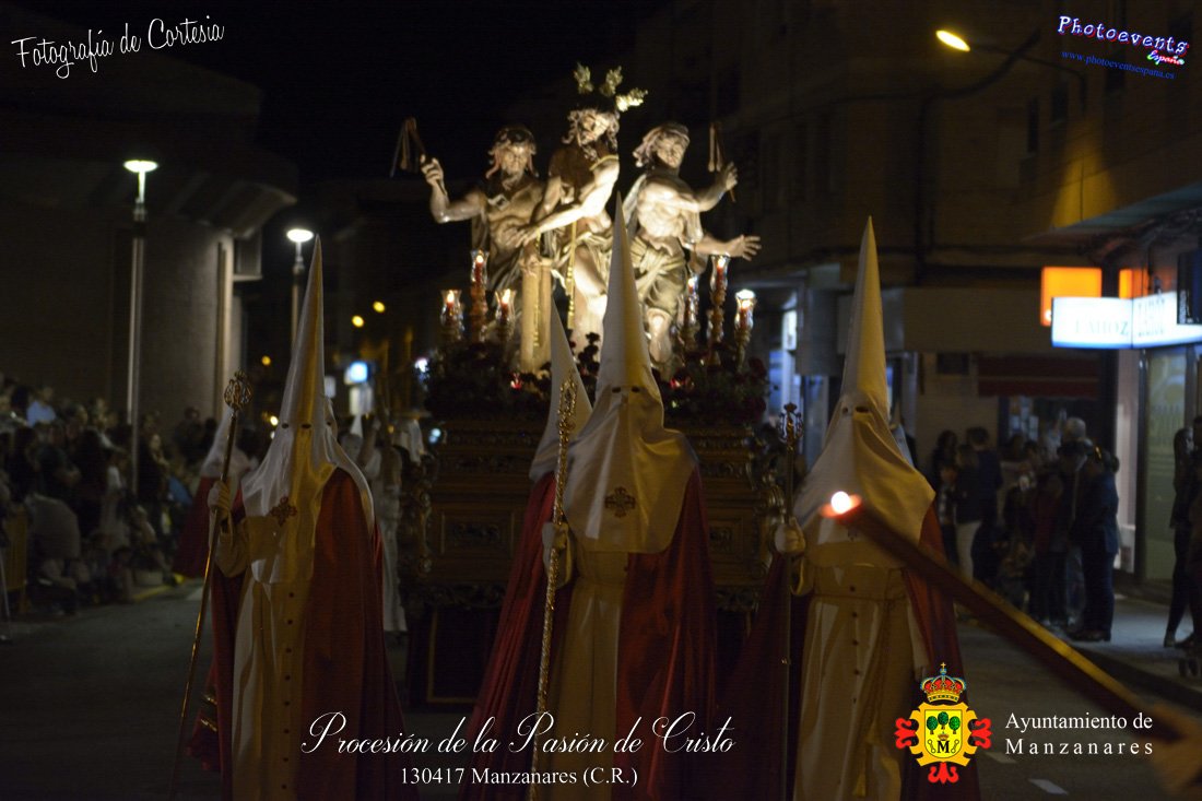Fotografías realizadas durante la procesión de la Pasión de Cristo, con distintos pasos de distintas hermandades , recorriendo varias calles de la localidad. Formando parte esta de los distintos actos y procesiones que se dán cita en la localidad con motivo de la Semana Santa 2017, consultar recorridos y programa . Dicha procesión tenía lugar en la tarde del día 13 de Abril en la localidad de Manzanares, Ciudad Real.