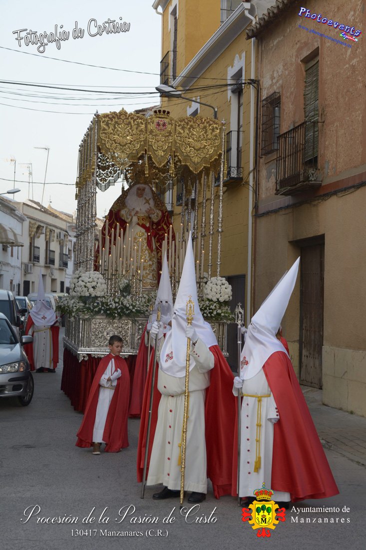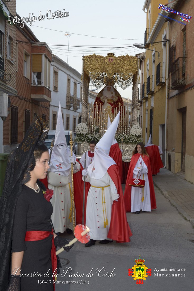 Fotografías realizadas durante la procesión de la Pasión de Cristo, con distintos pasos de distintas hermandades , recorriendo varias calles de la localidad. Formando parte esta de los distintos actos y procesiones que se dán cita en la localidad con motivo de la Semana Santa 2017, consultar recorridos y programa . Dicha procesión tenía lugar en la tarde del día 13 de Abril en la localidad de Manzanares, Ciudad Real.