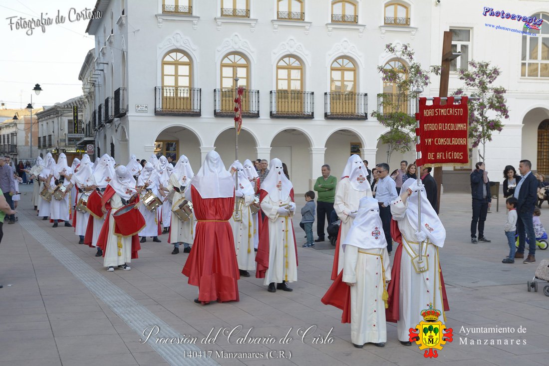 Fotografías realizadas durante la procesión del Calvario de Cristo que recorrio varias calles de la localidad. Como actividad nueva en este recorrido reseñar que la Rondalla y Coro del centro de Mayores, interpreta varias cantos procesionales a las imagenes del descendimiento y la Virgen del Traspaso, a su paso por la Iglesia de Altagarcia. Formando parte de los distintos actos y procesiones que se dán cita en la localidad con motivo de la Semana Santa 2017, consultar recorridos y programa . Dicha procesión tenía lugar en la madrugada del día 14 de Abril en la localidad de Manzanares, Ciudad Real.