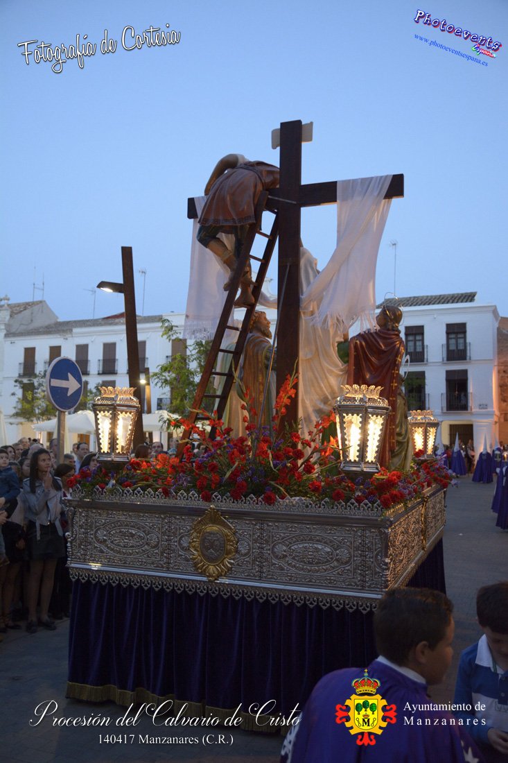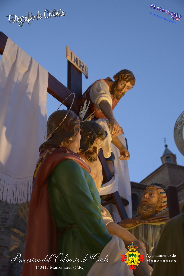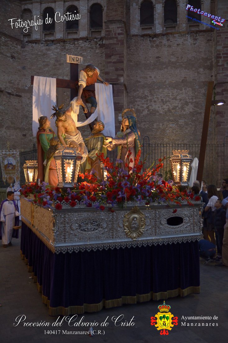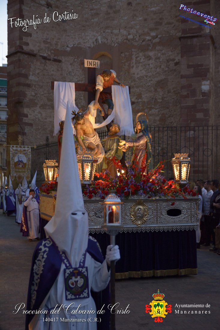 Fotografías realizadas durante la procesión del Calvario de Cristo que recorrio varias calles de la localidad. Como actividad nueva en este recorrido reseñar que la Rondalla y Coro del centro de Mayores, interpreta varias cantos procesionales a las imagenes del descendimiento y la Virgen del Traspaso, a su paso por la Iglesia de Altagarcia. Formando parte de los distintos actos y procesiones que se dán cita en la localidad con motivo de la Semana Santa 2017, consultar recorridos y programa . Dicha procesión tenía lugar en la madrugada del día 14 de Abril en la localidad de Manzanares, Ciudad Real.