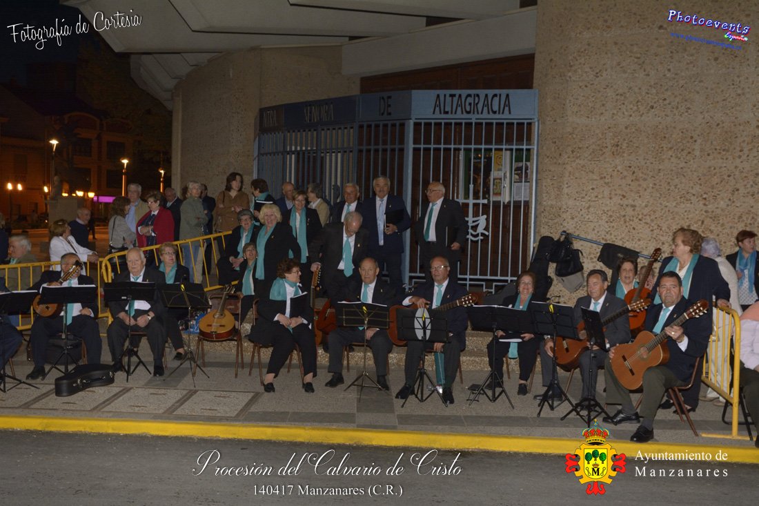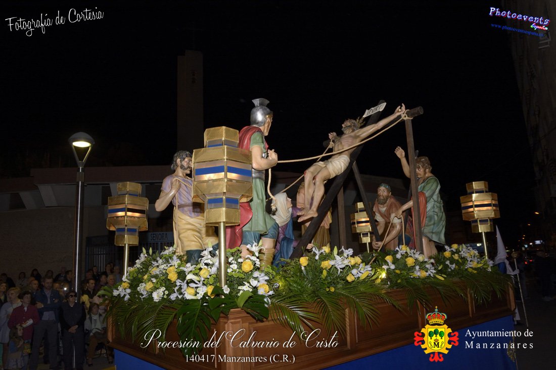 Fotografías realizadas durante la procesión del Calvario de Cristo que recorrio varias calles de la localidad. Como actividad nueva en este recorrido reseñar que la Rondalla y Coro del centro de Mayores, interpreta varias cantos procesionales a las imagenes del descendimiento y la Virgen del Traspaso, a su paso por la Iglesia de Altagarcia. Formando parte de los distintos actos y procesiones que se dán cita en la localidad con motivo de la Semana Santa 2017, consultar recorridos y programa . Dicha procesión tenía lugar en la madrugada del día 14 de Abril en la localidad de Manzanares, Ciudad Real.