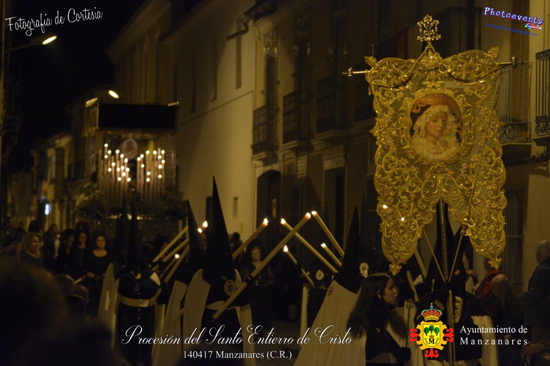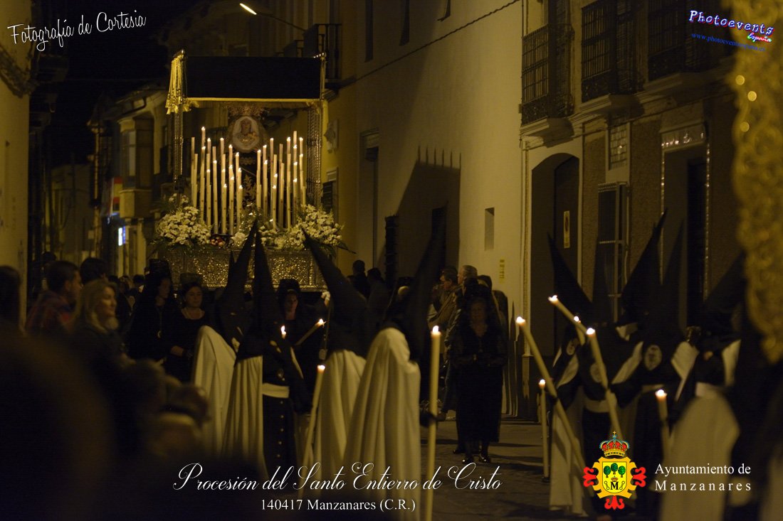 Fotografías realizadas durante la procesión del Santo Entierro de Cristo que recorrio varias calles de la localidad. Formando parte de los distintos actos y procesiones que se dán cita en la localidad con motivo de la Semana Santa 2017, consultar recorridos y programa . Dicha procesión tenía lugar en la madrugada del día 14 de Abril en la localidad de Manzanares, Ciudad Real.