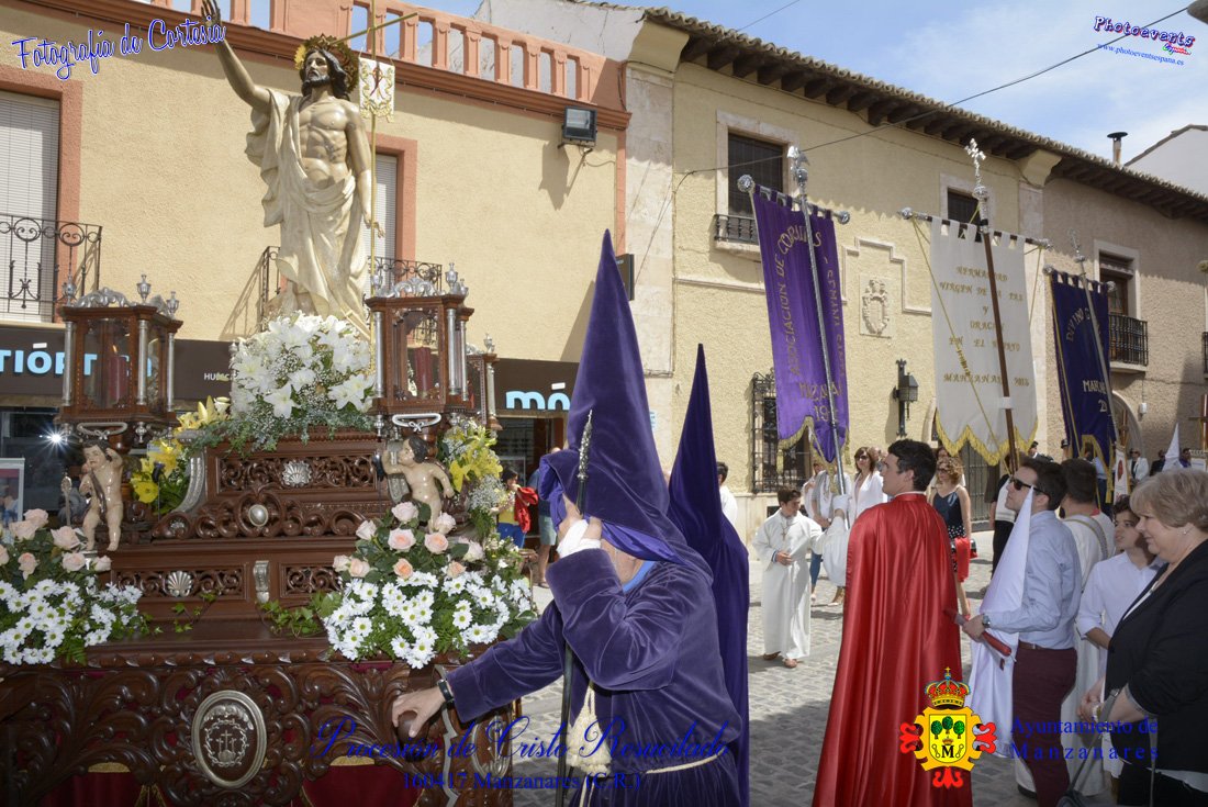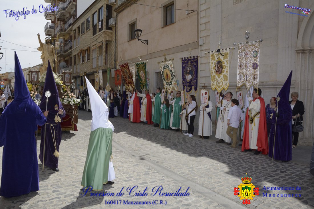 Fotografías realizadas durante la procesión de Cristo Resucitado que recorrio varias calles de la localidad. Siendo esta la última procesión que se realiza con motivo de la Semana Santa 2017, consultar recorridos y programa . Dicha procesión tenía lugar en la mañana del día 16 de Abril en la localidad de Manzanares, Ciudad Real.