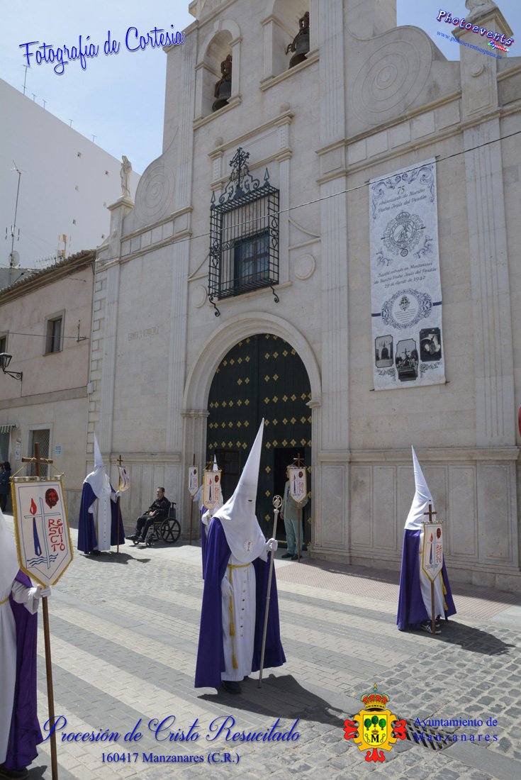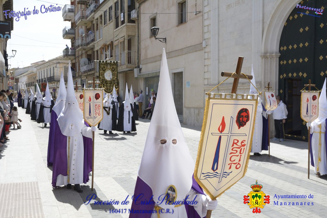 Fotografías realizadas durante la procesión de Cristo Resucitado que recorrio varias calles de la localidad. Siendo esta la última procesión que se realiza con motivo de la Semana Santa 2017, consultar recorridos y programa . Dicha procesión tenía lugar en la mañana del día 16 de Abril en la localidad de Manzanares, Ciudad Real.