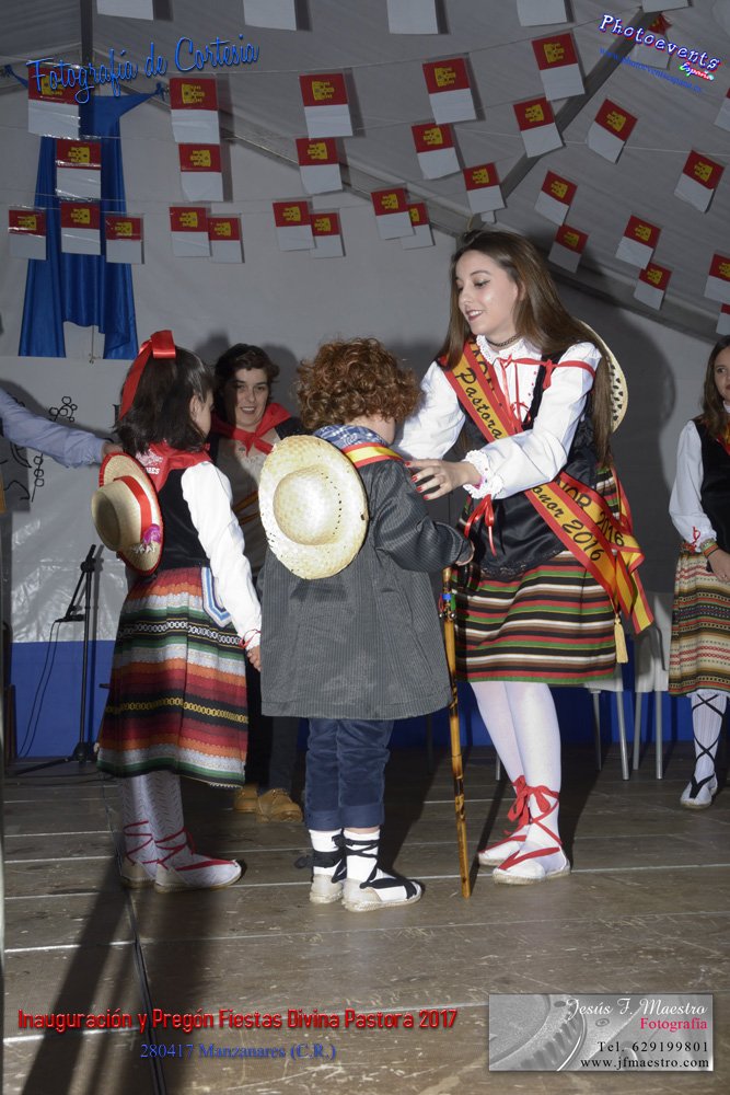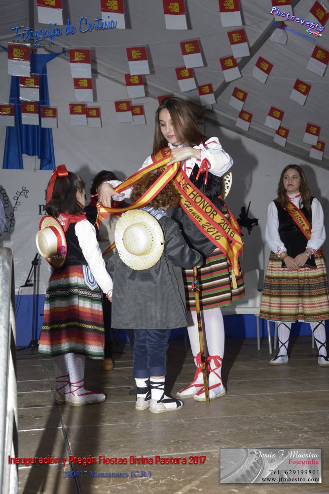 Fotografías realizadas durante el acto de inauguración de las Fiestas Divina Pastora, abriendo el acto las pastoras y Zagala mayor que en este día dejan su reinado, continuando con el pregón de las mismas a cargo de D. Javier Llanos, para despues proceder con la entrega de placas y reconocimientos a empresas y personas del barrio, y despues pasamos al nombramiento de los nuevos pastorcillos, pastorcillas y terminando con la proclamación de la Pastora Mayor. Dicho acto tenía lugar la tarde del pasado día 28 de Abril en la plaza de la Divina Pastora, en la localidad de Manzanares, Ciudad Real.