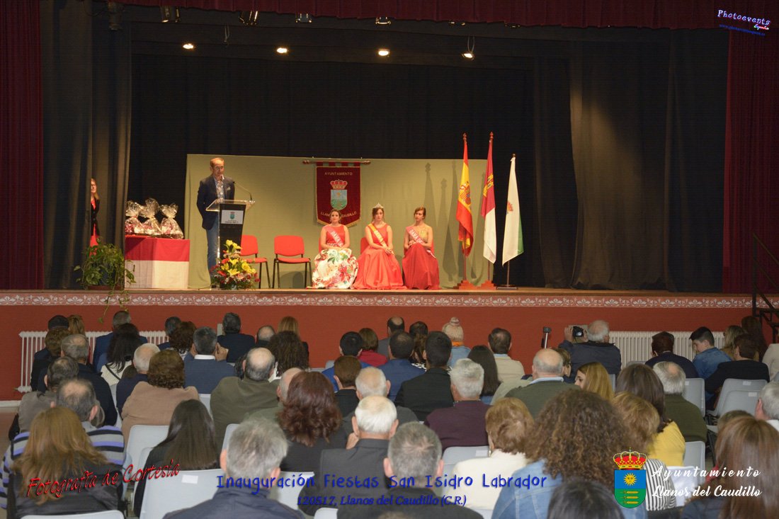 Fotografías realizadas con motivo de la inauguración de las Fiestas de San Isidro 2017, comenzando con la bendición y presentación de la nueva imagen de Santa María de la Cabeza, esposa de San Isidro Labrador, patrón de Llanos del Caudillo. Posteriormente se realizo la imposición de bandas a las nuevas damas de honor y coronación de la nueva Reina de Las Fiestas, continuando con la entrega de los premios del concurso fotográfico y dar paso al pregón de fiestas a cargo de Vicente Yestera. El acto tenía lugar el pasado 12 de Mayo, estando enmarcado dentro del programa de fiestas con motivo de San Isidro Labrador en Llanos del Caudillo, Ciudad Real.