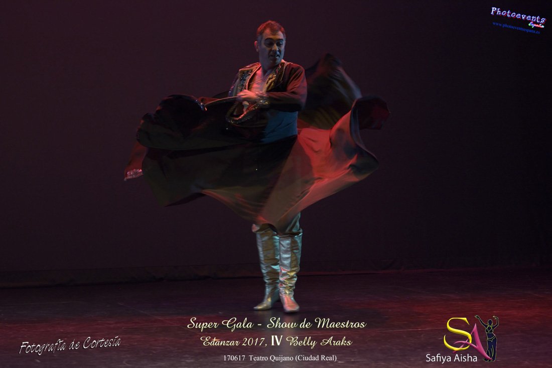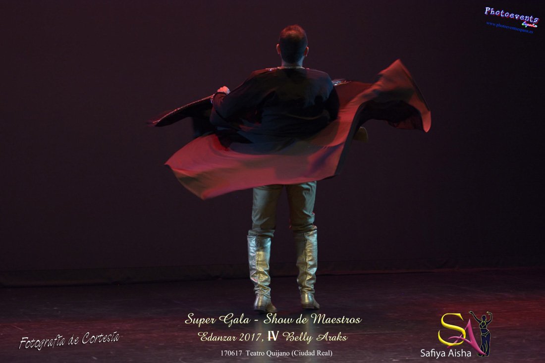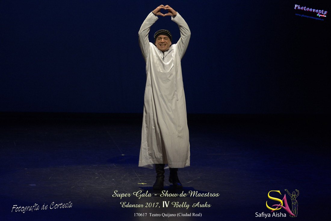 Fotografías realizadas durante la Super Gala Show de maestros que ha tenido lugar durante el IV Belly Araks , enmarcado en el EDANZAR 2017 ( Encuentro internacional de danzas arabes ) ,organizado por Safiya Aisha, que tuvo lugar desde el día 16 al 18 de Junio en la localidad de Ciudad Real. Durante todo el fin de semana correspondiente se realizarón talleres impartidos por profesores y grandes maestros de la danza , tales como Amir Thaleb, Anwar Kamel, Álika y Rosa Mondaray.