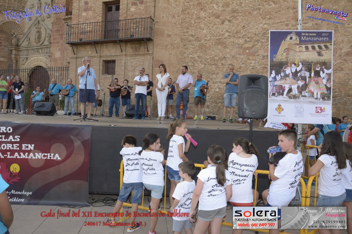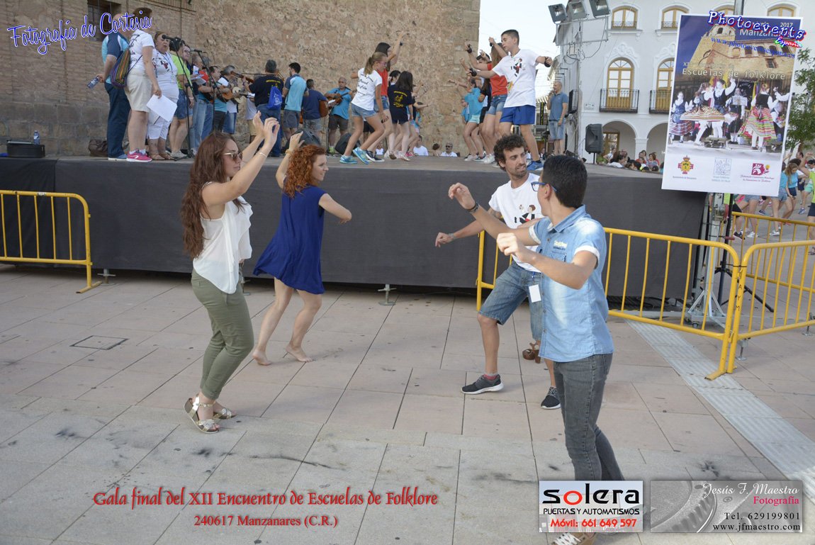 Fotografías realizadas durante la gala final que clausura el XII encuentro de escuelas de Folklore, en el cual se bailaron varias jotas y una de ellas la Manzanareña " Del que si que", la cual fue enseñada por la Agrupación de Música y Danza Manuel de Falla de Manzanares y aprendida por todos los asistentes del Grupo de Coros y Danzas "Alabarderos" ( Bolaños de Calatrava, C. R.), A.C. Ntra.Sra. de los Remedios, (Calzada de Calatrava, C. Real.), Asociación de folklore y Tradición "Cruz de Santiago" (Villanueva de los Infantes, C. R.), Semillas del Arte (La Puebla de Montalbán, Toledo ), Asociación cultural Los Charcones ( Miguel Esteban, Toledo), Asociación de coros y danzas despertar el ayer (Villanueva de Alcardete, Toledo), Coros y Danzas Amanecer (Villaluenga de la Sagra, Toledo), Coros y danzas "Virgen de Magaceda" (Villamayor de Santiago, Cuenca) y el grupo de danza "Villa de Madrid" (Madrid) .
