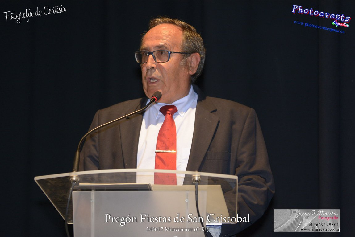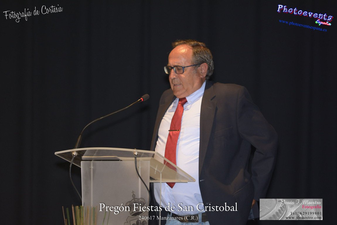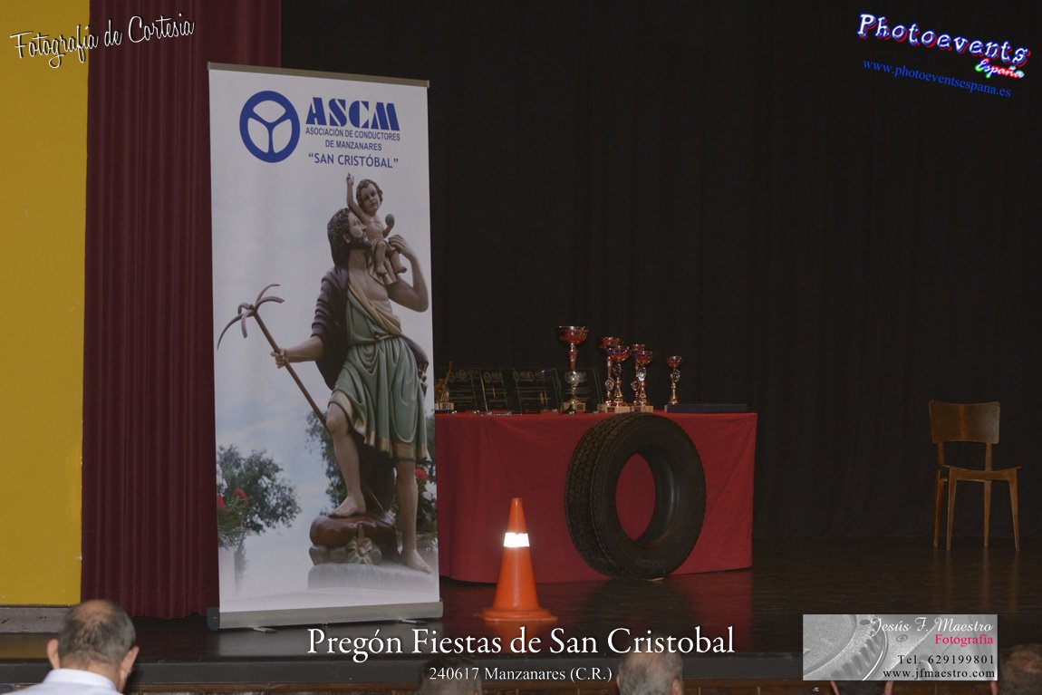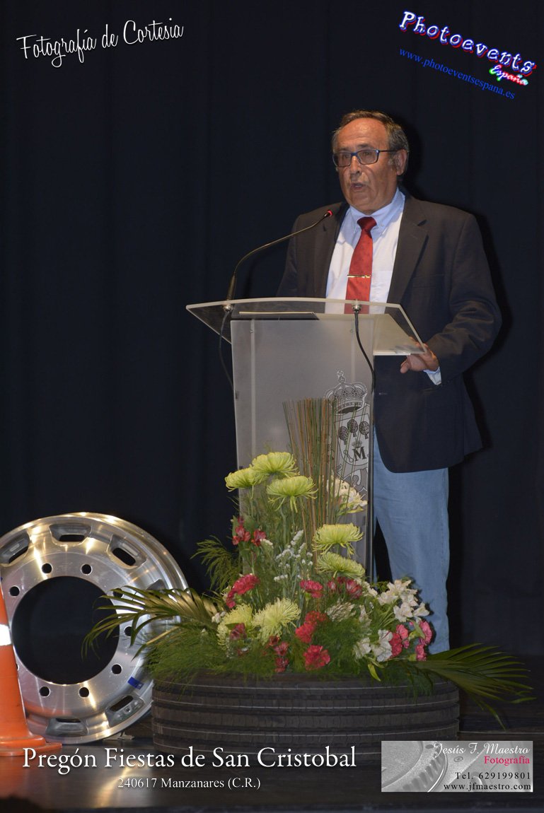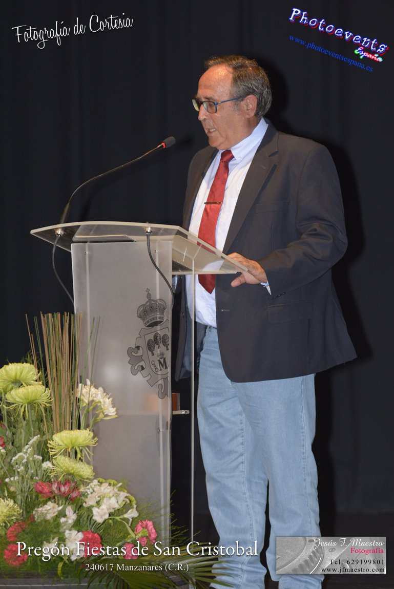 Fotografías realizadas durante el pregón de las Fiestas de San Cristóbal, que se ha realizado por primera vez en la historia de dicha asociación y que corrió a cargo de Alberto Torrijos García (Impresor de la revista de la Asociación), el cual dijo que su pregón no le podrían compartir con el de años anteriores , ya que es la primera vez que se realiza y espera que sean muchos más pregones que realice dicha asociación. El acto tenía lugar en el auditorio de la casa de cultura el pasado día 24 de Junio en la localidad de Manzanares, Ciudad Real.