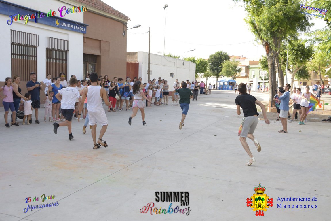 Dió comienzo con una manifestación por las calles de Manzanares, encabezada por Crash Batukada, seguida de la lectura del manifiesto y el pregón por parte del artista valdepeñero Paco Clavel. Durante toda la jornada se disfrutó de castillos hichables y pintacaras, para los más pequeños, explosiones de color , guerra de agua , fiesta de la espuma y comida popular , también hubo carrera de tacones y concurso de pintacaras. Y todo ello amenizado durante todo el día por Dj Dark , con Elena Artesero y Manu Sánchez - Migallón , como speakers animadores.