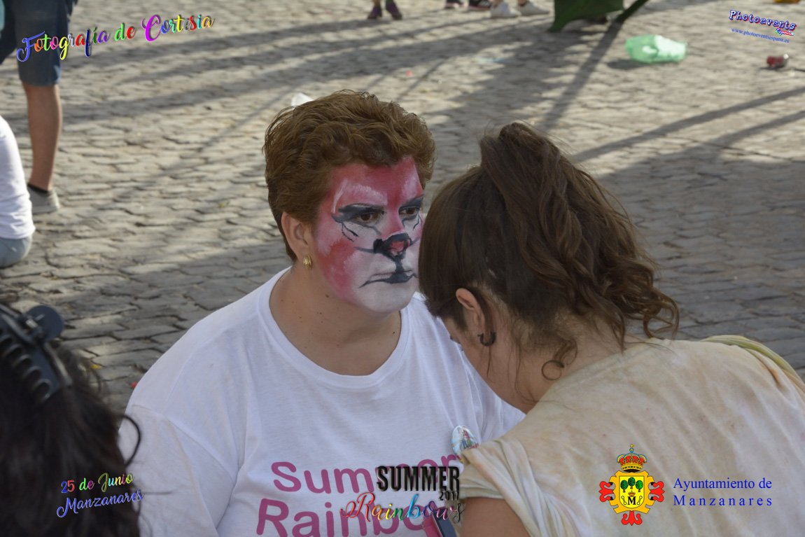 Dió comienzo con una manifestación por las calles de Manzanares, encabezada por Crash Batukada, seguida de la lectura del manifiesto y el pregón por parte del artista valdepeñero Paco Clavel. Durante toda la jornada se disfrutó de castillos hichables y pintacaras, para los más pequeños, explosiones de color , guerra de agua , fiesta de la espuma y comida popular , también hubo carrera de tacones y concurso de pintacaras. Y todo ello amenizado durante todo el día por Dj Dark , con Elena Artesero y Manu Sánchez - Migallón , como speakers animadores.