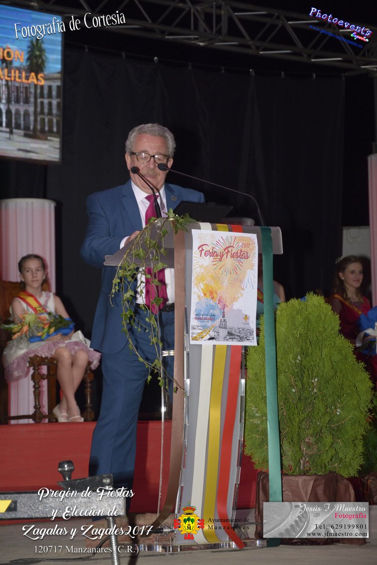 Fotografías realizadas durante la elección de Zagalas y Zagales con su correspondiente pregón de feria, amenizado por Juan Carlos Cabeza “Kachola”, comenzando dicho acto con unas palabras de Esther Nieto-Márquez (Concejala de Festejos), que siguientemente daria paso a los nombramientos quedando de la siguiente forma: Zagal Mayor (David Acosta Sánchez-Carnerero), Zagala mayor (Sandra Lara Pérez), Zagal de honor (Miguel Aguilar Rodado), Zagalas de honor (Narta Fernández Moreno, Nerea Alache Aguirre, Aránzazu-Leticia Medina Martinez, Laura Márquez Fernández-Pacheco, Silvia Desdentado Callejas,Irma Rodriduez de Guzmán Rodriguez y Andrea Demeter Nutu, las distintas bandas de nombramientos fueron puestas por los zagales y zagalas salientes que han permanecido desde el año 2016 hasta ahora y son: María José Nieto-Márquez Almoguera, Diego Labián Díaz-Portales, Beatriz Serrano Condés, Cristina María Alba Arroyo, Alejandro Garrido Alhambra, Antonio Jesús Camacho Fernández, Laura Tejada Romero, Yaiza Herrero Fernández, Carlos Camacho Ballesteros y Erik Román Fernández. Se continuaba con el pregón de feria que este año ha recaido sobre Candi Sevilla, una persona conocidisima del teatro y el carnaval, de Manzanares. El acto tenía lugar el pasado dia01 de Julio en la carpa municipal La Pérgola en la localidad de Manzanares, (Ciudad Real).