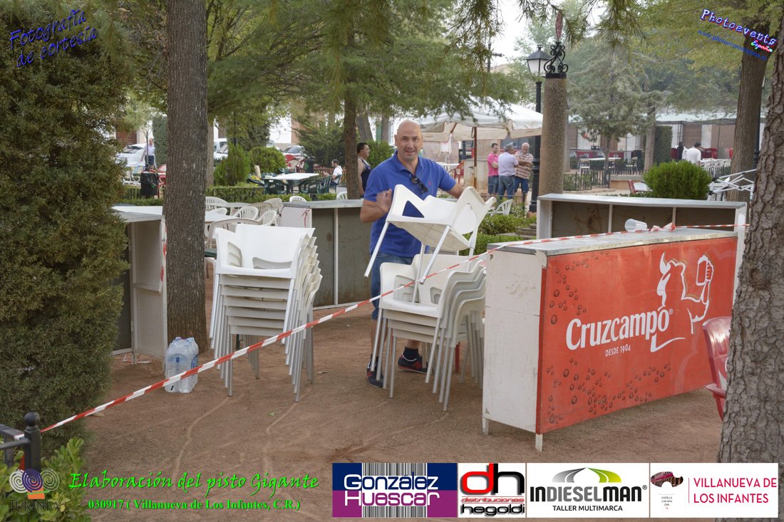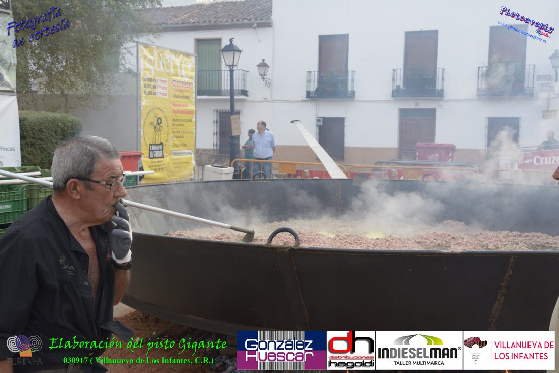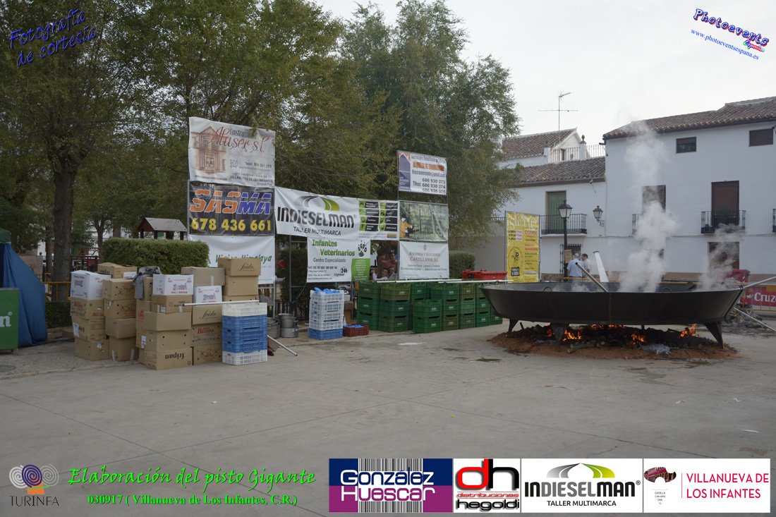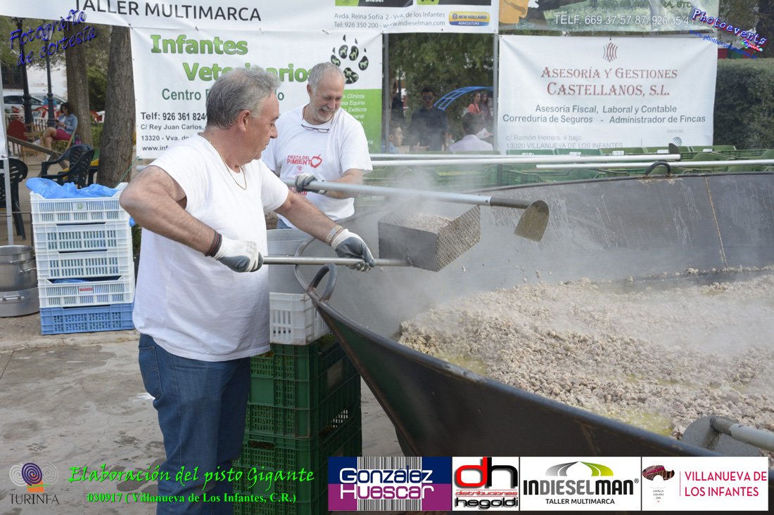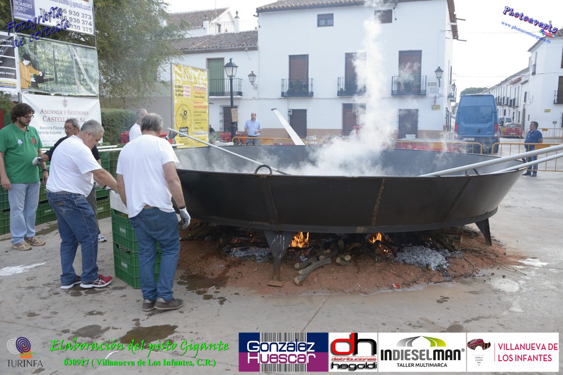 Fotografías realizadas durante la preparación del pisto mas grande del mundo, siendo este realizado con una nueva sarten de 5,20 metros (1 Metro mas que su predecesora). El pisto gigante se realizaba con 2000 kilos de pimiento (donados por El Abuelo Manolo y la Cooperativa la Moraleja), 1100 kilos de tomate, 360 kilos de carne, 150 litros de aceite (de la Cooperativa Virgen de la Antigua y Santo Tomás de Villanueva de la localidad) y 30 kilos de sal. Elavorandose tan suculento plato a fuego con leña durante más de 5 horas. El evento tenía lugar el pasado día 3 de Septiembre y estaba enmarcado dentro de las fiestas del pimiento que anualmente a comienzos de Septiembre se celebra en la localidad de Vva. de los Infantes, (Ciudad Real,España).