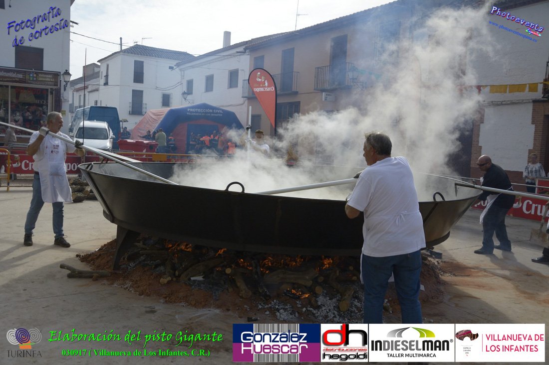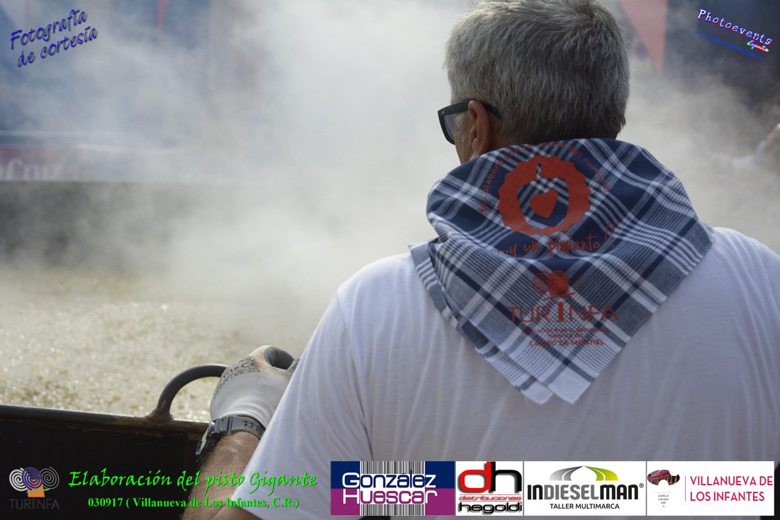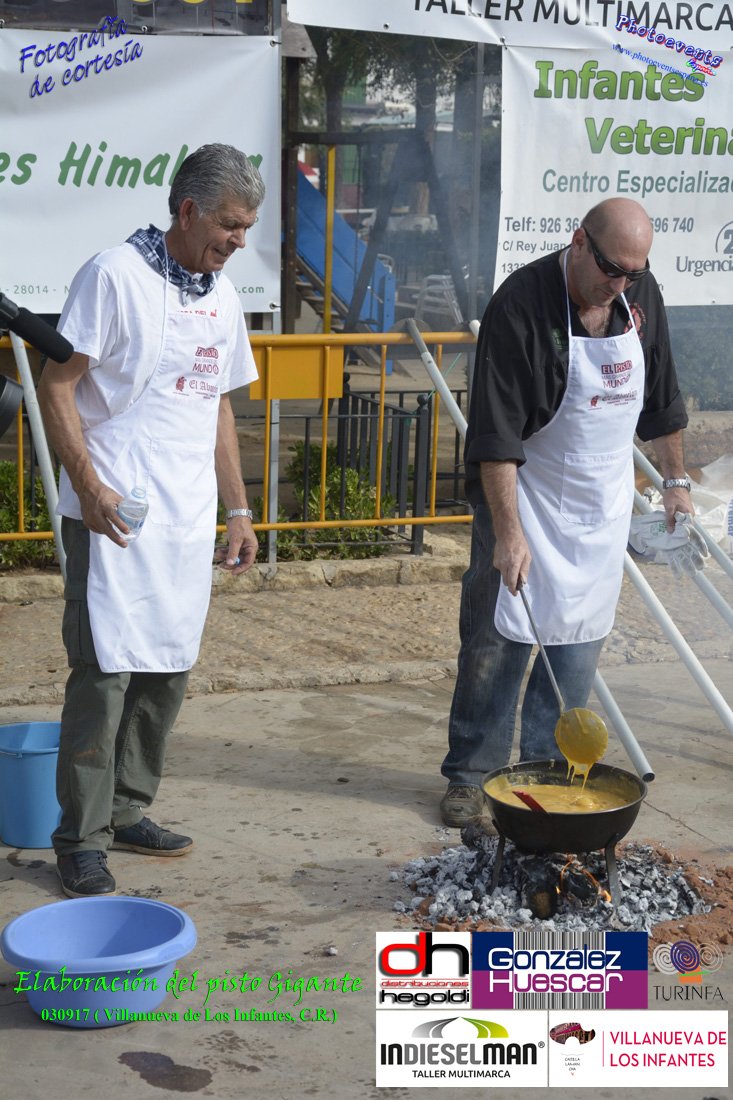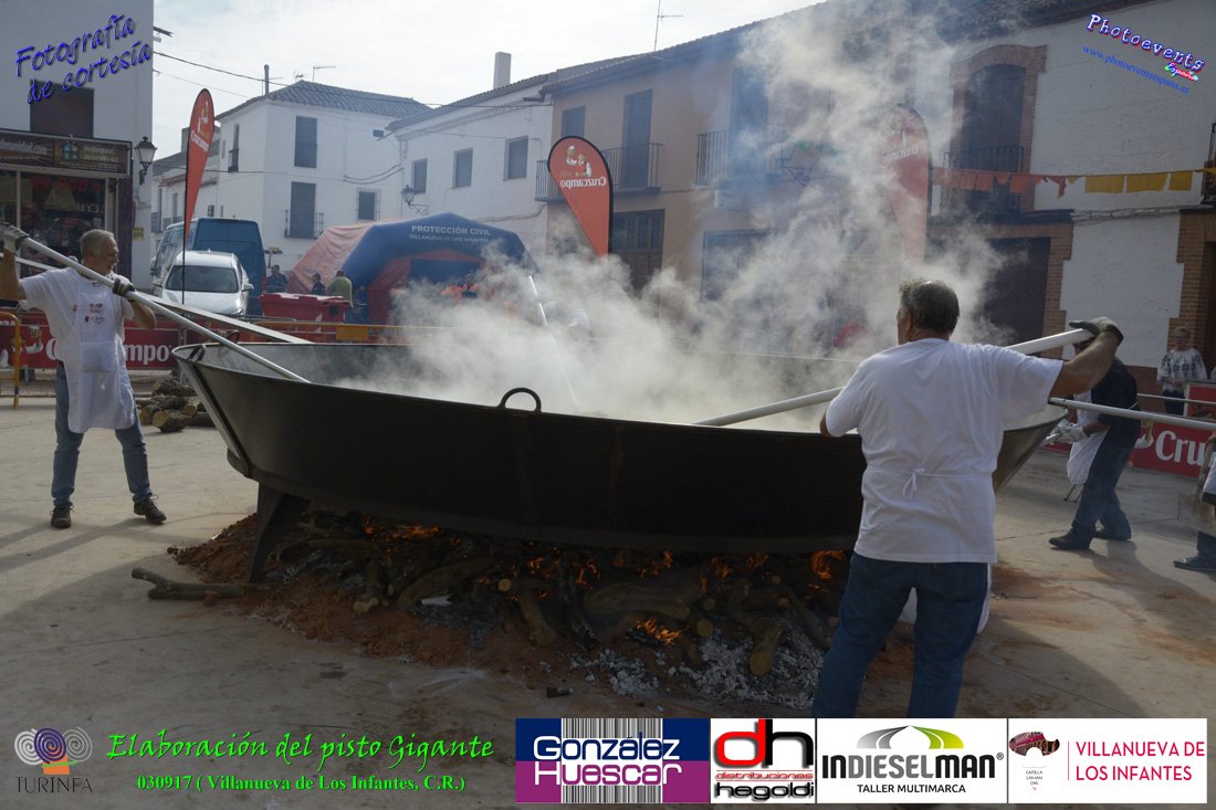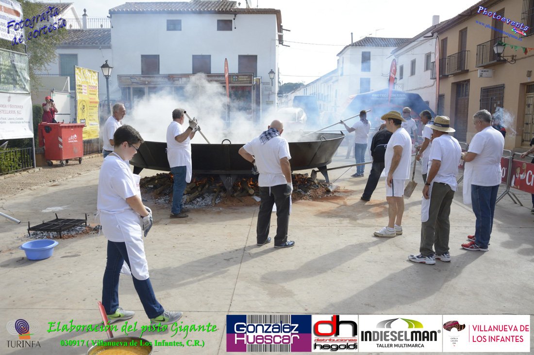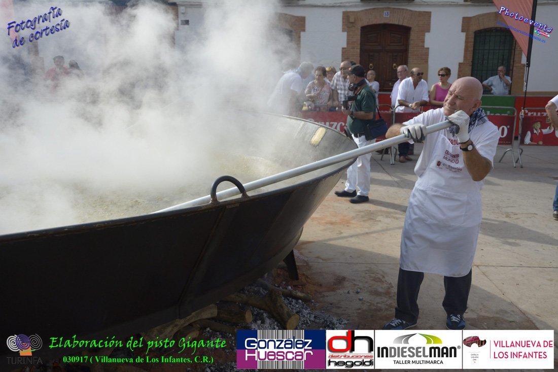 Fotografías realizadas durante la preparación del pisto mas grande del mundo, siendo este realizado con una nueva sarten de 5,20 metros (1 Metro mas que su predecesora). El pisto gigante se realizaba con 2000 kilos de pimiento (donados por El Abuelo Manolo y la Cooperativa la Moraleja), 1100 kilos de tomate, 360 kilos de carne, 150 litros de aceite (de la Cooperativa Virgen de la Antigua y Santo Tomás de Villanueva de la localidad) y 30 kilos de sal. Elavorandose tan suculento plato a fuego con leña durante más de 5 horas. El evento tenía lugar el pasado día 3 de Septiembre y estaba enmarcado dentro de las fiestas del pimiento que anualmente a comienzos de Septiembre se celebra en la localidad de Vva. de los Infantes, (Ciudad Real,España).