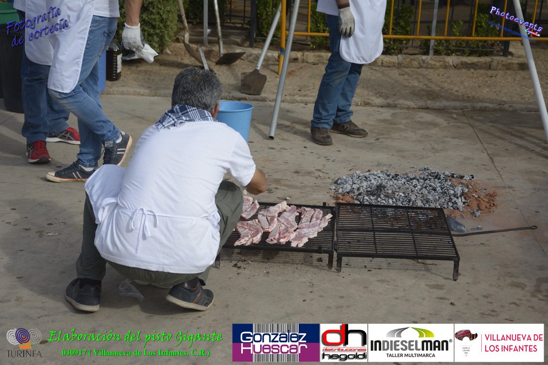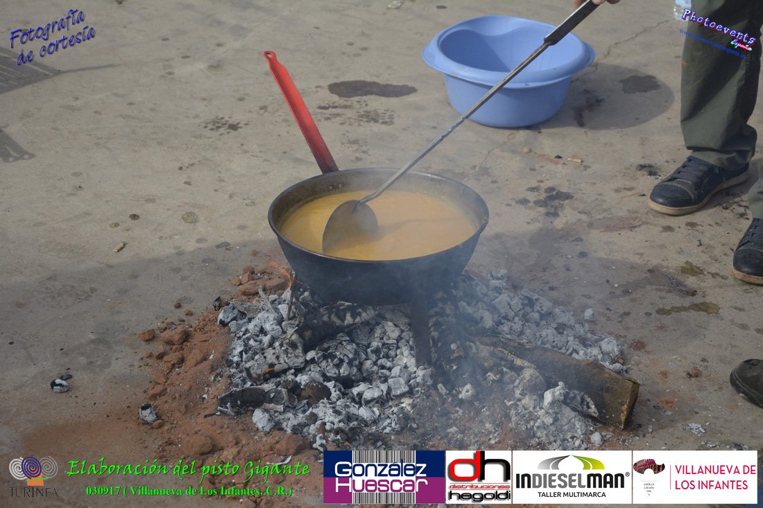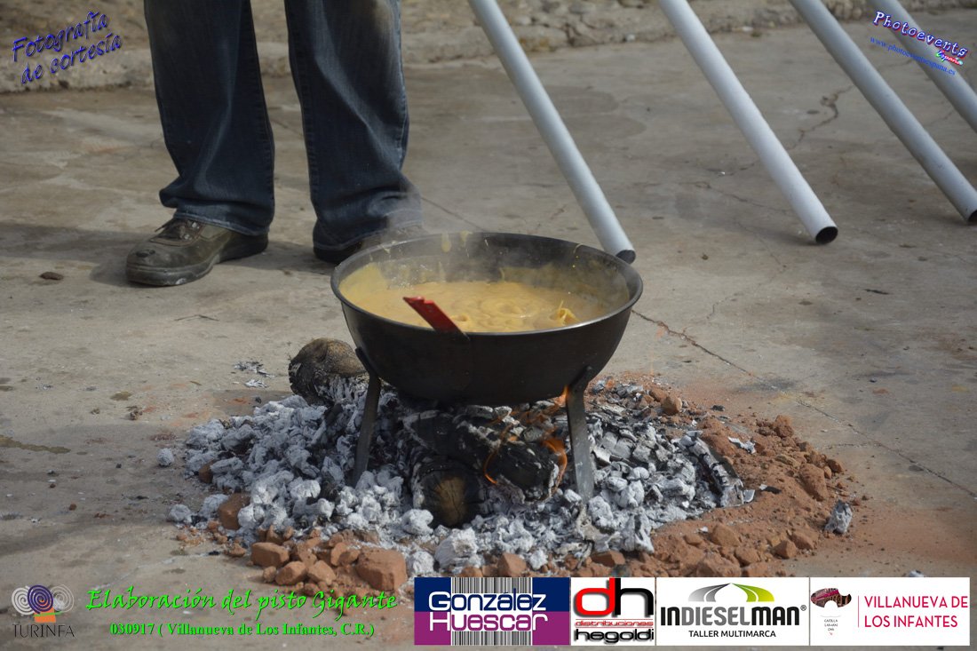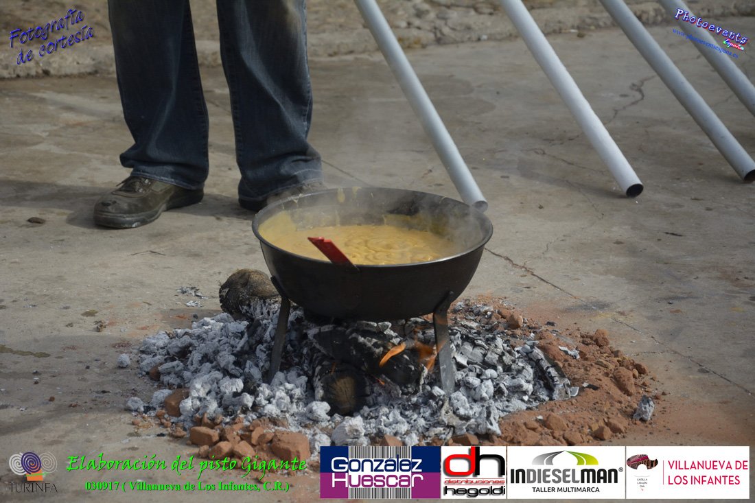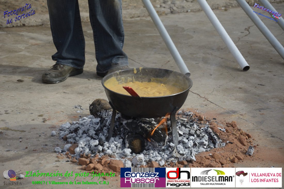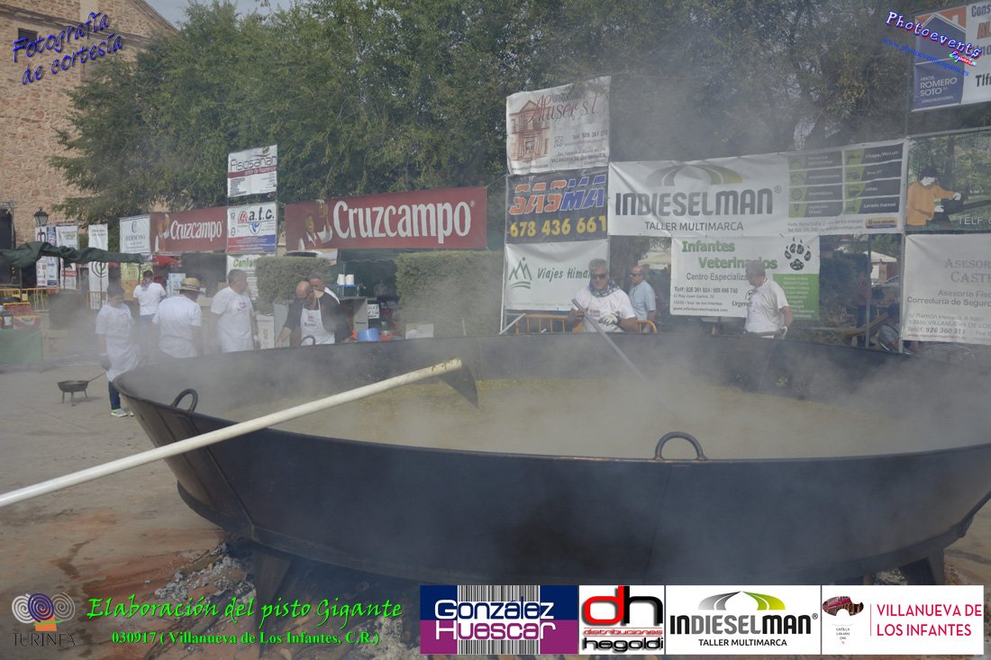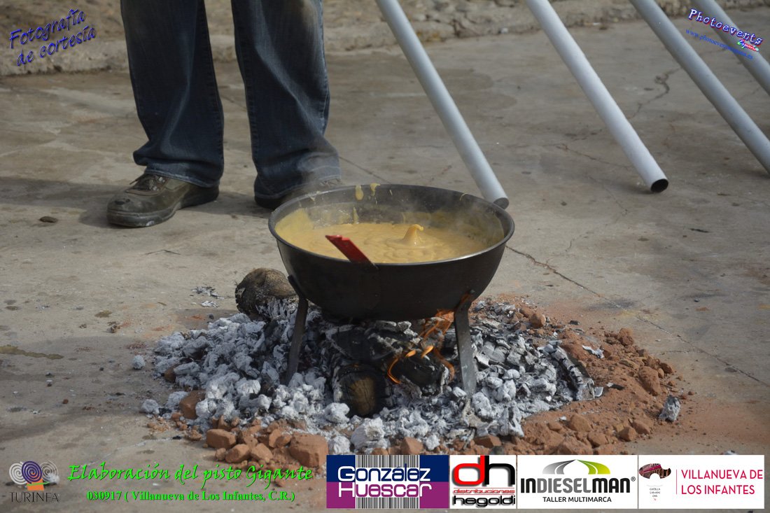 Fotografías realizadas durante la preparación del pisto mas grande del mundo, siendo este realizado con una nueva sarten de 5,20 metros (1 Metro mas que su predecesora). El pisto gigante se realizaba con 2000 kilos de pimiento (donados por El Abuelo Manolo y la Cooperativa la Moraleja), 1100 kilos de tomate, 360 kilos de carne, 150 litros de aceite (de la Cooperativa Virgen de la Antigua y Santo Tomás de Villanueva de la localidad) y 30 kilos de sal. Elavorandose tan suculento plato a fuego con leña durante más de 5 horas. El evento tenía lugar el pasado día 3 de Septiembre y estaba enmarcado dentro de las fiestas del pimiento que anualmente a comienzos de Septiembre se celebra en la localidad de Vva. de los Infantes, (Ciudad Real,España).