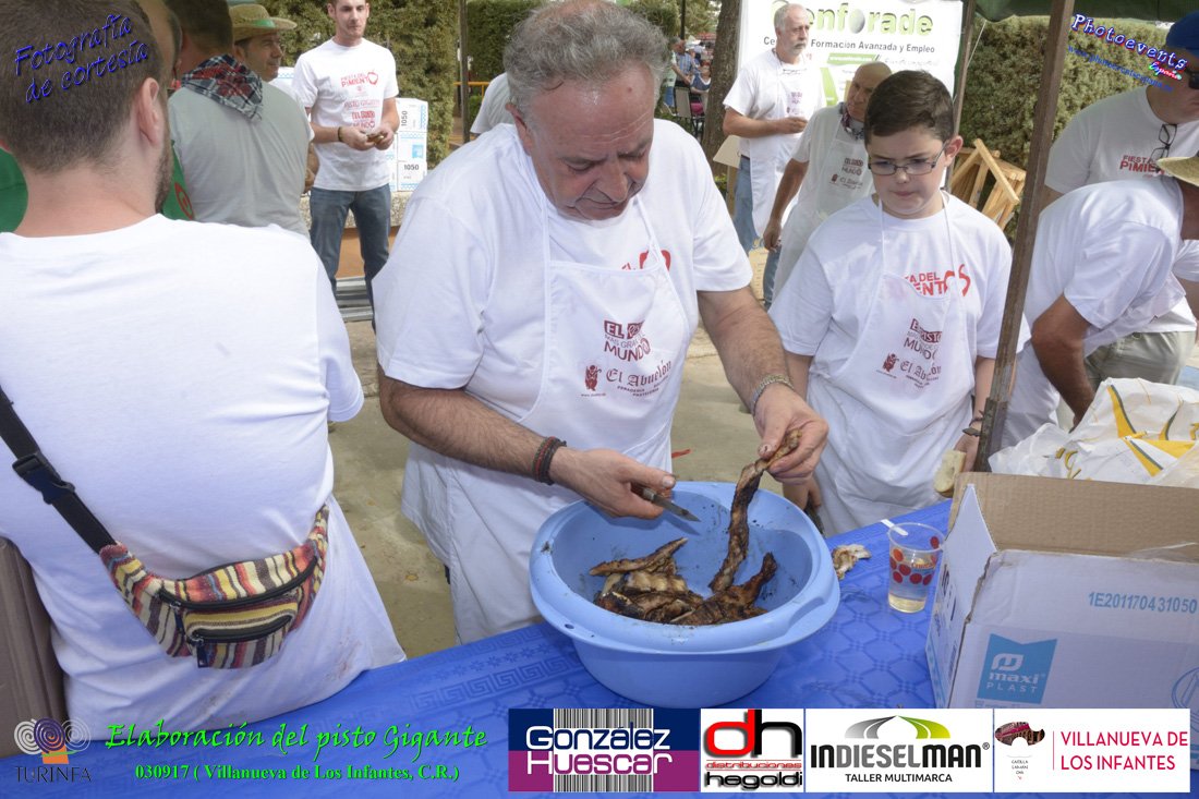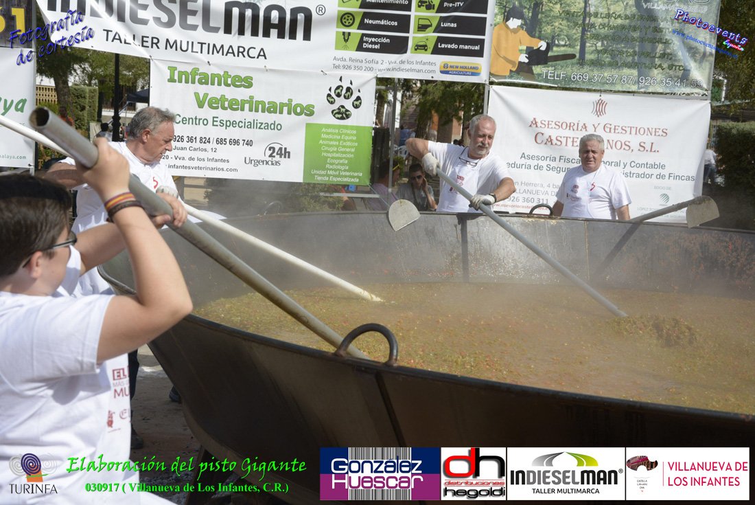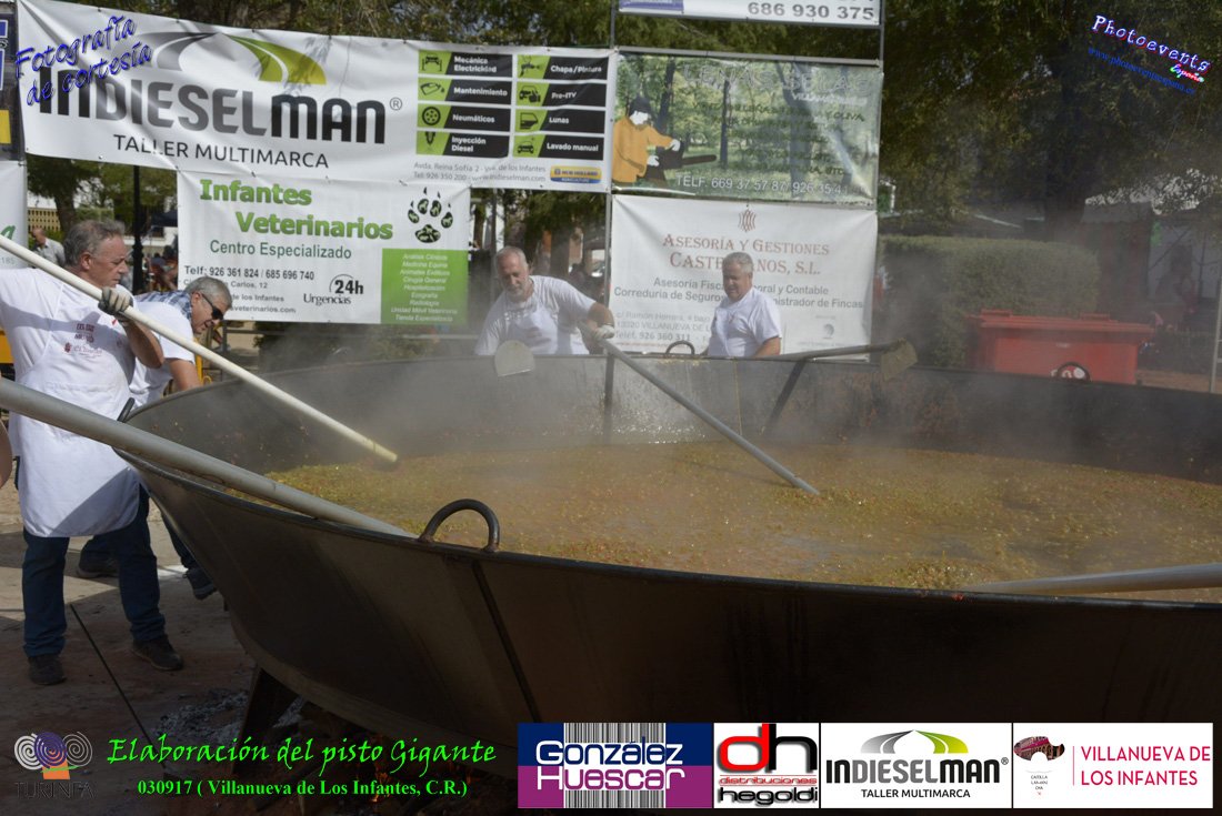 Fotografías realizadas durante la preparación del pisto mas grande del mundo, siendo este realizado con una nueva sarten de 5,20 metros (1 Metro mas que su predecesora). El pisto gigante se realizaba con 2000 kilos de pimiento (donados por El Abuelo Manolo y la Cooperativa la Moraleja), 1100 kilos de tomate, 360 kilos de carne, 150 litros de aceite (de la Cooperativa Virgen de la Antigua y Santo Tomás de Villanueva de la localidad) y 30 kilos de sal. Elavorandose tan suculento plato a fuego con leña durante más de 5 horas. El evento tenía lugar el pasado día 3 de Septiembre y estaba enmarcado dentro de las fiestas del pimiento que anualmente a comienzos de Septiembre se celebra en la localidad de Vva. de los Infantes, (Ciudad Real,España).