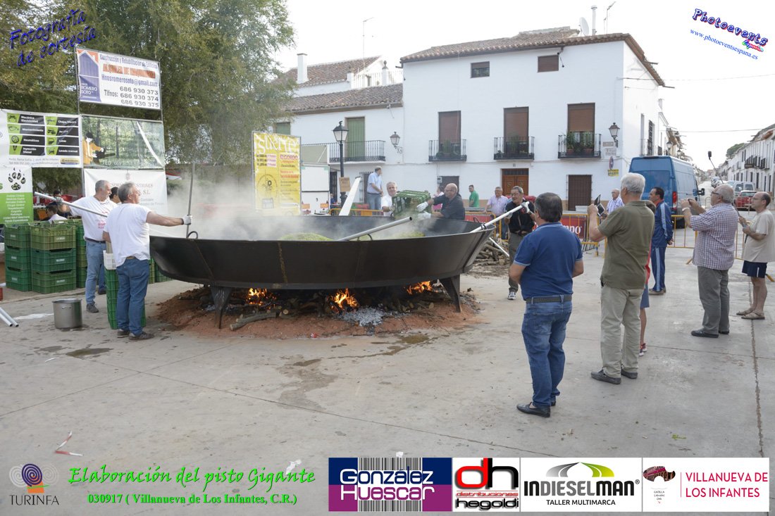 Fotografías realizadas durante la preparación del pisto mas grande del mundo, siendo este realizado con una nueva sarten de 5,20 metros (1 Metro mas que su predecesora). El pisto gigante se realizaba con 2000 kilos de pimiento (donados por El Abuelo Manolo y la Cooperativa la Moraleja), 1100 kilos de tomate, 360 kilos de carne, 150 litros de aceite (de la Cooperativa Virgen de la Antigua y Santo Tomás de Villanueva de la localidad) y 30 kilos de sal. Elavorandose tan suculento plato a fuego con leña durante más de 5 horas. El evento tenía lugar el pasado día 3 de Septiembre y estaba enmarcado dentro de las fiestas del pimiento que anualmente a comienzos de Septiembre se celebra en la localidad de Vva. de los Infantes, (Ciudad Real,España).