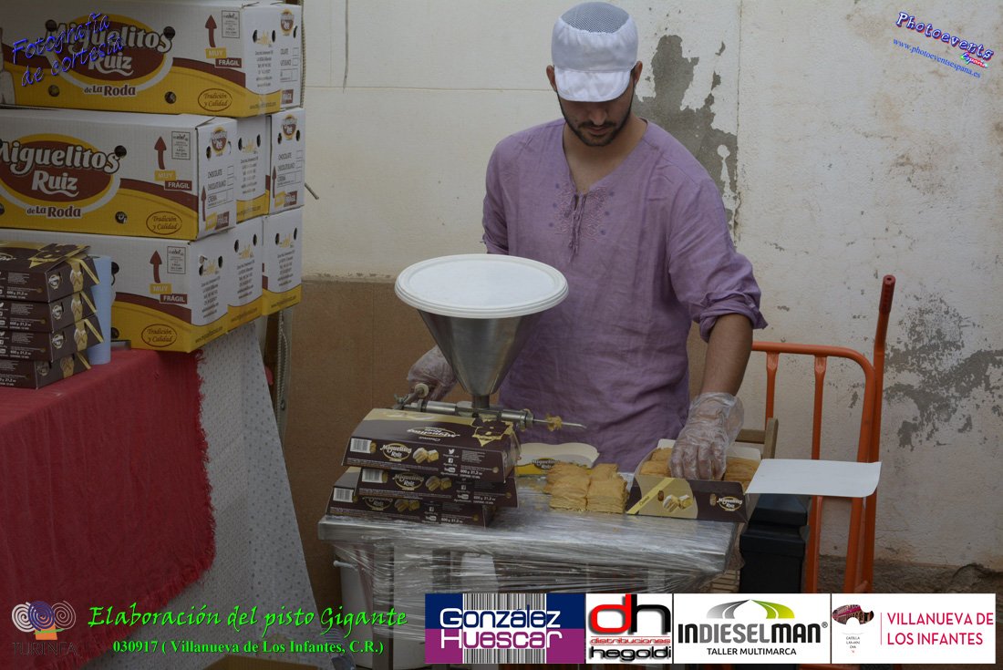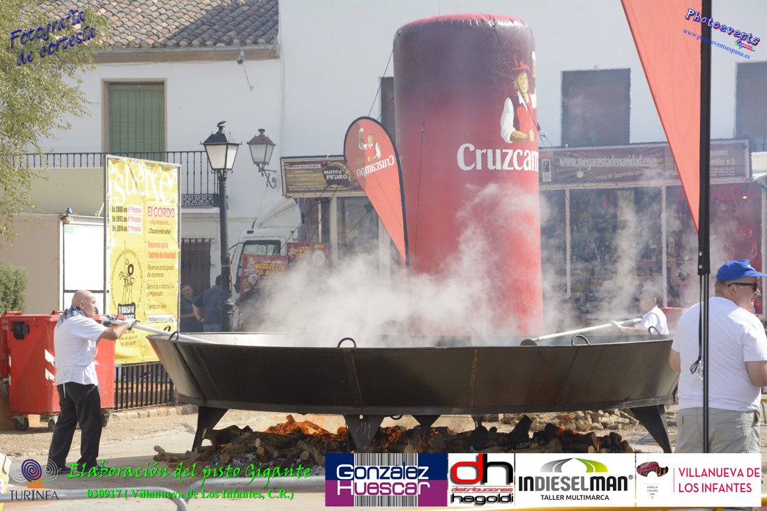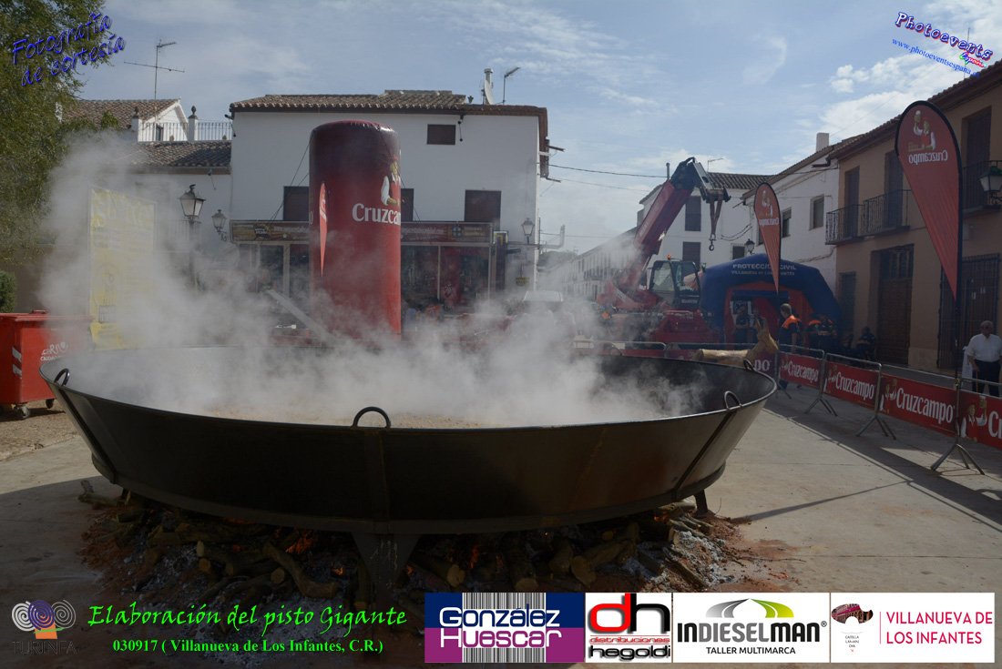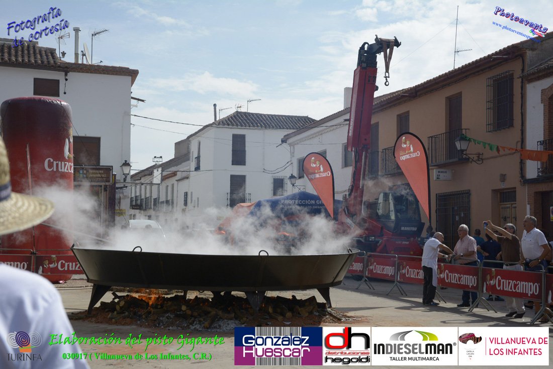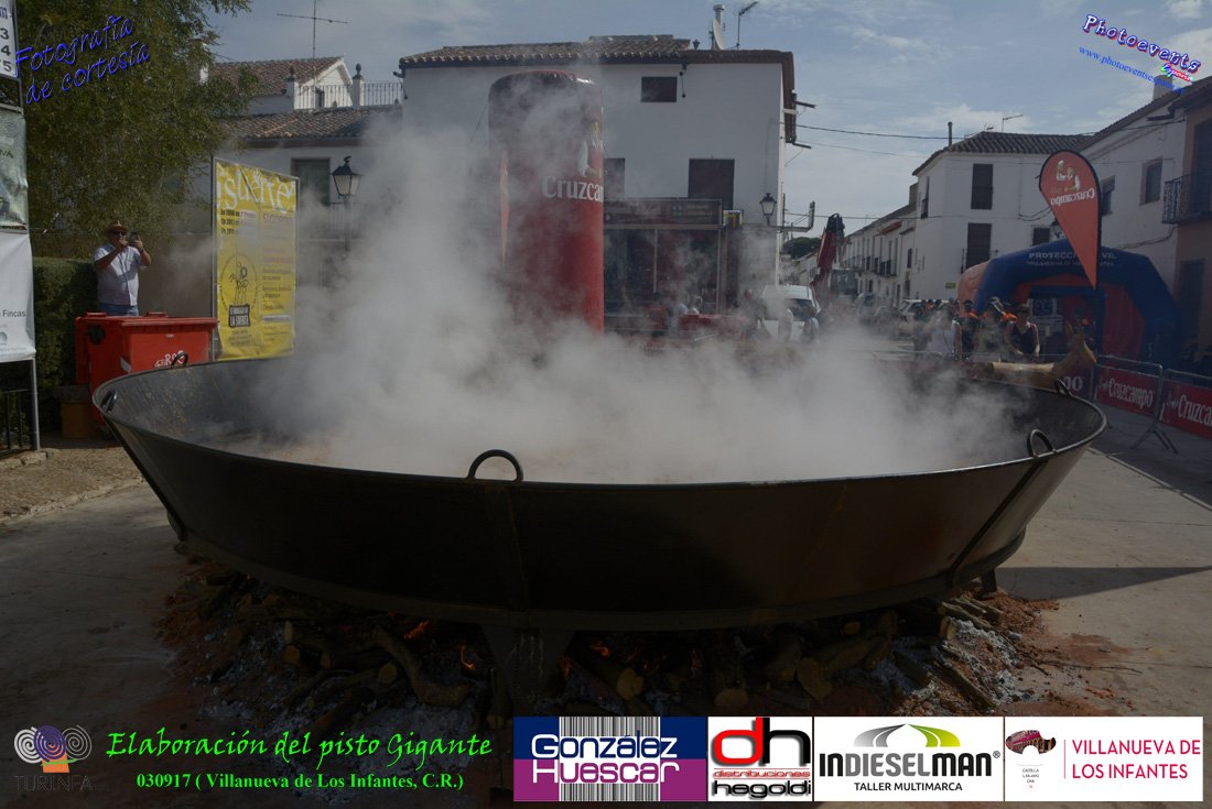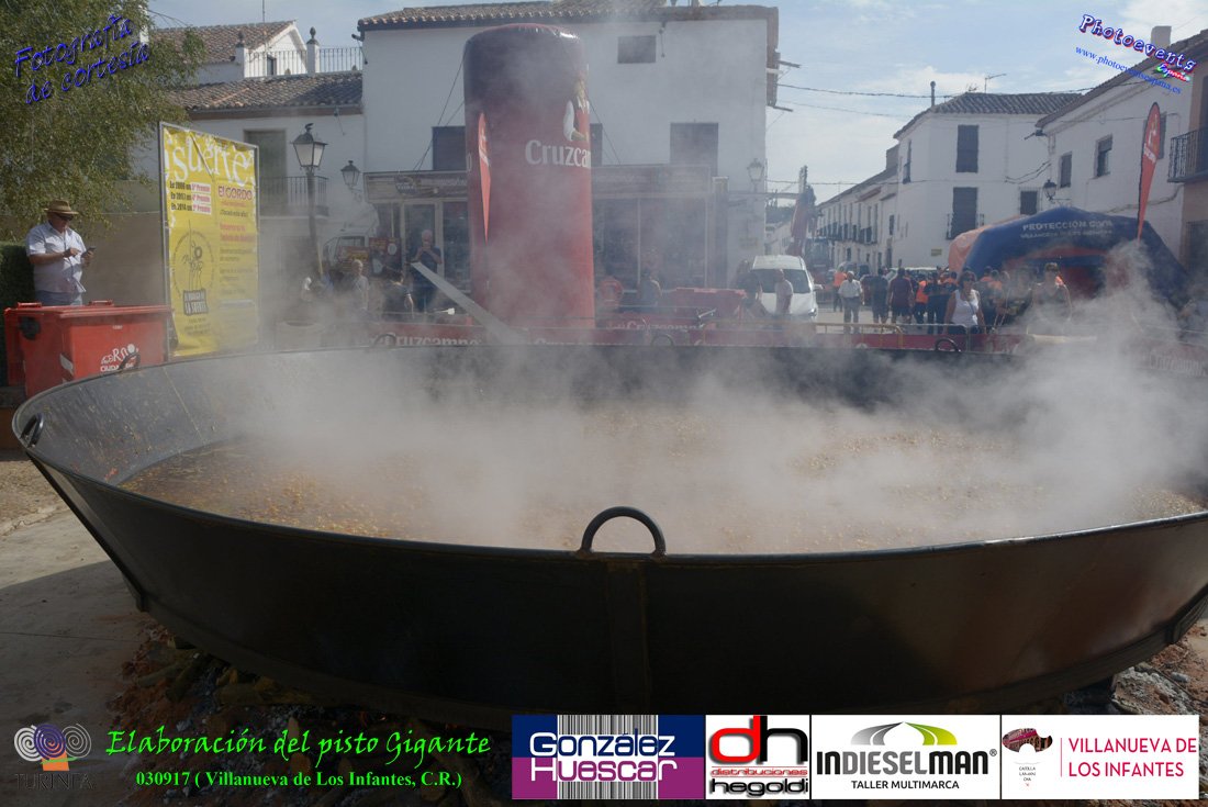 Fotografías realizadas durante la preparación del pisto mas grande del mundo, siendo este realizado con una nueva sarten de 5,20 metros (1 Metro mas que su predecesora). El pisto gigante se realizaba con 2000 kilos de pimiento (donados por El Abuelo Manolo y la Cooperativa la Moraleja), 1100 kilos de tomate, 360 kilos de carne, 150 litros de aceite (de la Cooperativa Virgen de la Antigua y Santo Tomás de Villanueva de la localidad) y 30 kilos de sal. Elavorandose tan suculento plato a fuego con leña durante más de 5 horas. El evento tenía lugar el pasado día 3 de Septiembre y estaba enmarcado dentro de las fiestas del pimiento que anualmente a comienzos de Septiembre se celebra en la localidad de Vva. de los Infantes, (Ciudad Real,España).