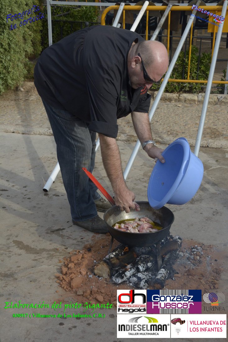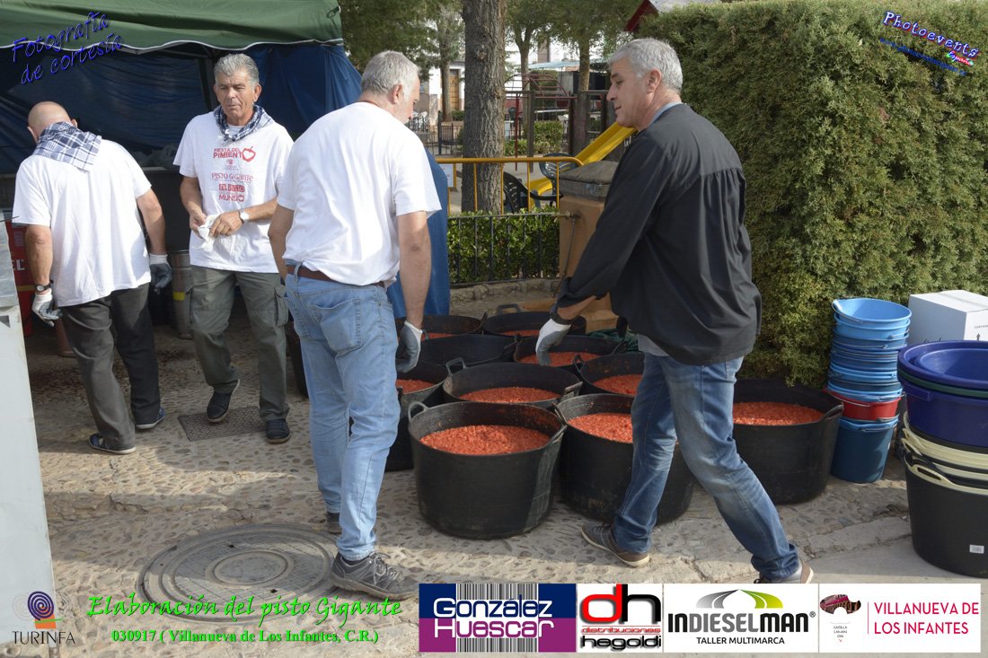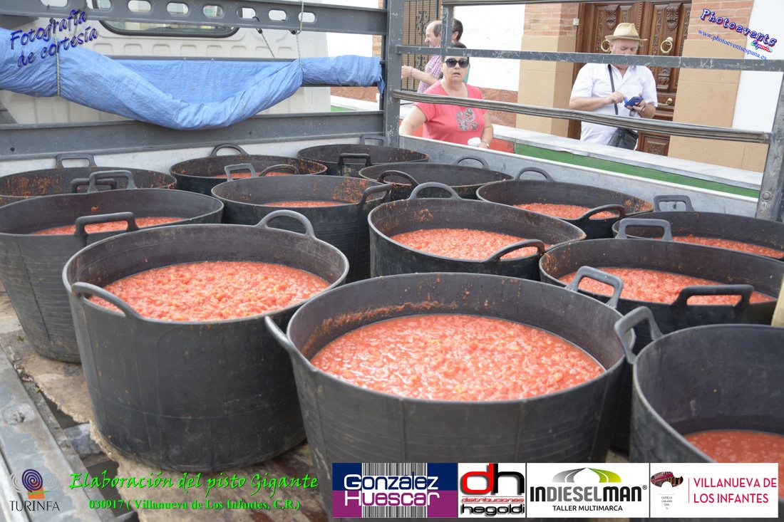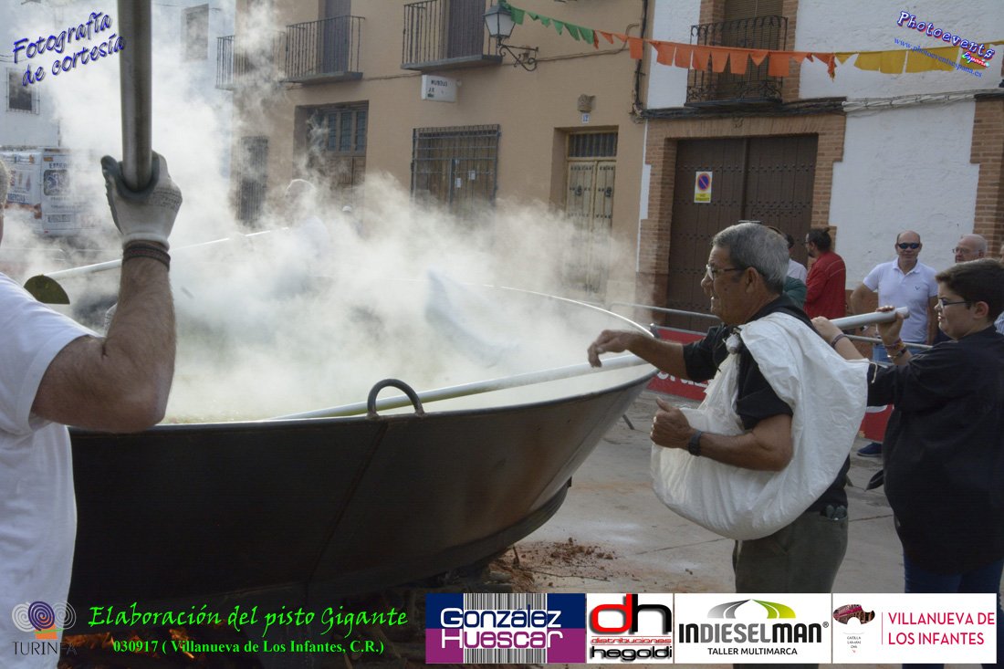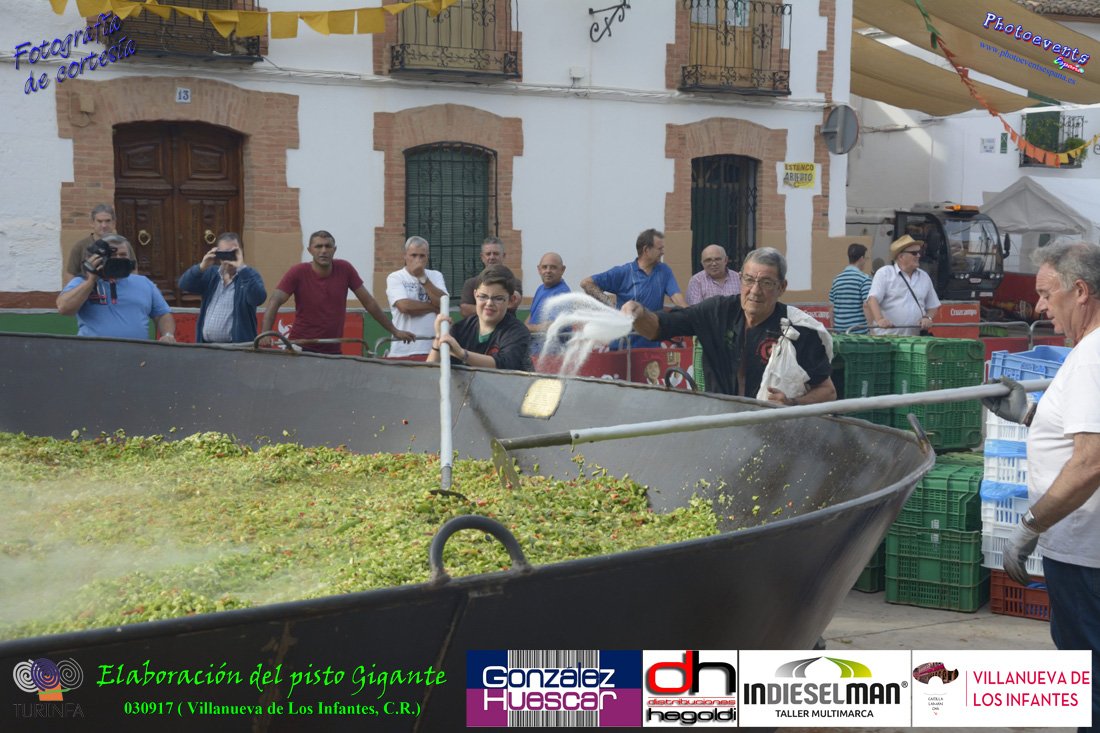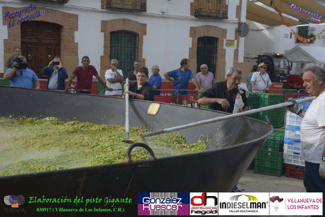 Fotografías realizadas durante la preparación del pisto mas grande del mundo, siendo este realizado con una nueva sarten de 5,20 metros (1 Metro mas que su predecesora). El pisto gigante se realizaba con 2000 kilos de pimiento (donados por El Abuelo Manolo y la Cooperativa la Moraleja), 1100 kilos de tomate, 360 kilos de carne, 150 litros de aceite (de la Cooperativa Virgen de la Antigua y Santo Tomás de Villanueva de la localidad) y 30 kilos de sal. Elavorandose tan suculento plato a fuego con leña durante más de 5 horas. El evento tenía lugar el pasado día 3 de Septiembre y estaba enmarcado dentro de las fiestas del pimiento que anualmente a comienzos de Septiembre se celebra en la localidad de Vva. de los Infantes, (Ciudad Real,España).