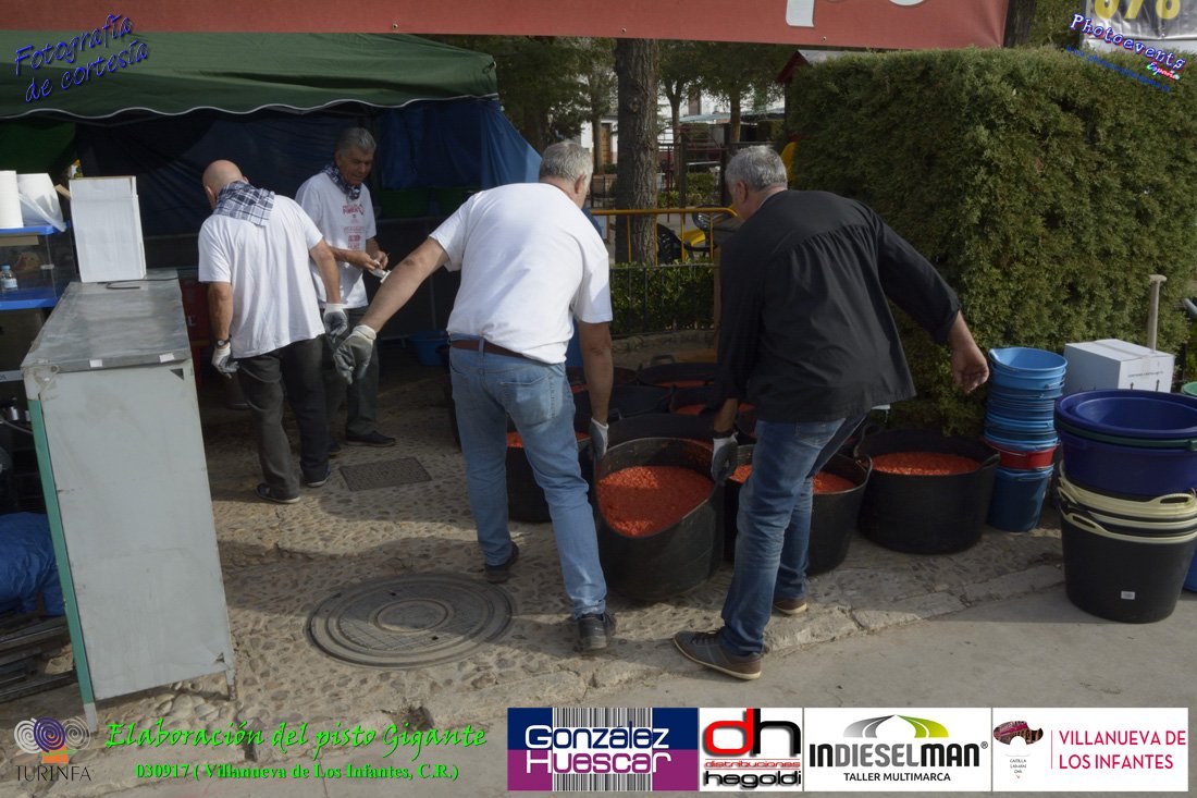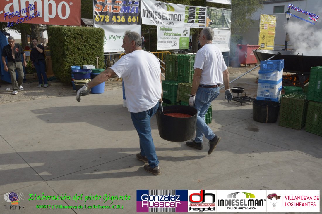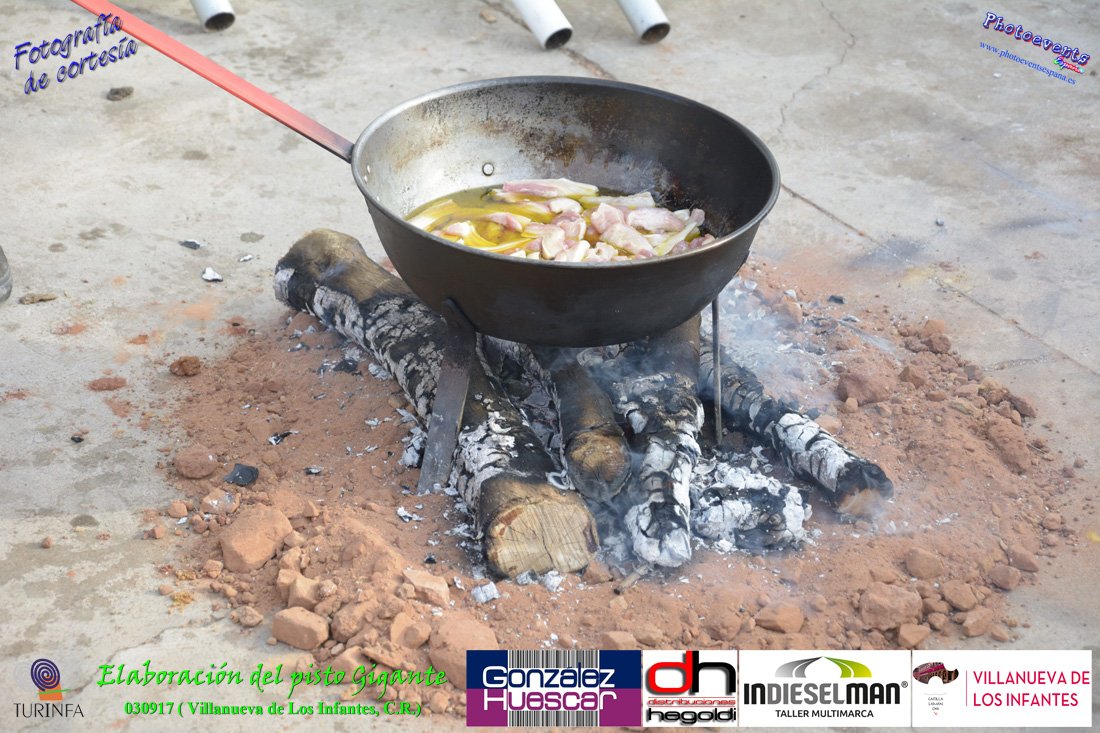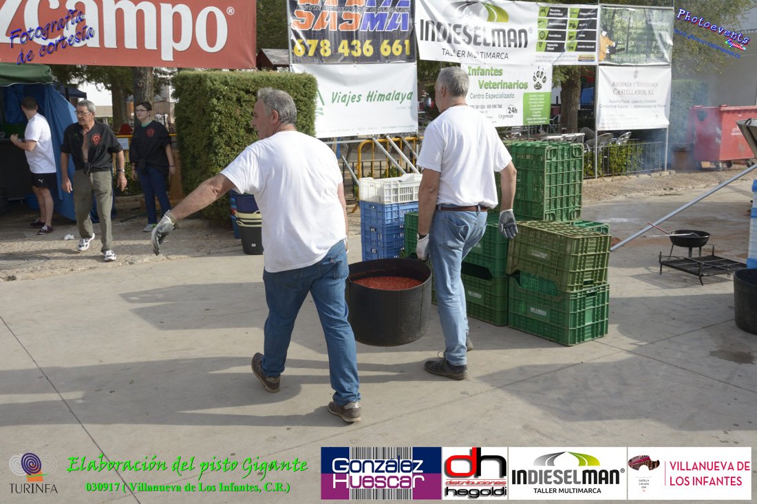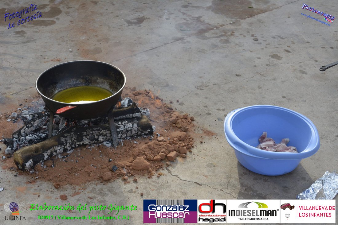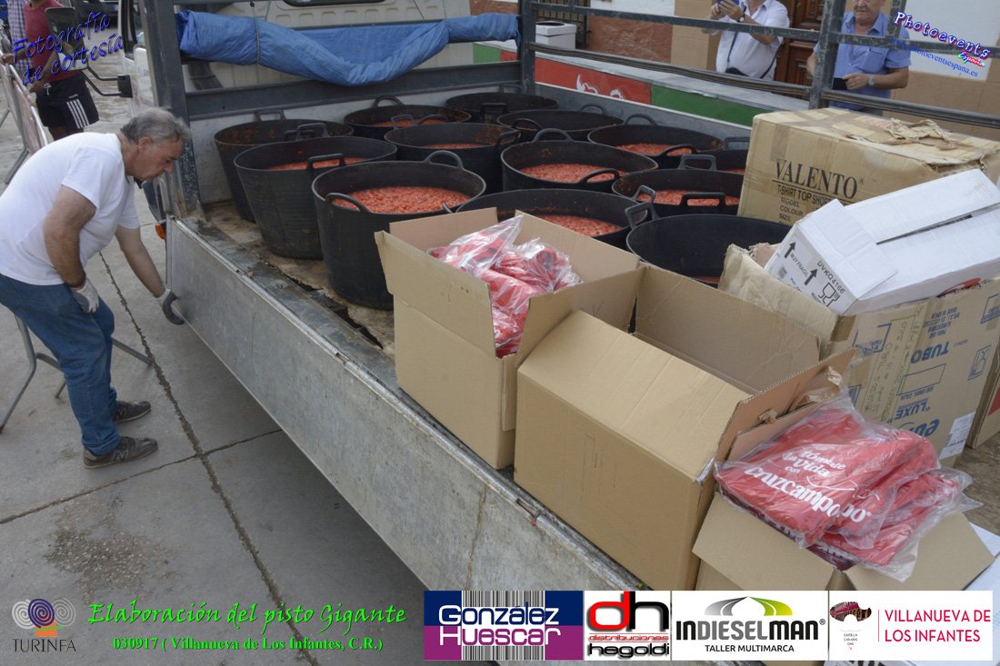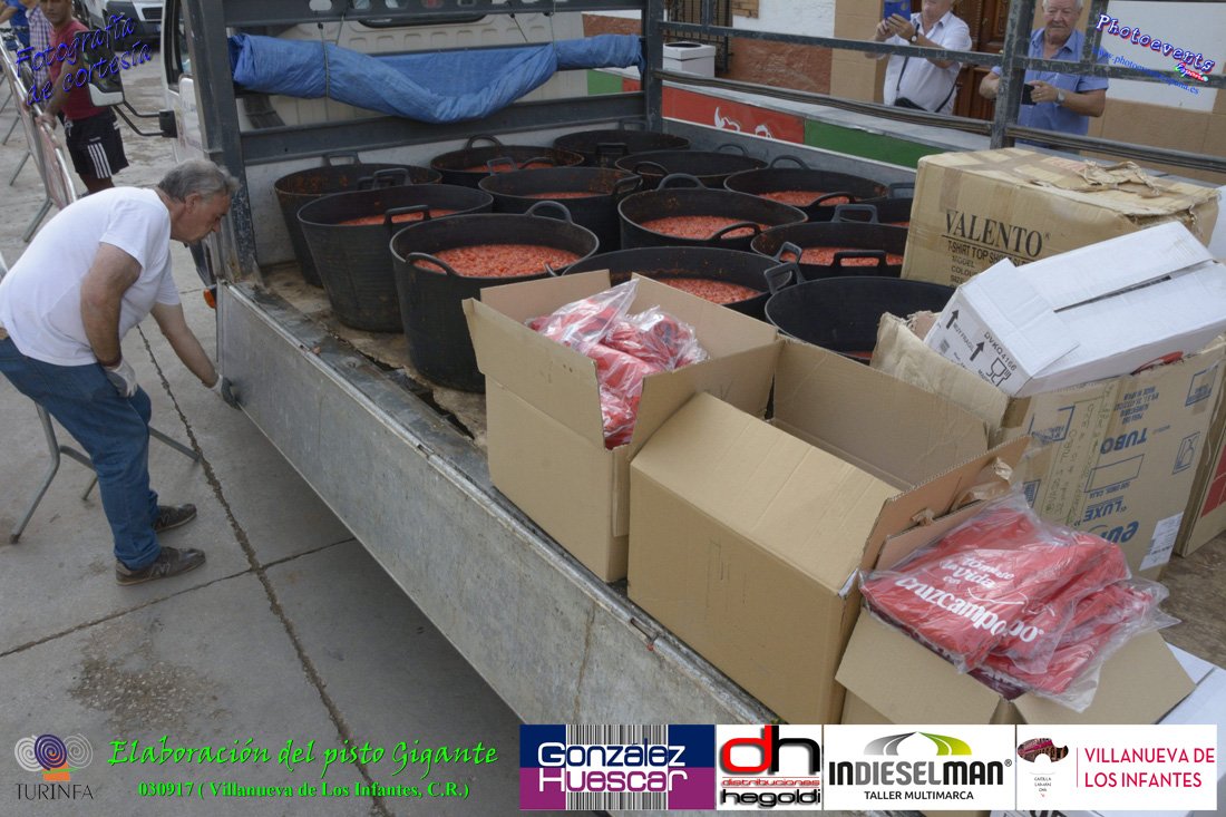 Fotografías realizadas durante la preparación del pisto mas grande del mundo, siendo este realizado con una nueva sarten de 5,20 metros (1 Metro mas que su predecesora). El pisto gigante se realizaba con 2000 kilos de pimiento (donados por El Abuelo Manolo y la Cooperativa la Moraleja), 1100 kilos de tomate, 360 kilos de carne, 150 litros de aceite (de la Cooperativa Virgen de la Antigua y Santo Tomás de Villanueva de la localidad) y 30 kilos de sal. Elavorandose tan suculento plato a fuego con leña durante más de 5 horas. El evento tenía lugar el pasado día 3 de Septiembre y estaba enmarcado dentro de las fiestas del pimiento que anualmente a comienzos de Septiembre se celebra en la localidad de Vva. de los Infantes, (Ciudad Real,España).