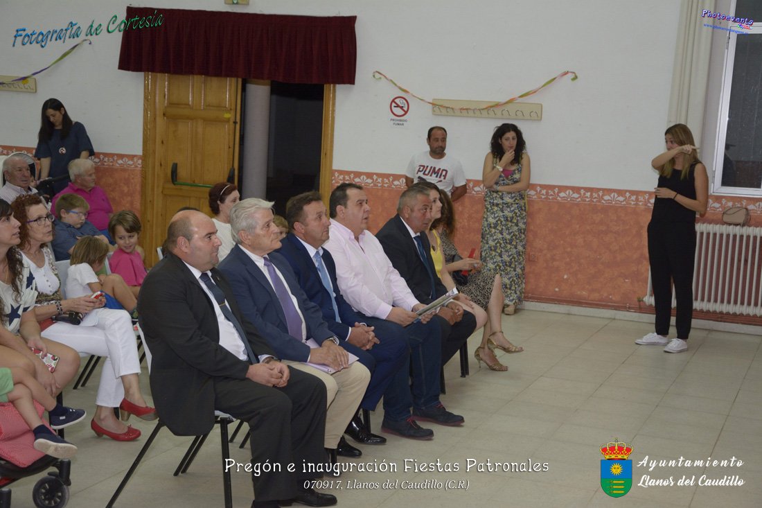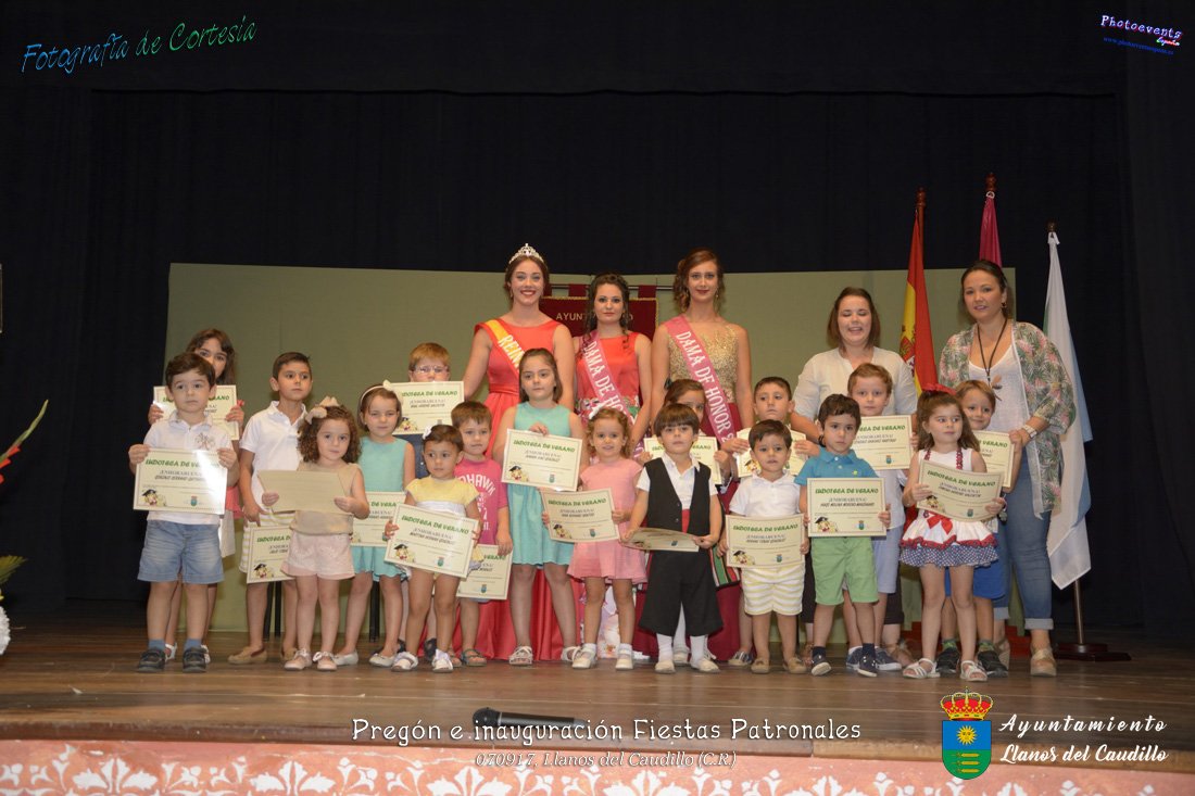 Fotografías realizadas durante el recibimiento de la Reina y damas de honor y entrega de premios a los niños de la Ludoteca de verano, para dar paso posteriormente al pregón de las fiestas a cargo de Vicente Morales Olmedo, terminando el acto con las palabras de Andres Arroyo (Alcalde de Llanos del Caudillo) , que una vez terminado el saludo a los presentes daban comienzo una traca de fuegos artificiales , que tuvo lugar el pasado día 070917 con motivo del inicio de las fiestas patronales de Llanos del Caudillo, Ciudad Real.