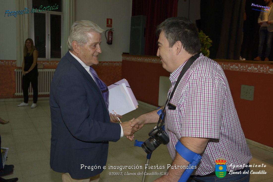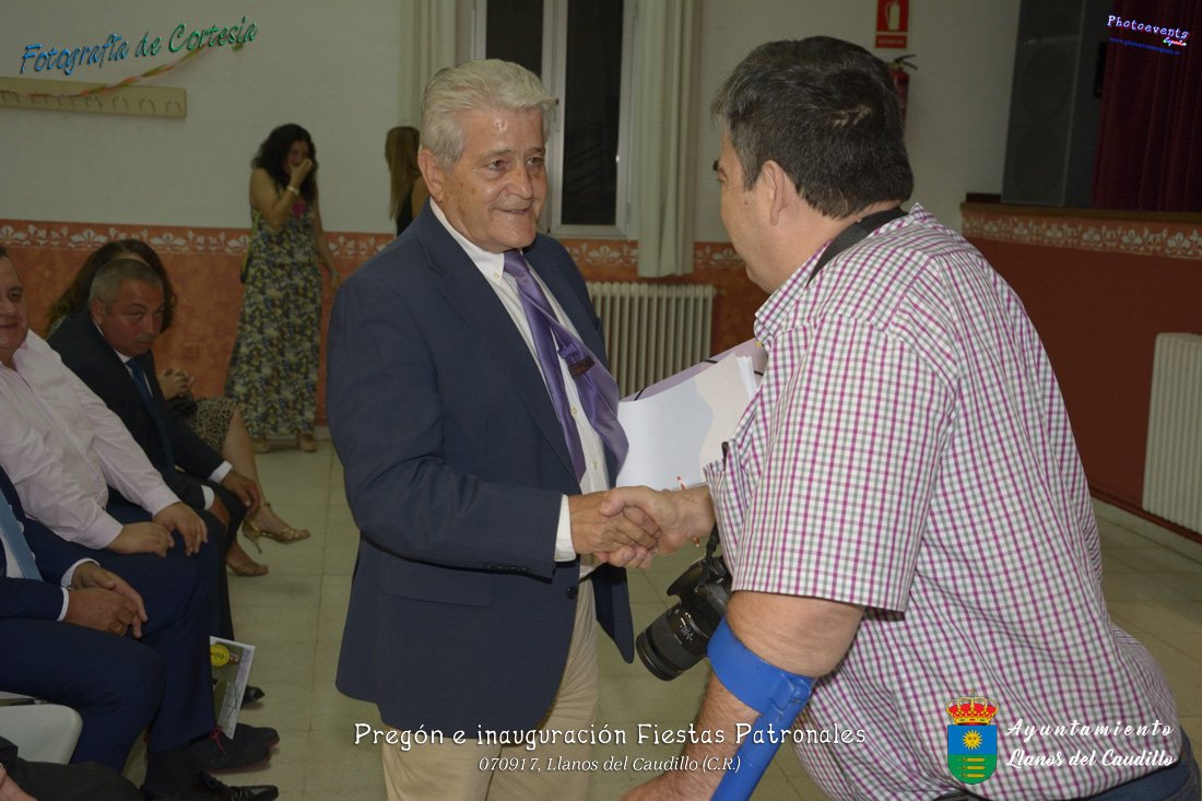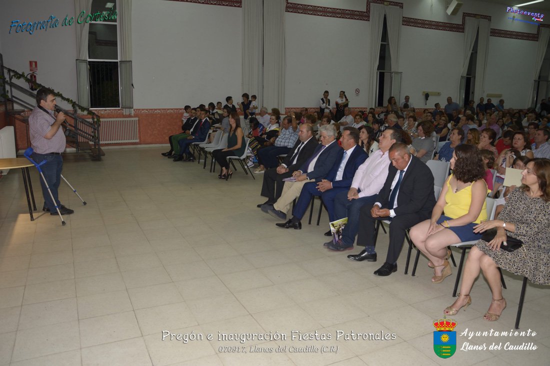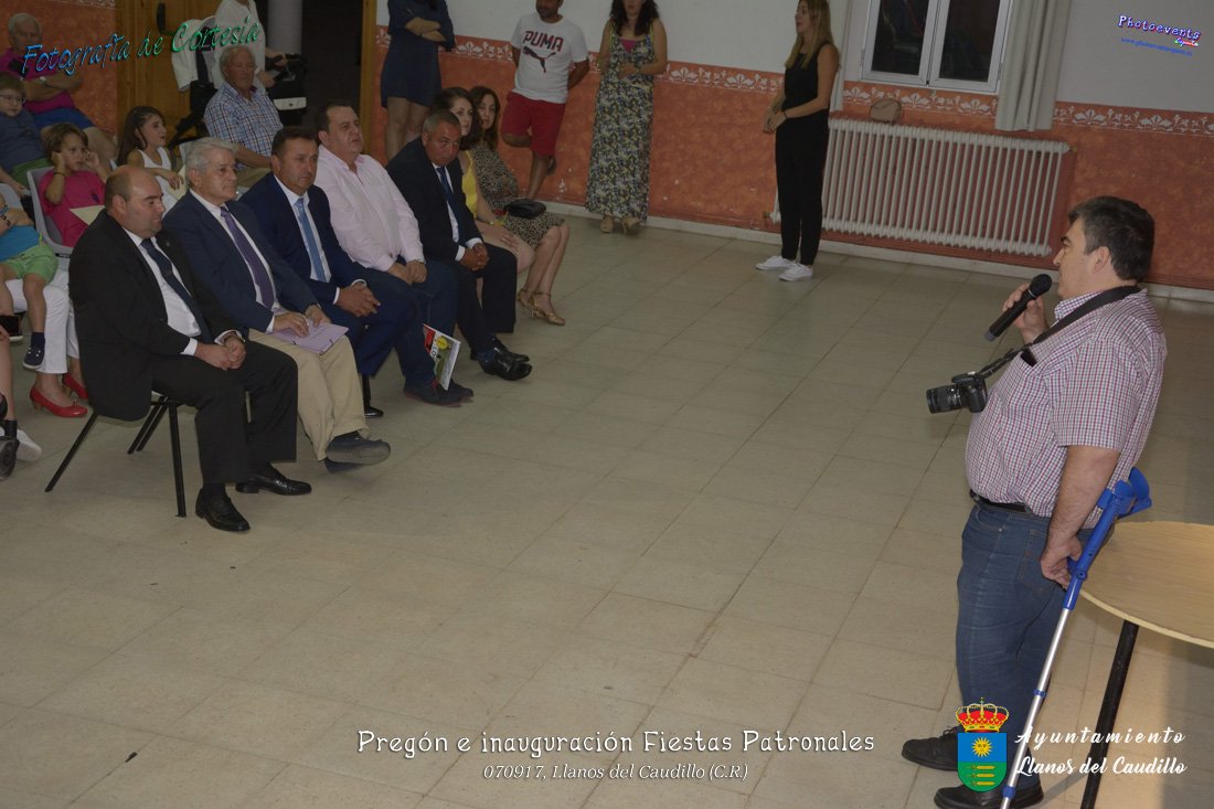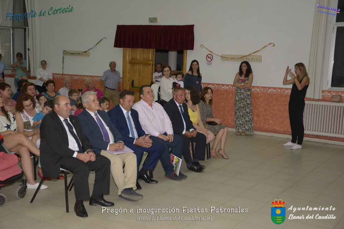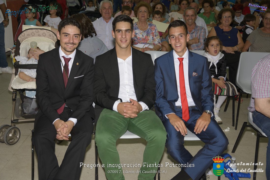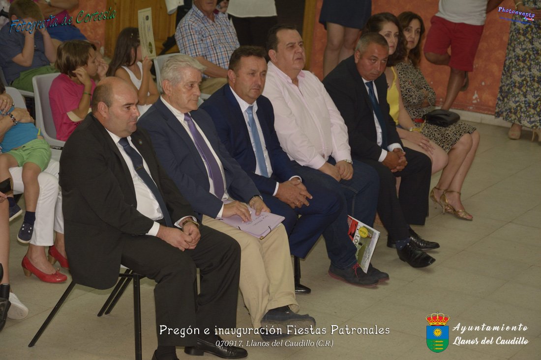 Fotografías realizadas durante el recibimiento de la Reina y damas de honor y entrega de premios a los niños de la Ludoteca de verano, para dar paso posteriormente al pregón de las fiestas a cargo de Vicente Morales Olmedo, terminando el acto con las palabras de Andres Arroyo (Alcalde de Llanos del Caudillo) , que una vez terminado el saludo a los presentes daban comienzo una traca de fuegos artificiales , que tuvo lugar el pasado día 070917 con motivo del inicio de las fiestas patronales de Llanos del Caudillo, Ciudad Real.