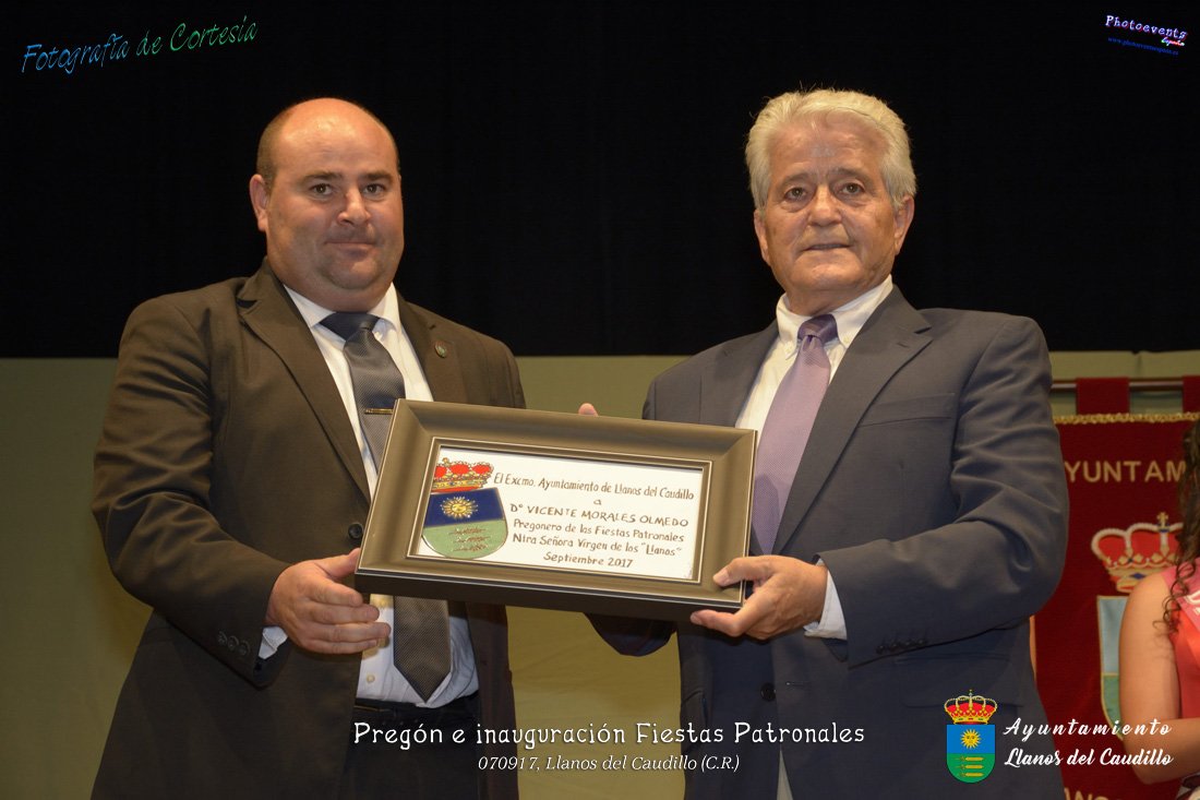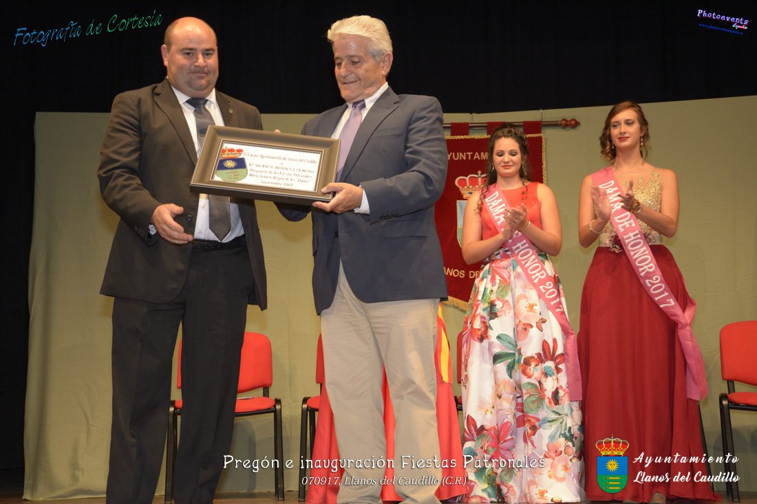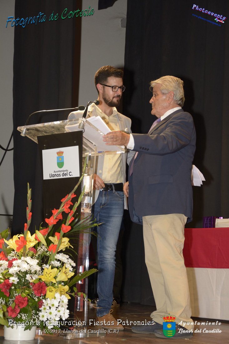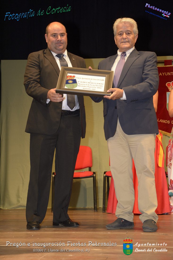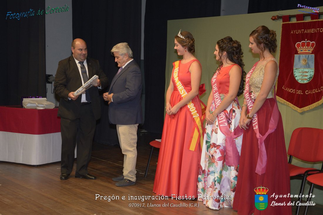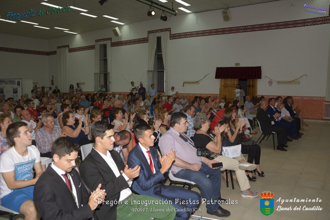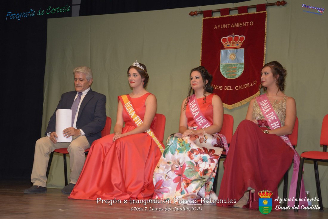 Fotografías realizadas durante el recibimiento de la Reina y damas de honor y entrega de premios a los niños de la Ludoteca de verano, para dar paso posteriormente al pregón de las fiestas a cargo de Vicente Morales Olmedo, terminando el acto con las palabras de Andres Arroyo (Alcalde de Llanos del Caudillo) , que una vez terminado el saludo a los presentes daban comienzo una traca de fuegos artificiales , que tuvo lugar el pasado día 070917 con motivo del inicio de las fiestas patronales de Llanos del Caudillo, Ciudad Real.