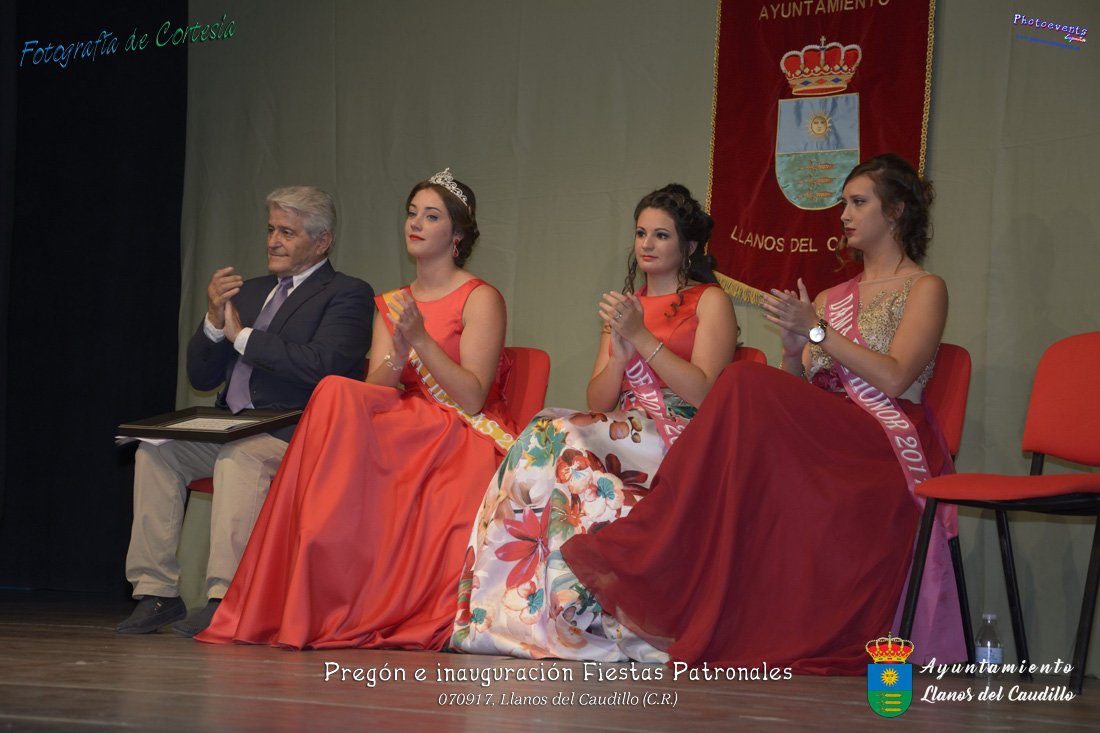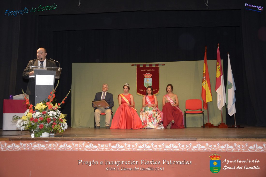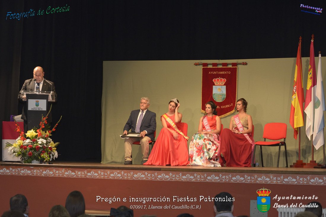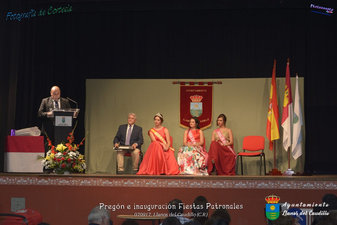 Fotografías realizadas durante el recibimiento de la Reina y damas de honor y entrega de premios a los niños de la Ludoteca de verano, para dar paso posteriormente al pregón de las fiestas a cargo de Vicente Morales Olmedo, terminando el acto con las palabras de Andres Arroyo (Alcalde de Llanos del Caudillo) , que una vez terminado el saludo a los presentes daban comienzo una traca de fuegos artificiales , que tuvo lugar el pasado día 070917 con motivo del inicio de las fiestas patronales de Llanos del Caudillo, Ciudad Real.