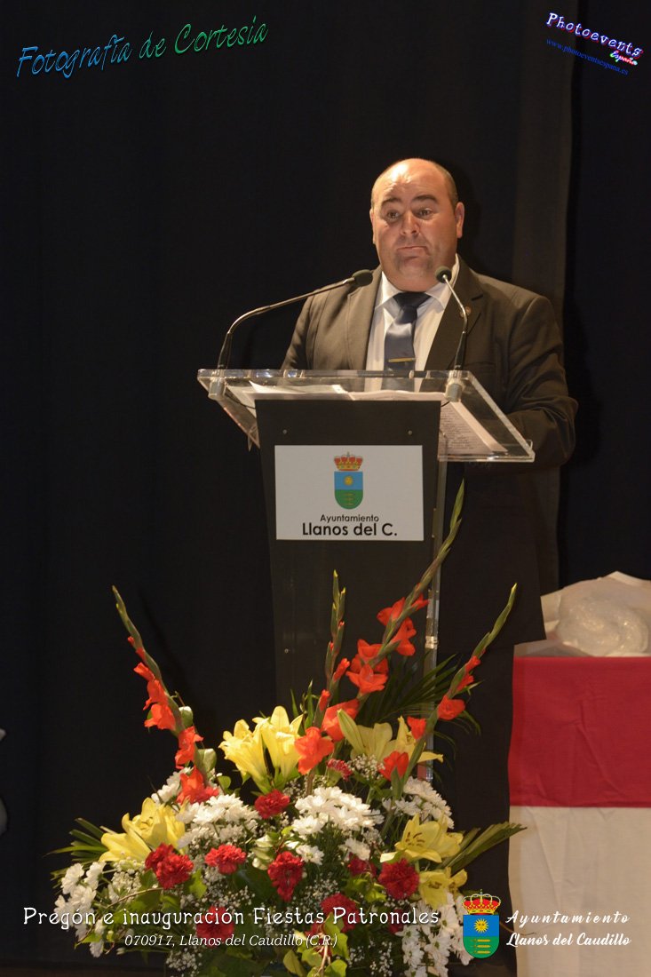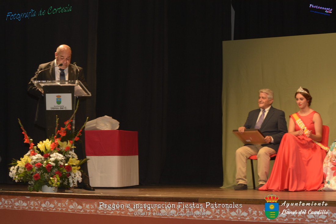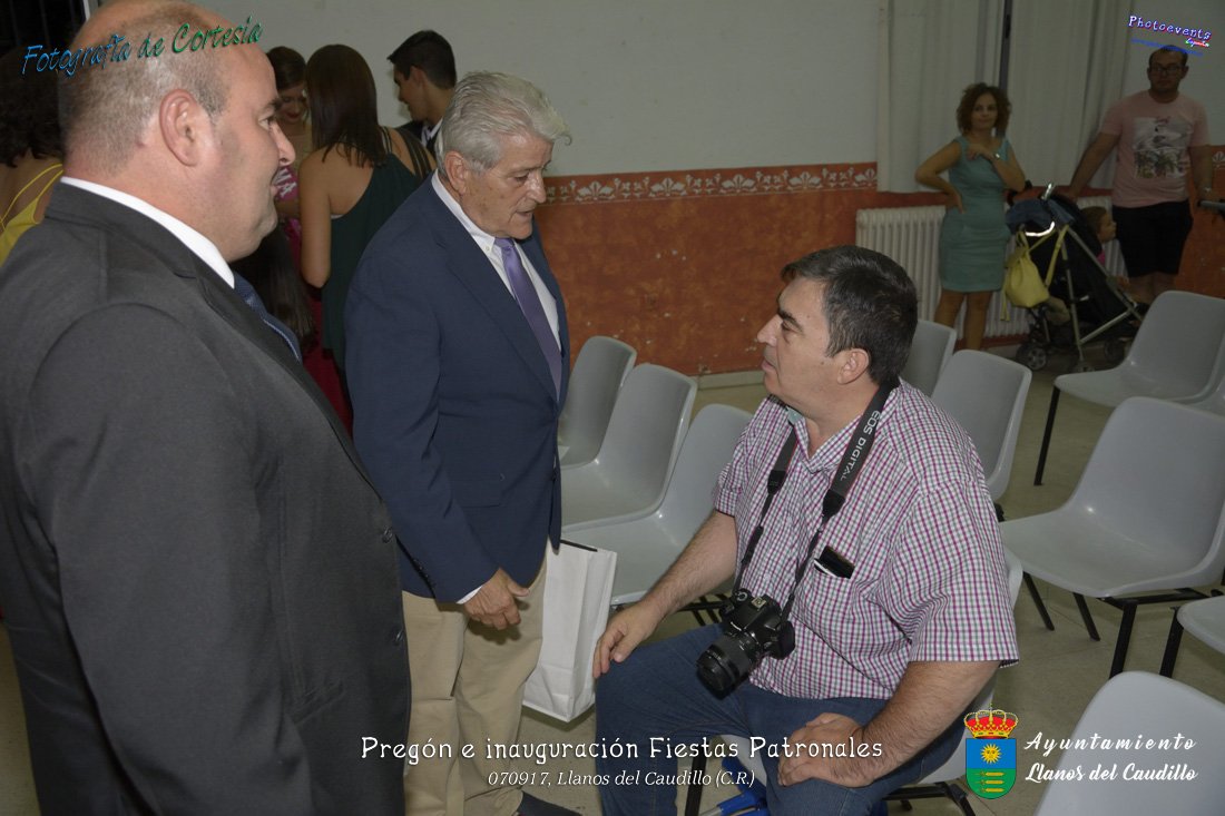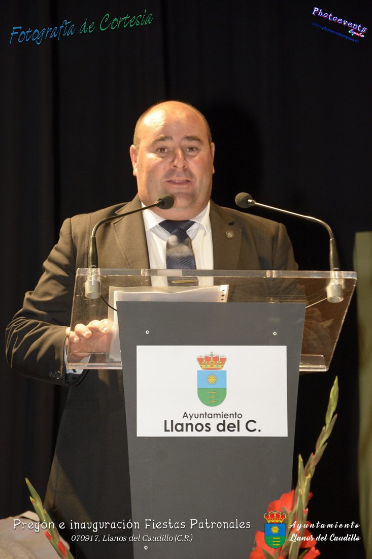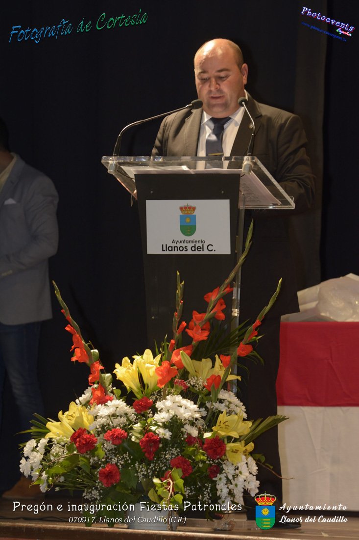 Fotografías realizadas durante el recibimiento de la Reina y damas de honor y entrega de premios a los niños de la Ludoteca de verano, para dar paso posteriormente al pregón de las fiestas a cargo de Vicente Morales Olmedo, terminando el acto con las palabras de Andres Arroyo (Alcalde de Llanos del Caudillo) , que una vez terminado el saludo a los presentes daban comienzo una traca de fuegos artificiales , que tuvo lugar el pasado día 070917 con motivo del inicio de las fiestas patronales de Llanos del Caudillo, Ciudad Real.