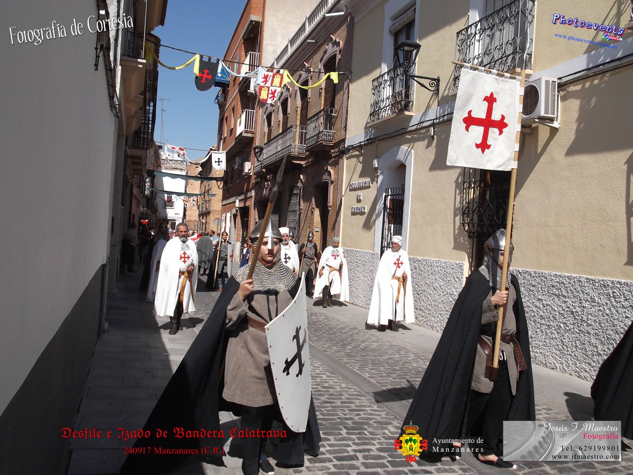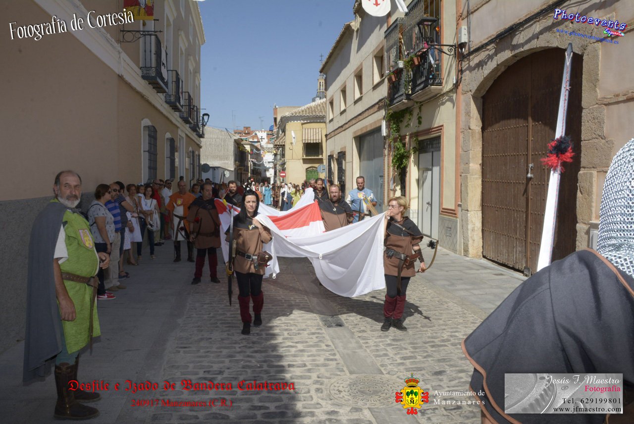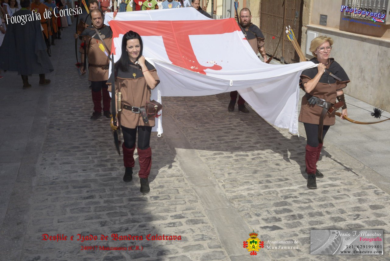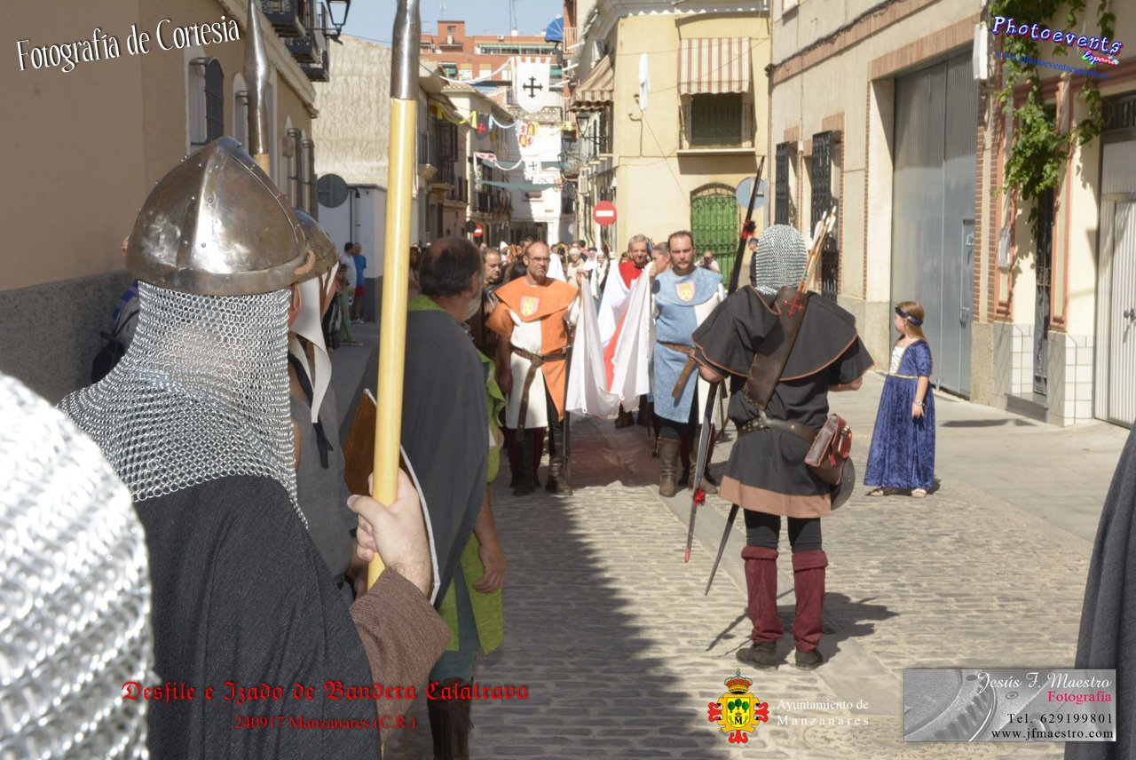 Fotografías realizadas durante el desfile y posterior izado de la Bandera Calatrava en el Castillo de Pilas Bonas, dando comienzo de esta manera a las VI Jornadas Medievales en la localidad de Manzanares, (Ciudad Real).