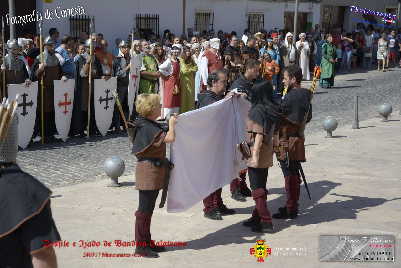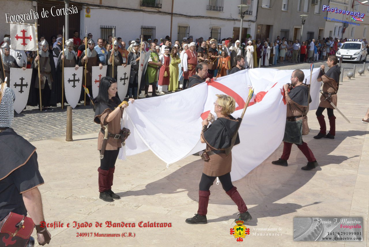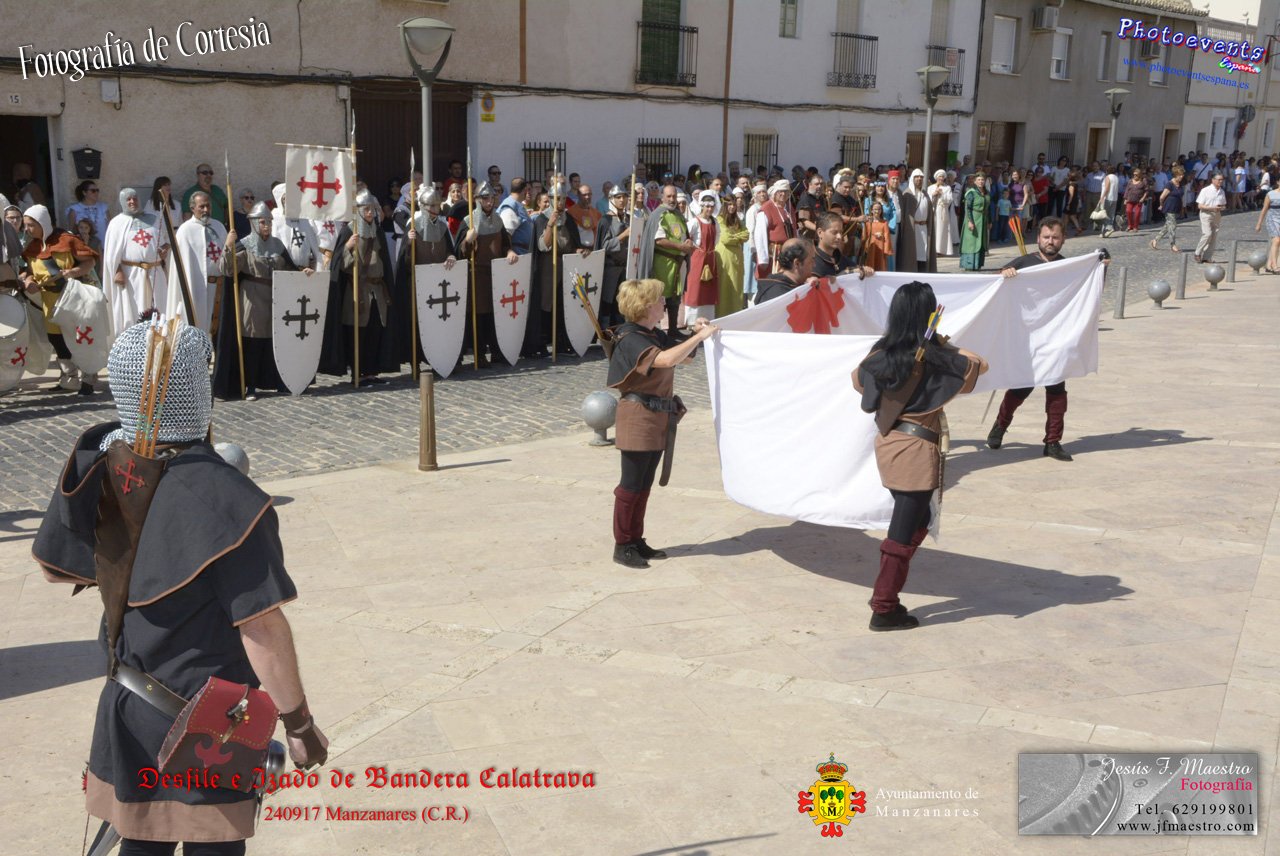 Fotografías realizadas durante el desfile y posterior izado de la Bandera Calatrava en el Castillo de Pilas Bonas, dando comienzo de esta manera a las VI Jornadas Medievales en la localidad de Manzanares, (Ciudad Real).