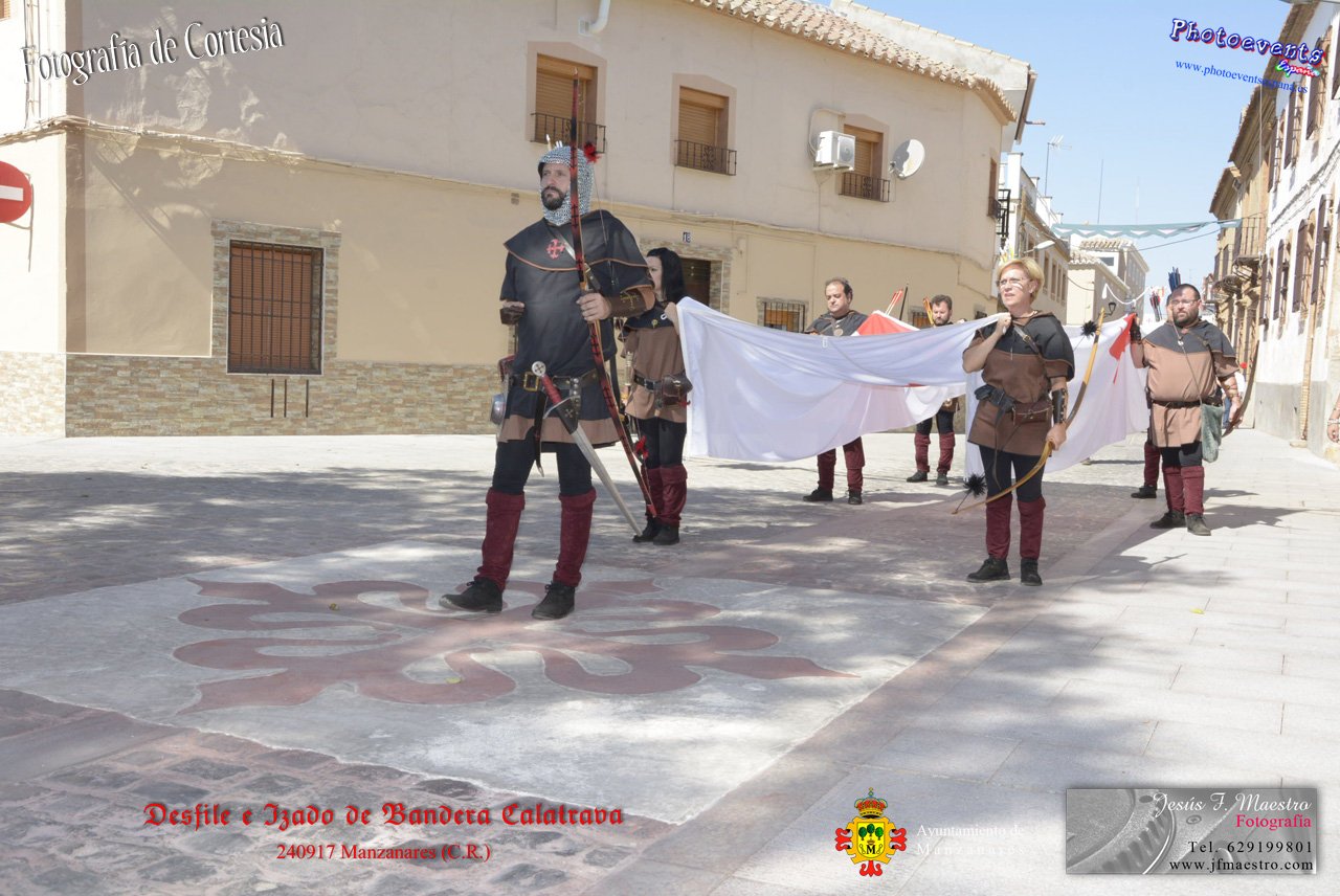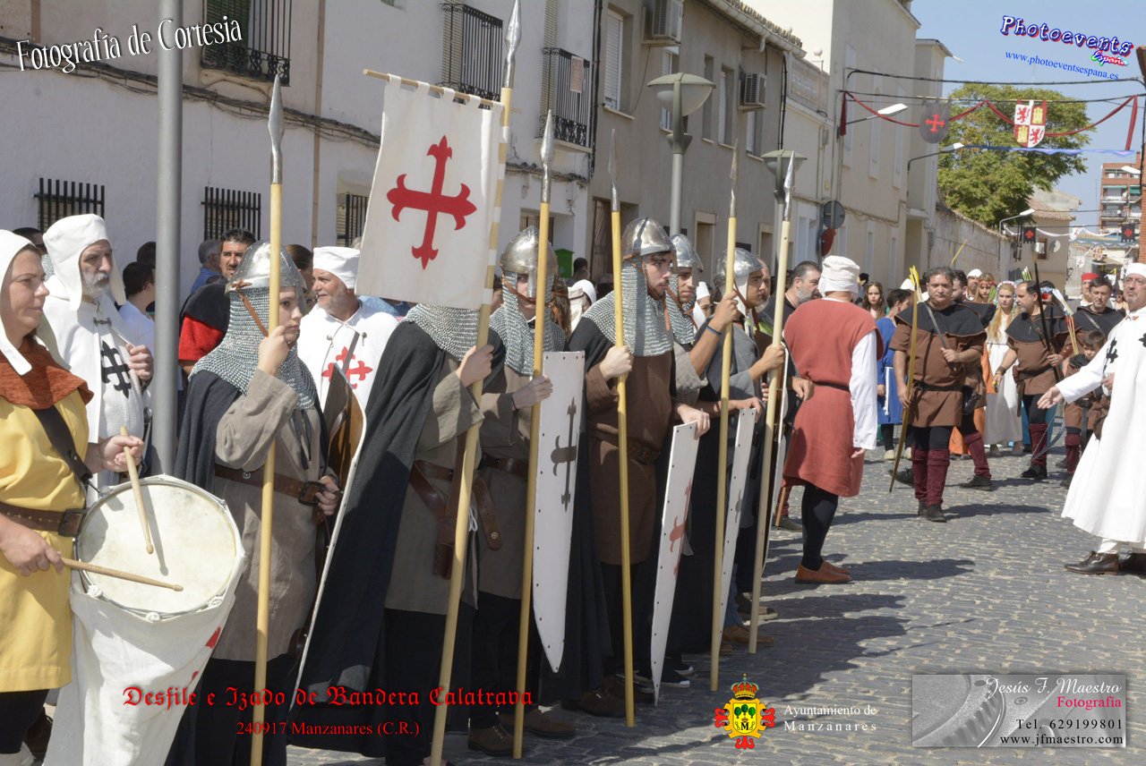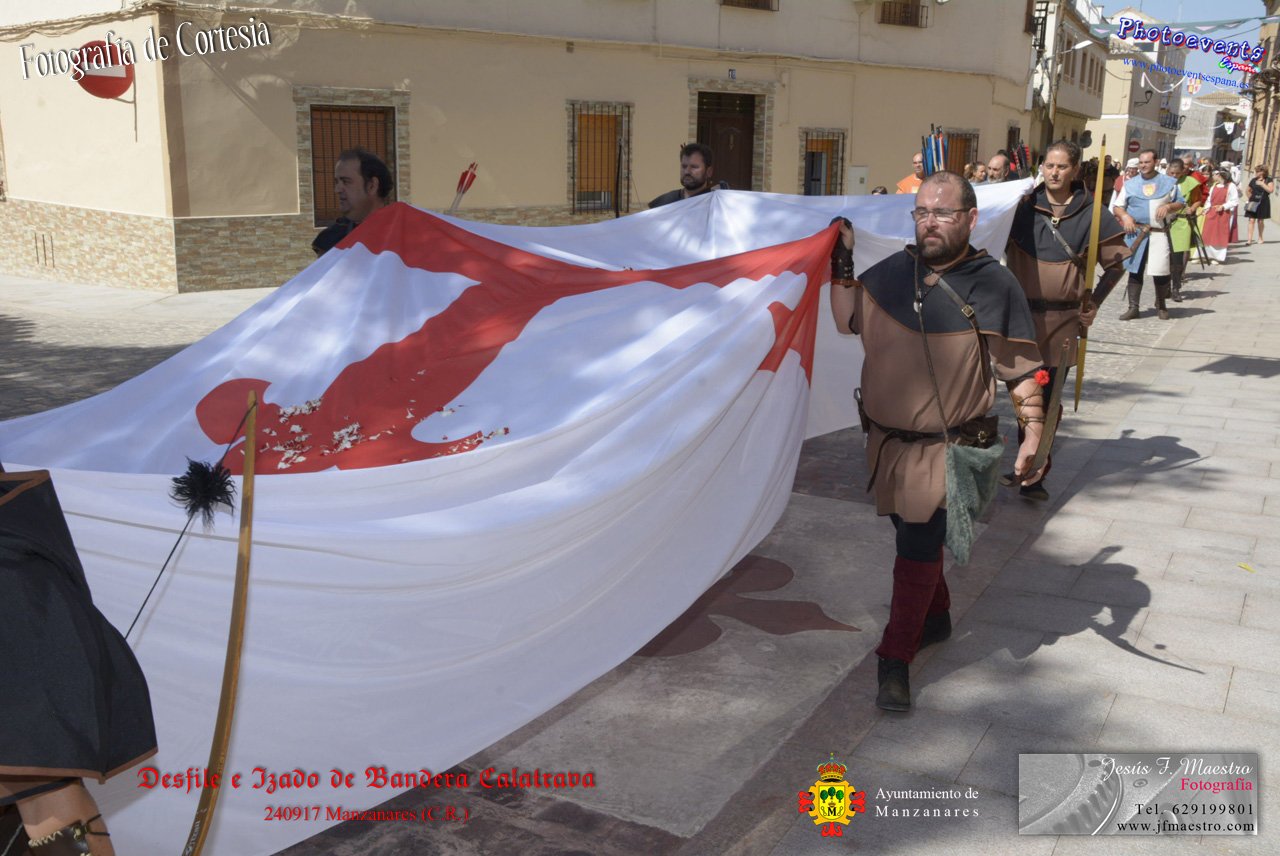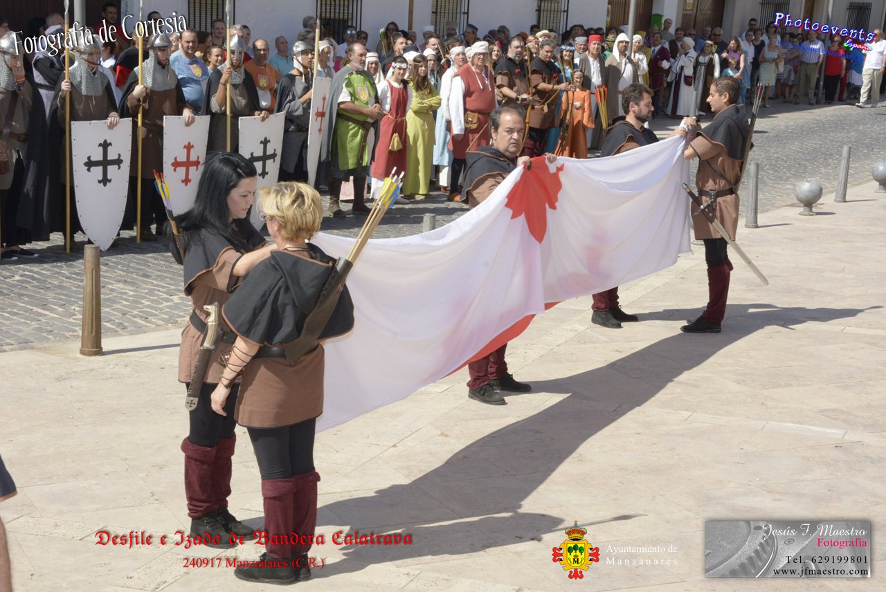 Fotografías realizadas durante el desfile y posterior izado de la Bandera Calatrava en el Castillo de Pilas Bonas, dando comienzo de esta manera a las VI Jornadas Medievales en la localidad de Manzanares, (Ciudad Real).