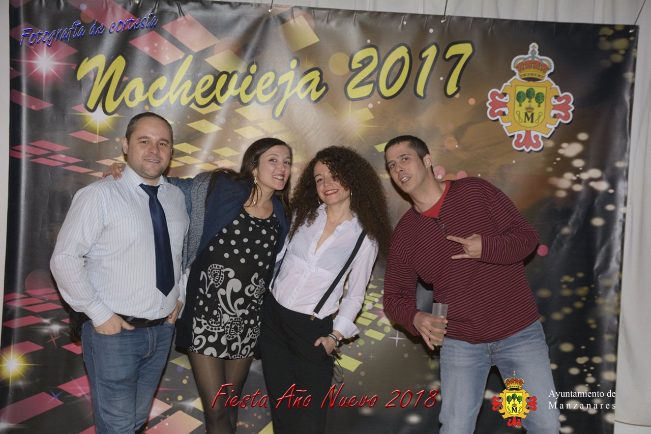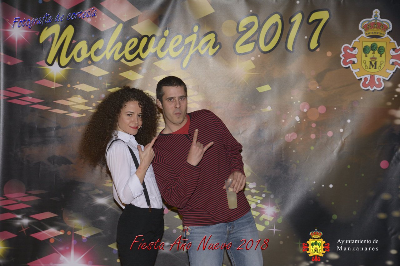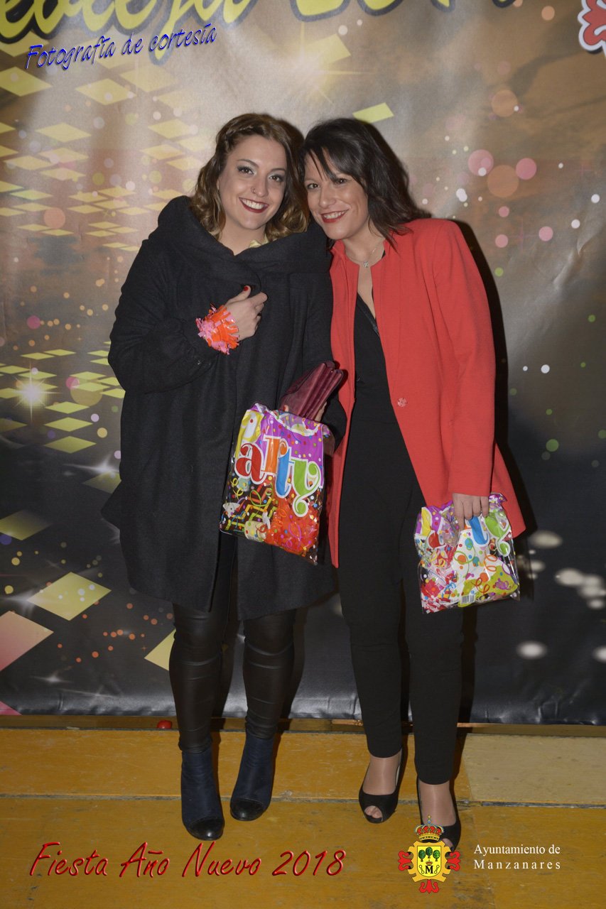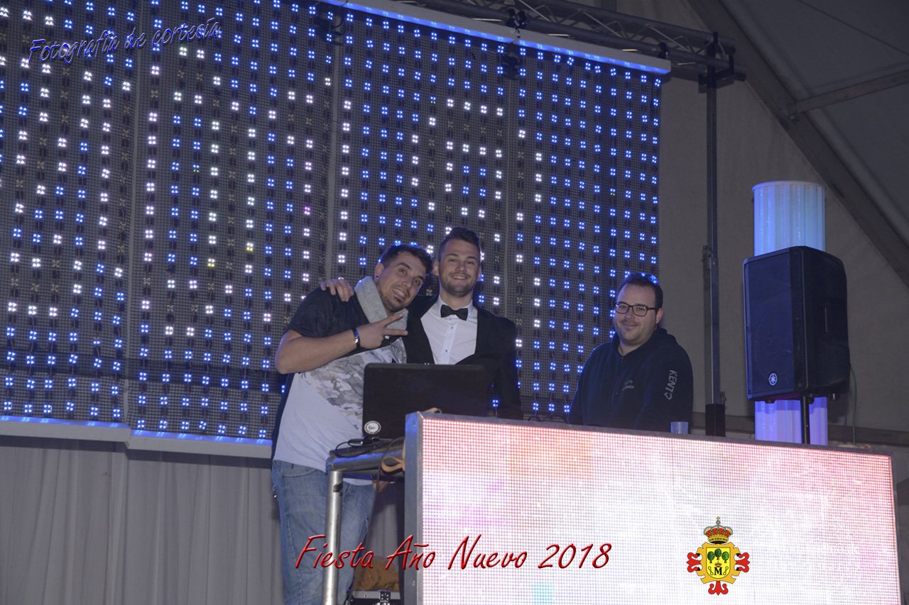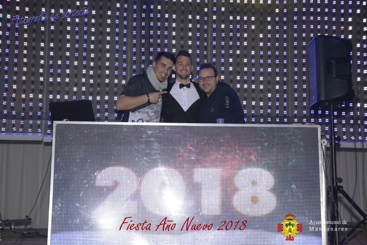 Fotografías durante la fiesta cotillón realizada al inaugurar el nuevo año 2018 bailando a ritmo de discomovil con CON DJ DART Y DJ JUANMA SOUND, en la Pérgola durante la madrugada del 1 de Enero, con motivo de las fiestas Navideñas 2017 de la localidad de Manzanares, Ciudad Real.