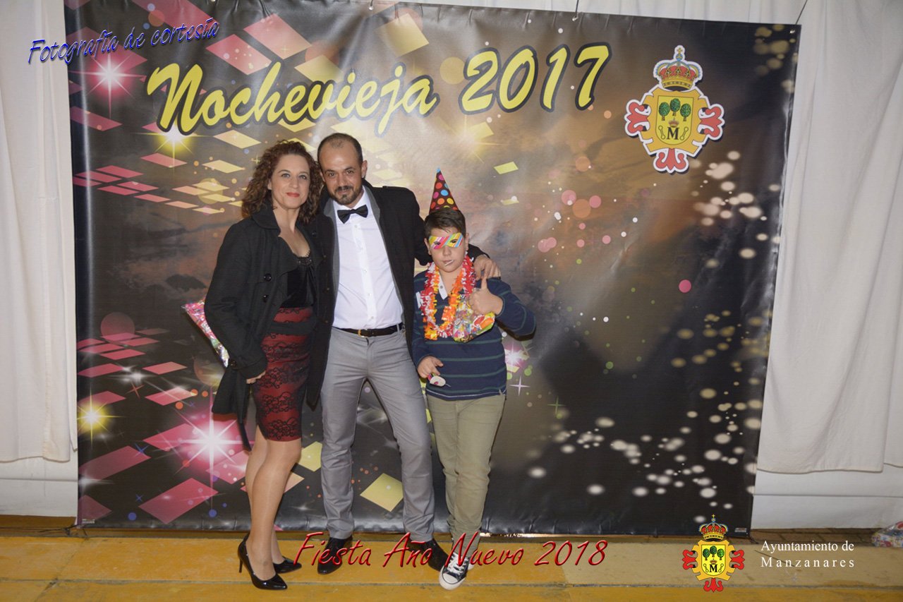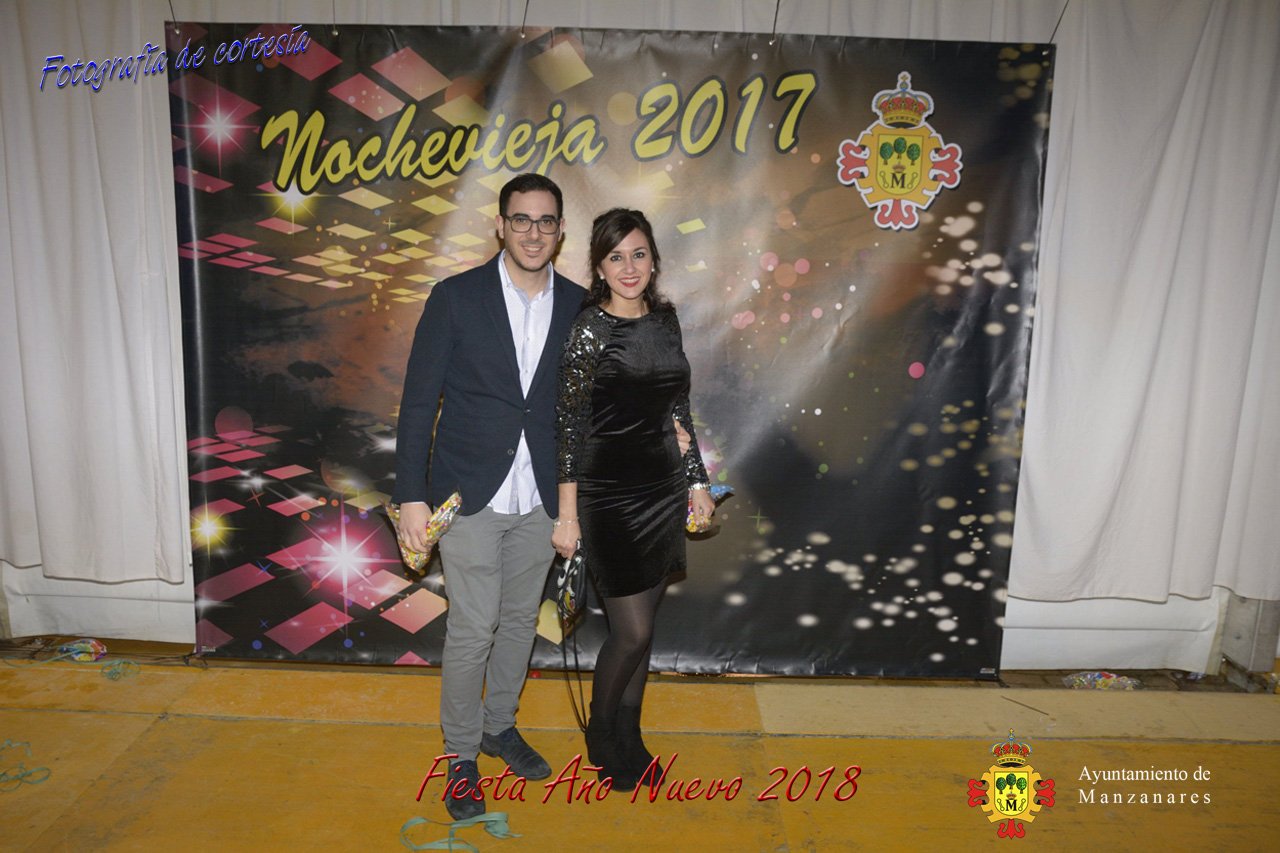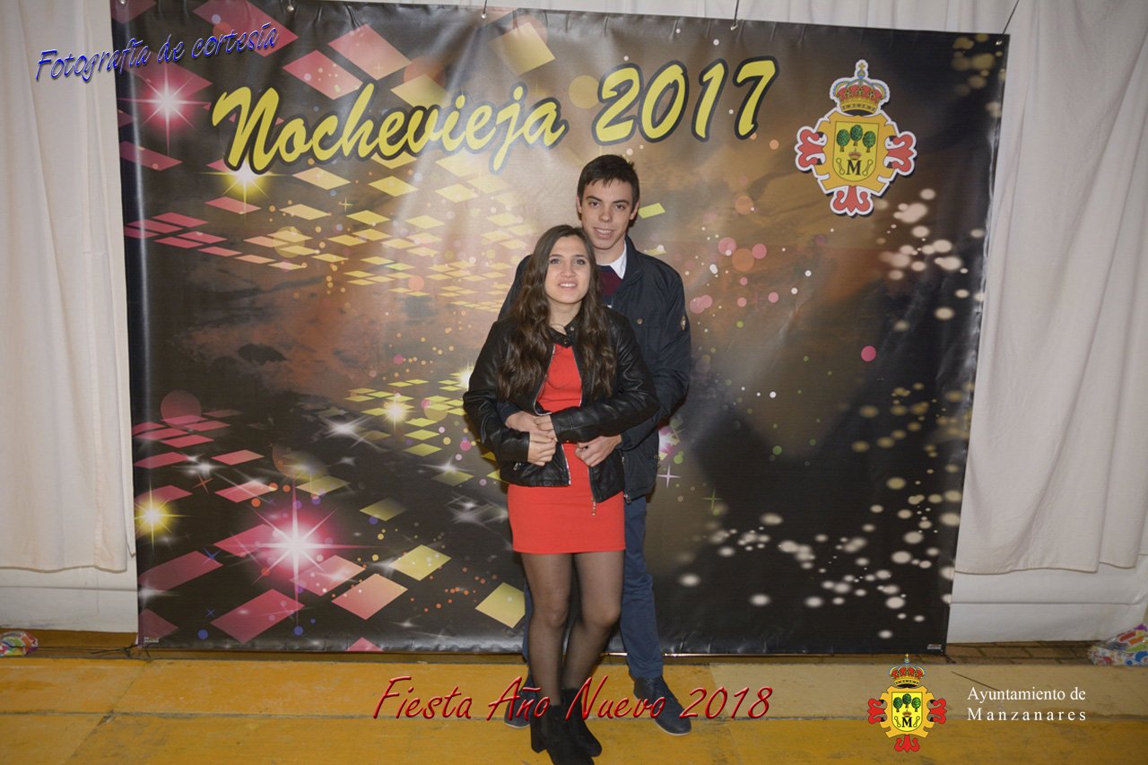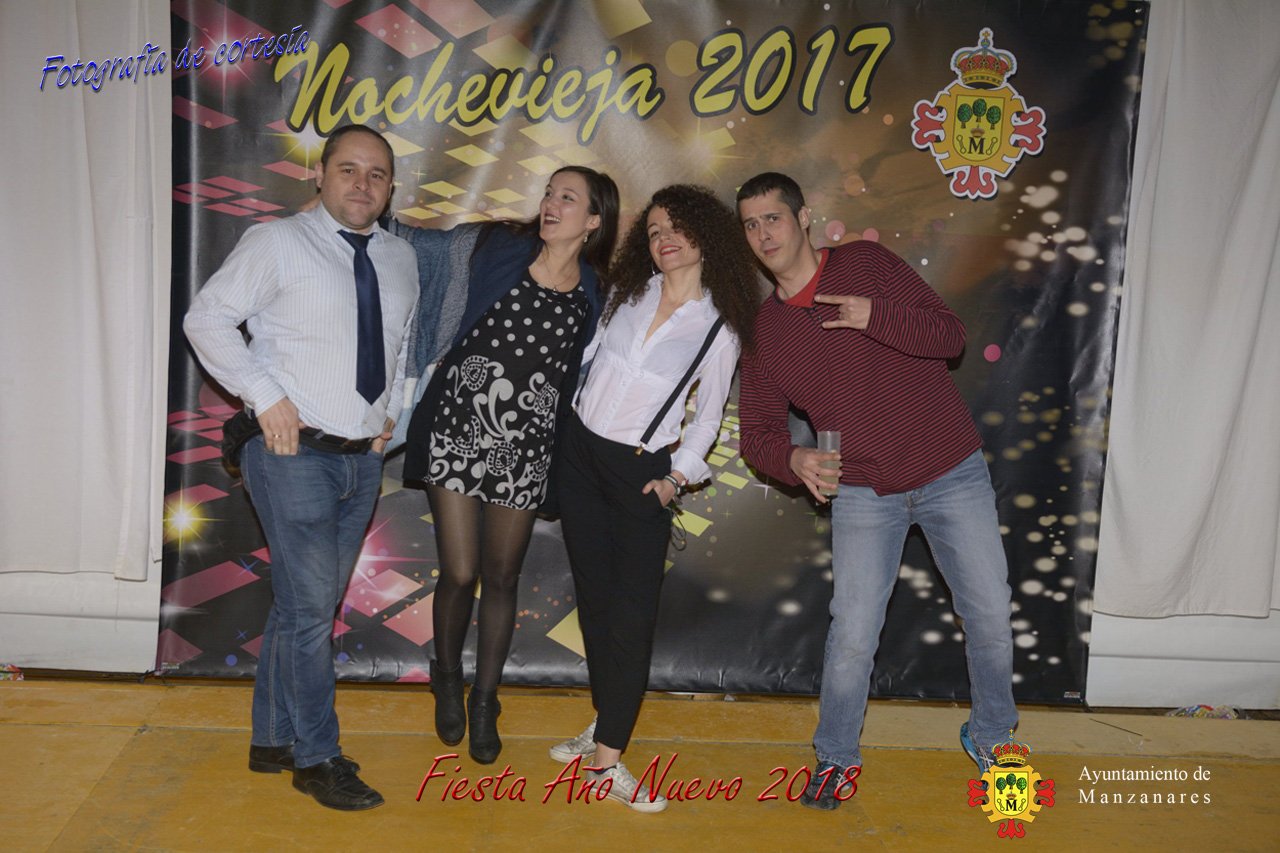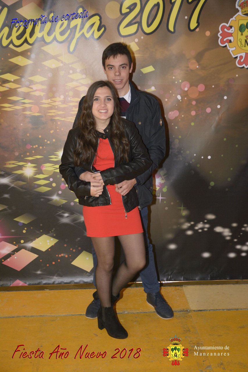 Fotografías durante la fiesta cotillón realizada al inaugurar el nuevo año 2018 bailando a ritmo de discomovil con CON DJ DART Y DJ JUANMA SOUND, en la Pérgola durante la madrugada del 1 de Enero, con motivo de las fiestas Navideñas 2017 de la localidad de Manzanares, Ciudad Real.