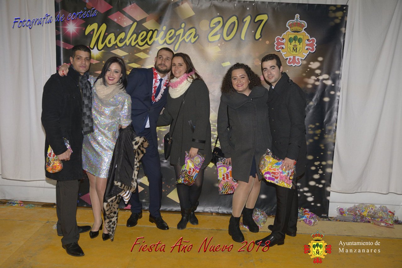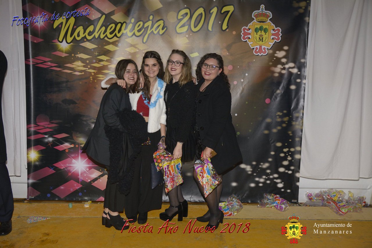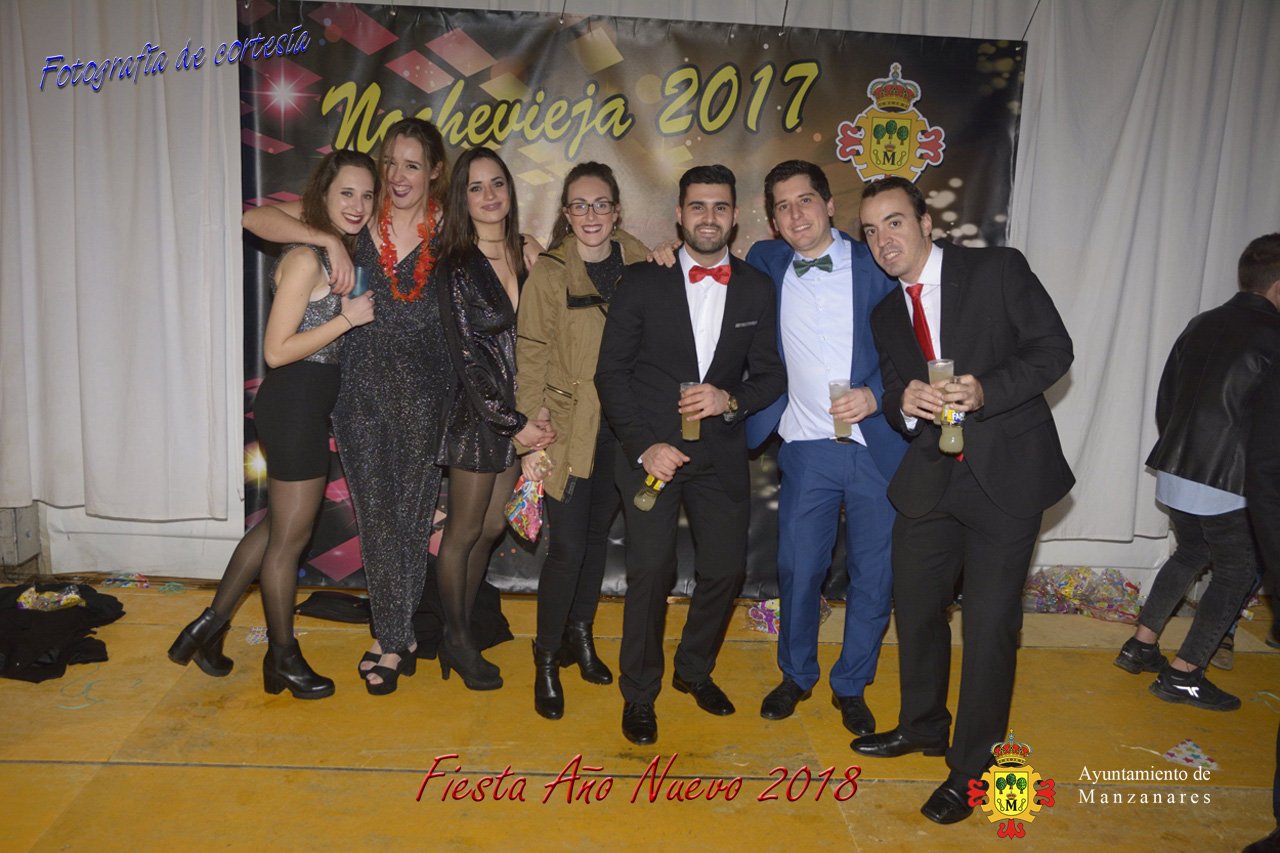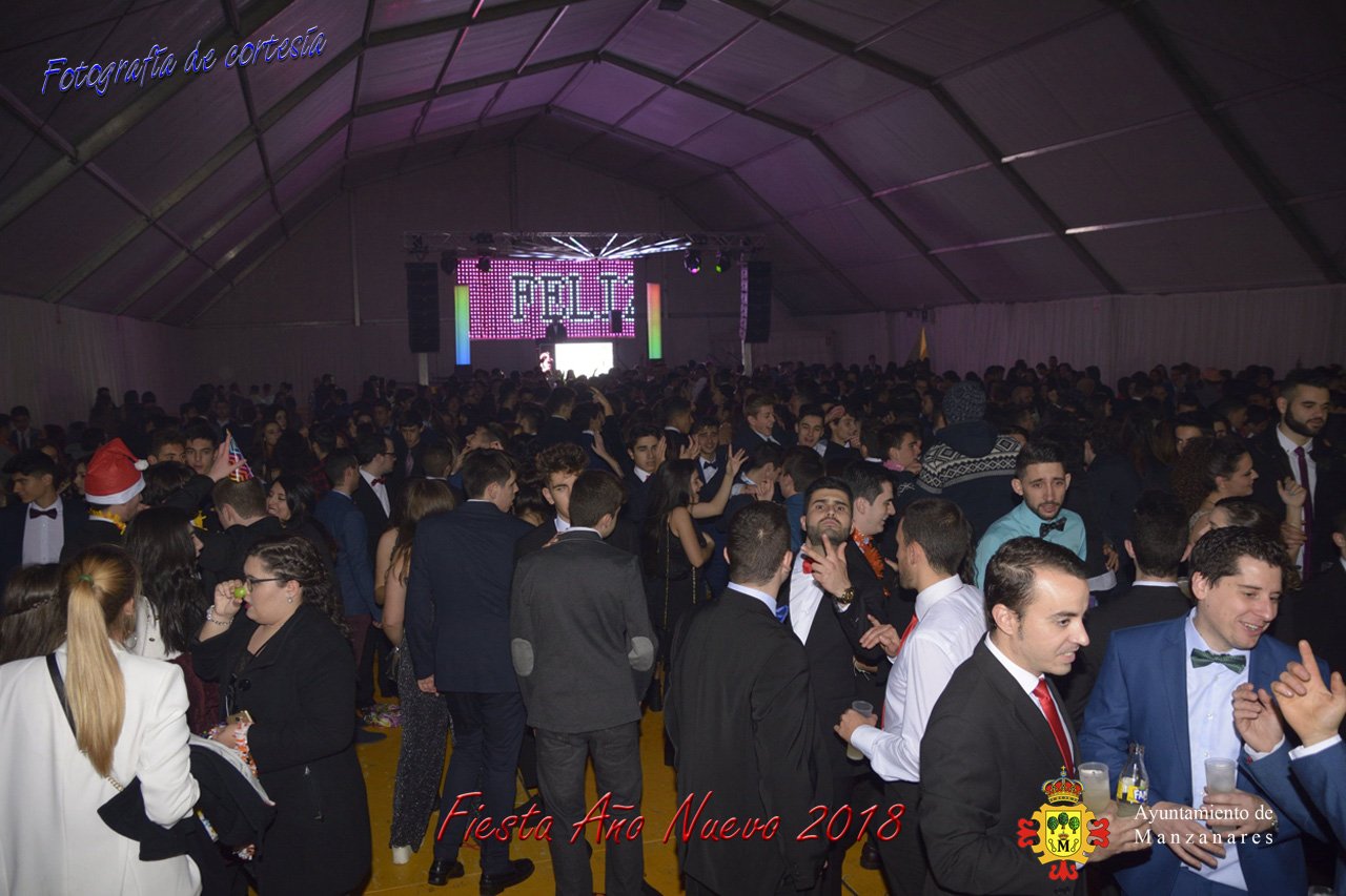 Fotografías durante la fiesta cotillón realizada al inaugurar el nuevo año 2018 bailando a ritmo de discomovil con CON DJ DART Y DJ JUANMA SOUND, en la Pérgola durante la madrugada del 1 de Enero, con motivo de las fiestas Navideñas 2017 de la localidad de Manzanares, Ciudad Real.