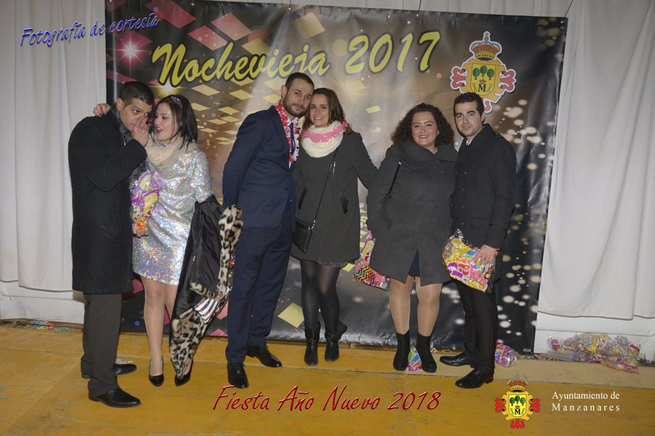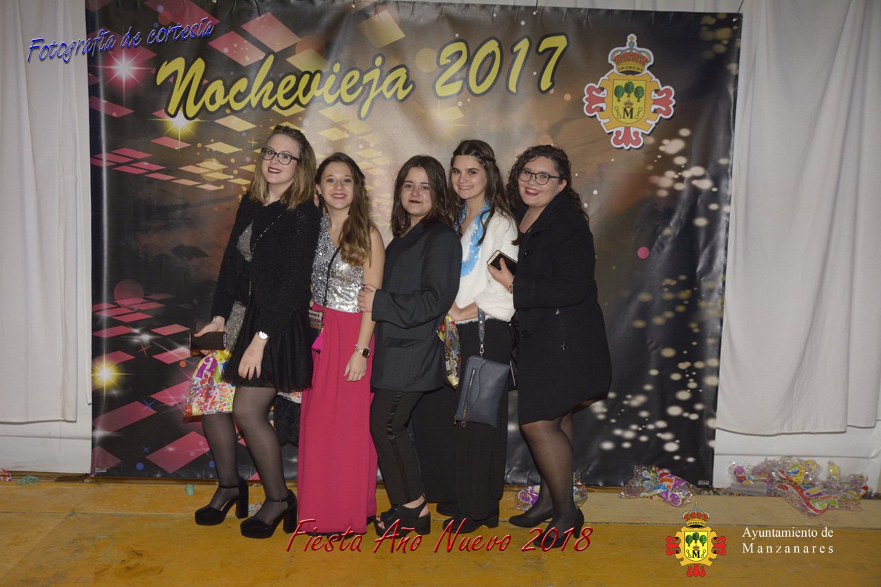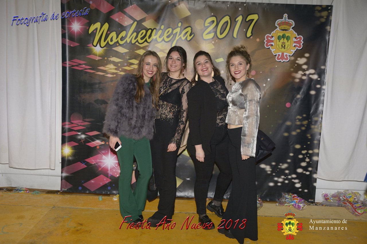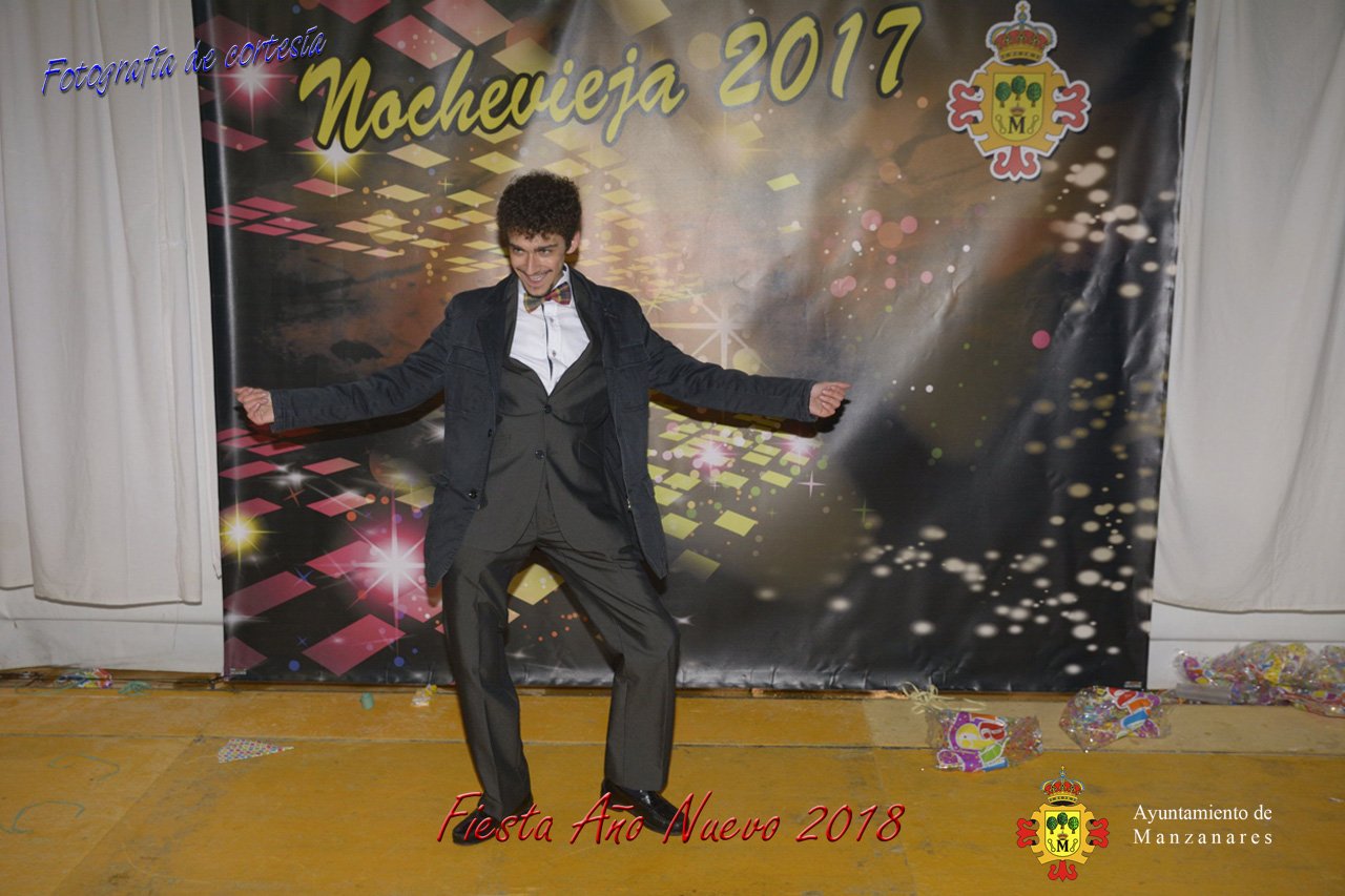 Fotografías durante la fiesta cotillón realizada al inaugurar el nuevo año 2018 bailando a ritmo de discomovil con CON DJ DART Y DJ JUANMA SOUND, en la Pérgola durante la madrugada del 1 de Enero, con motivo de las fiestas Navideñas 2017 de la localidad de Manzanares, Ciudad Real.