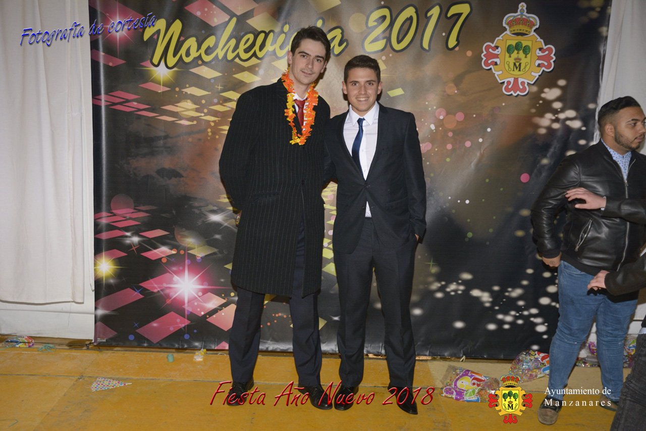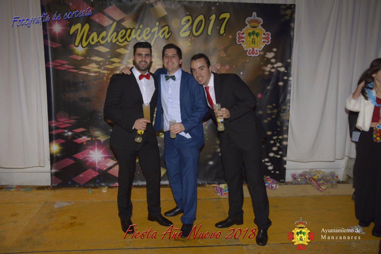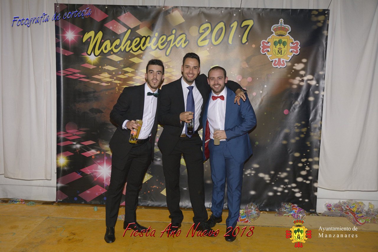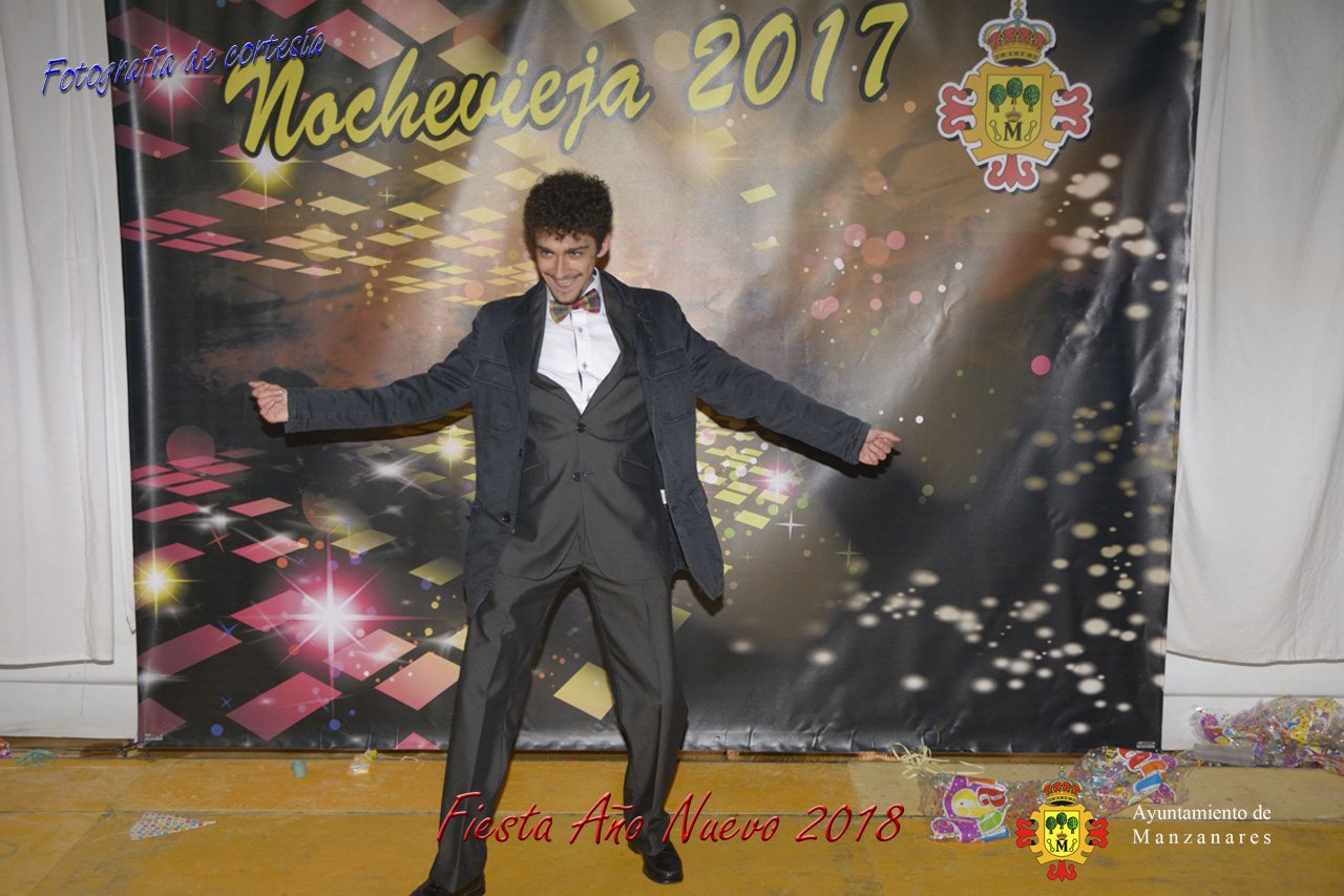 Fotografías durante la fiesta cotillón realizada al inaugurar el nuevo año 2018 bailando a ritmo de discomovil con CON DJ DART Y DJ JUANMA SOUND, en la Pérgola durante la madrugada del 1 de Enero, con motivo de las fiestas Navideñas 2017 de la localidad de Manzanares, Ciudad Real.