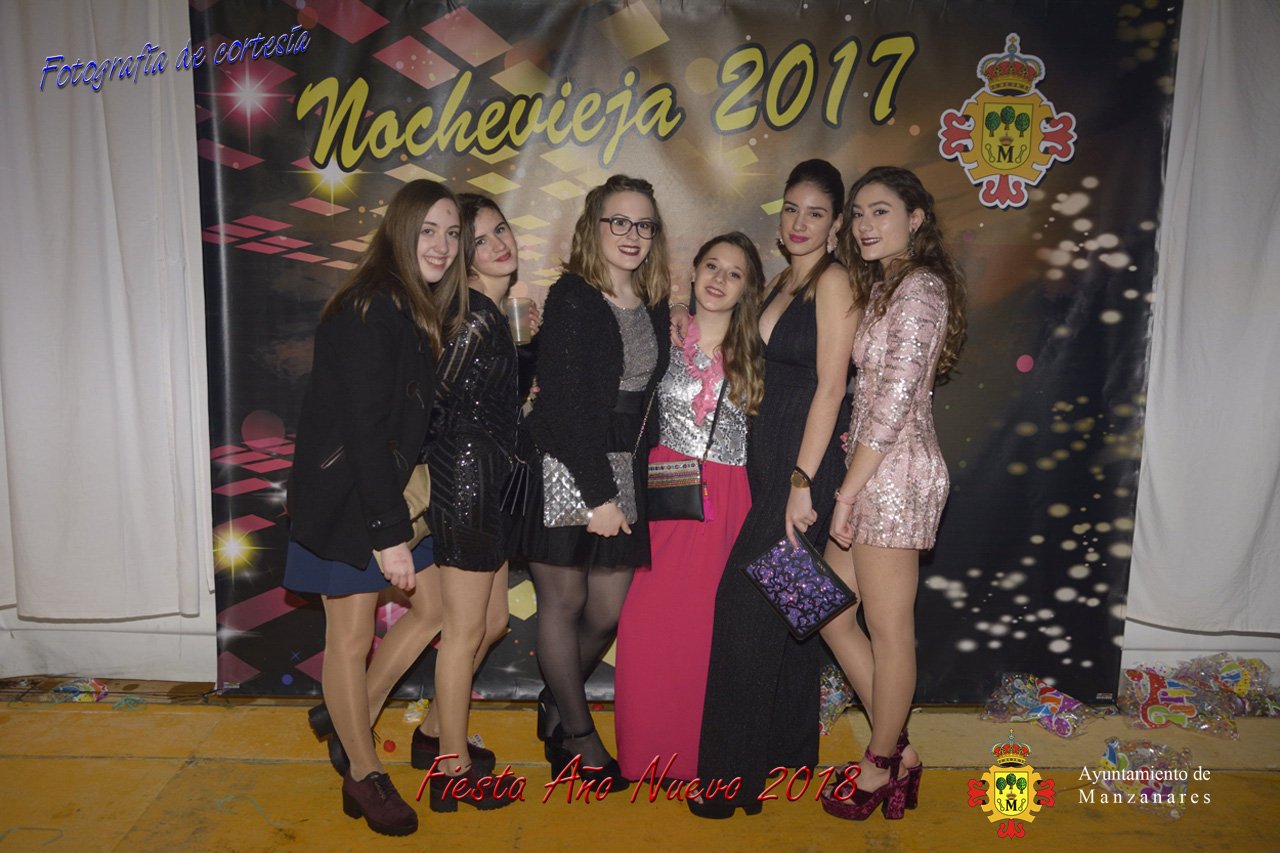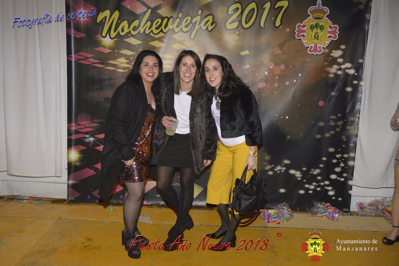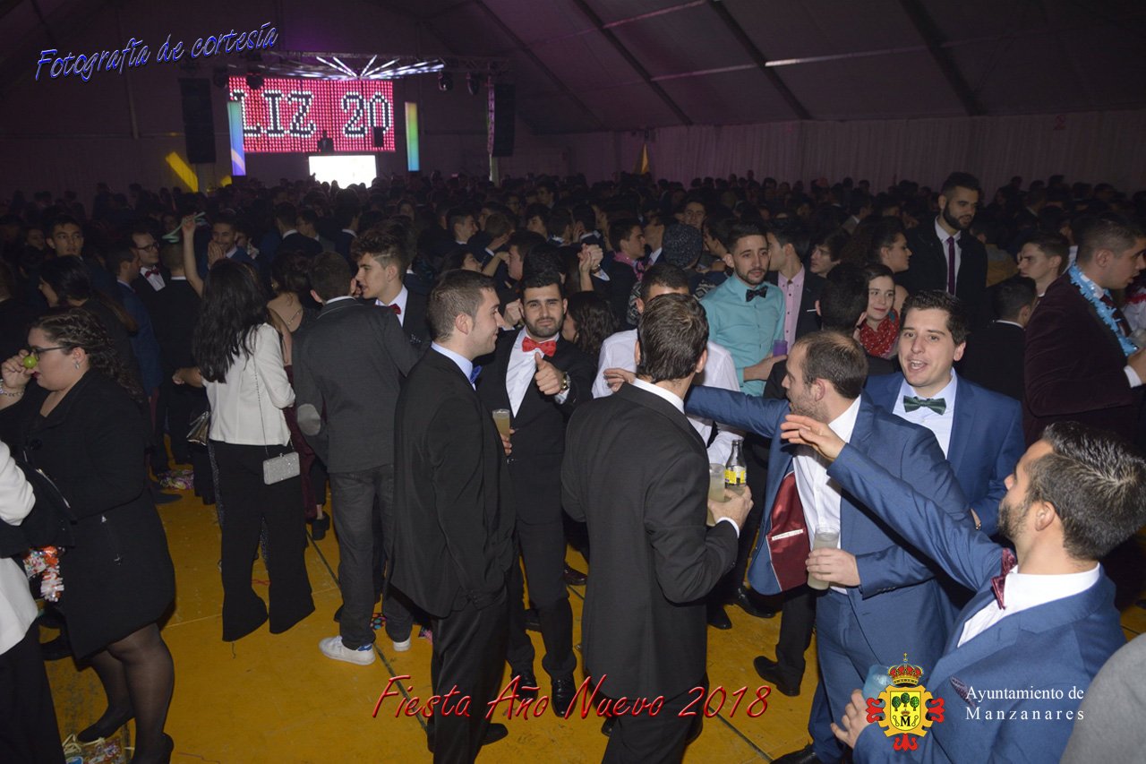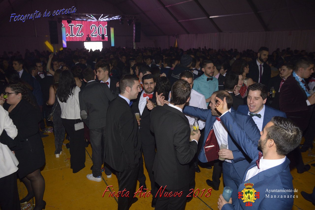 Fotografías durante la fiesta cotillón realizada al inaugurar el nuevo año 2018 bailando a ritmo de discomovil con CON DJ DART Y DJ JUANMA SOUND, en la Pérgola durante la madrugada del 1 de Enero, con motivo de las fiestas Navideñas 2017 de la localidad de Manzanares, Ciudad Real.