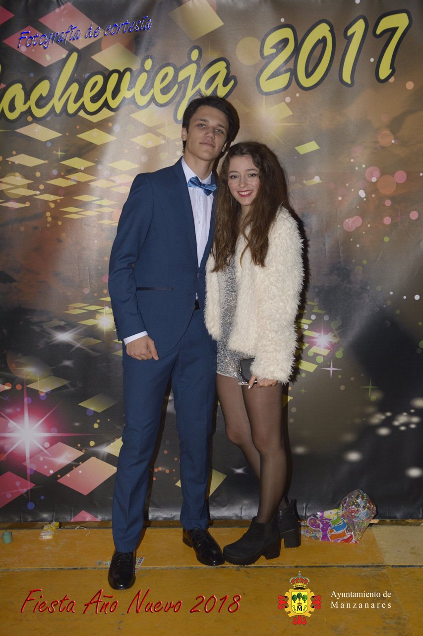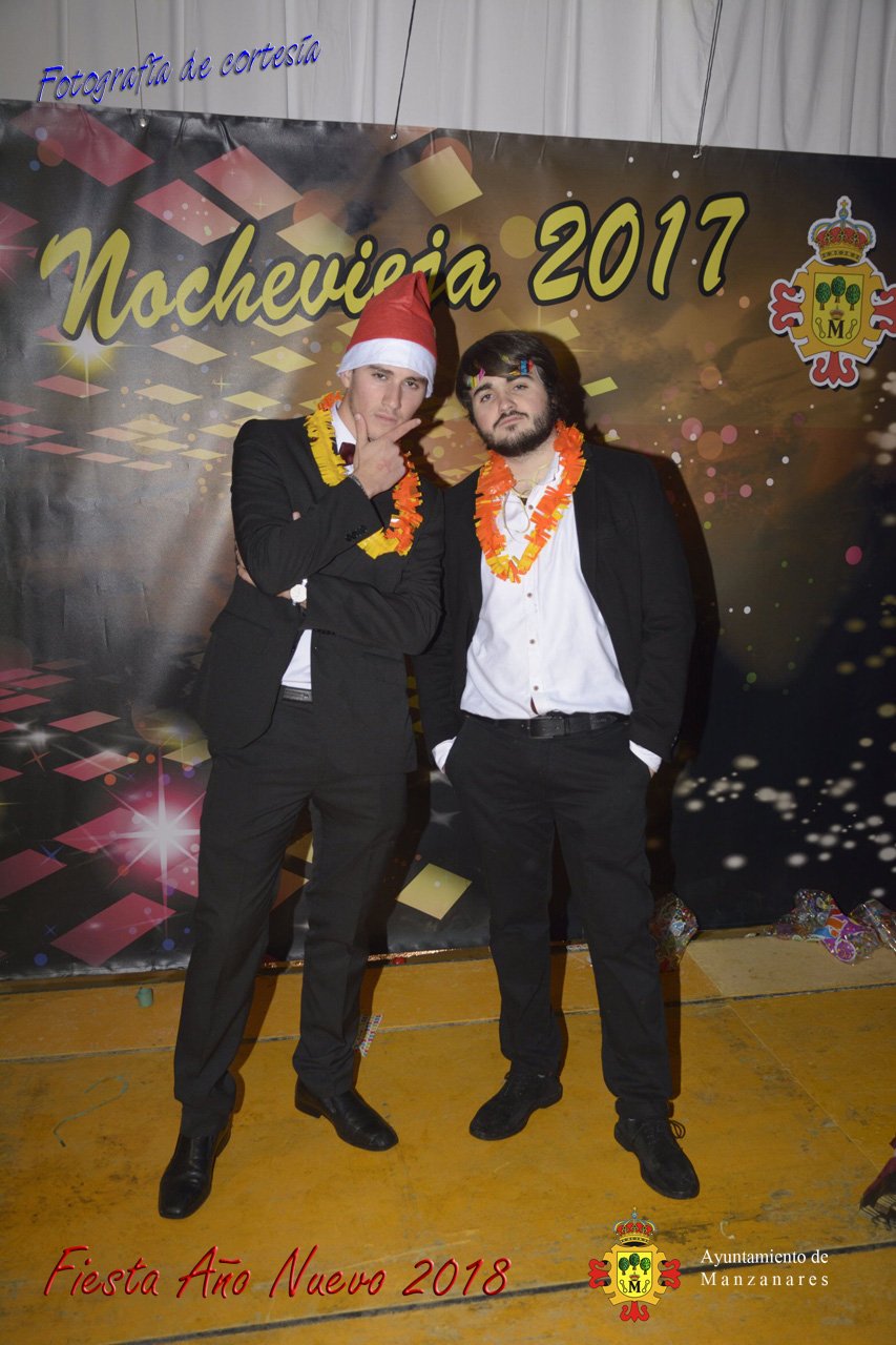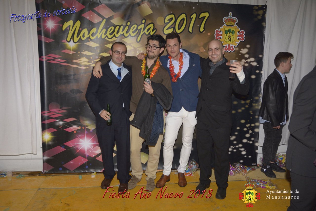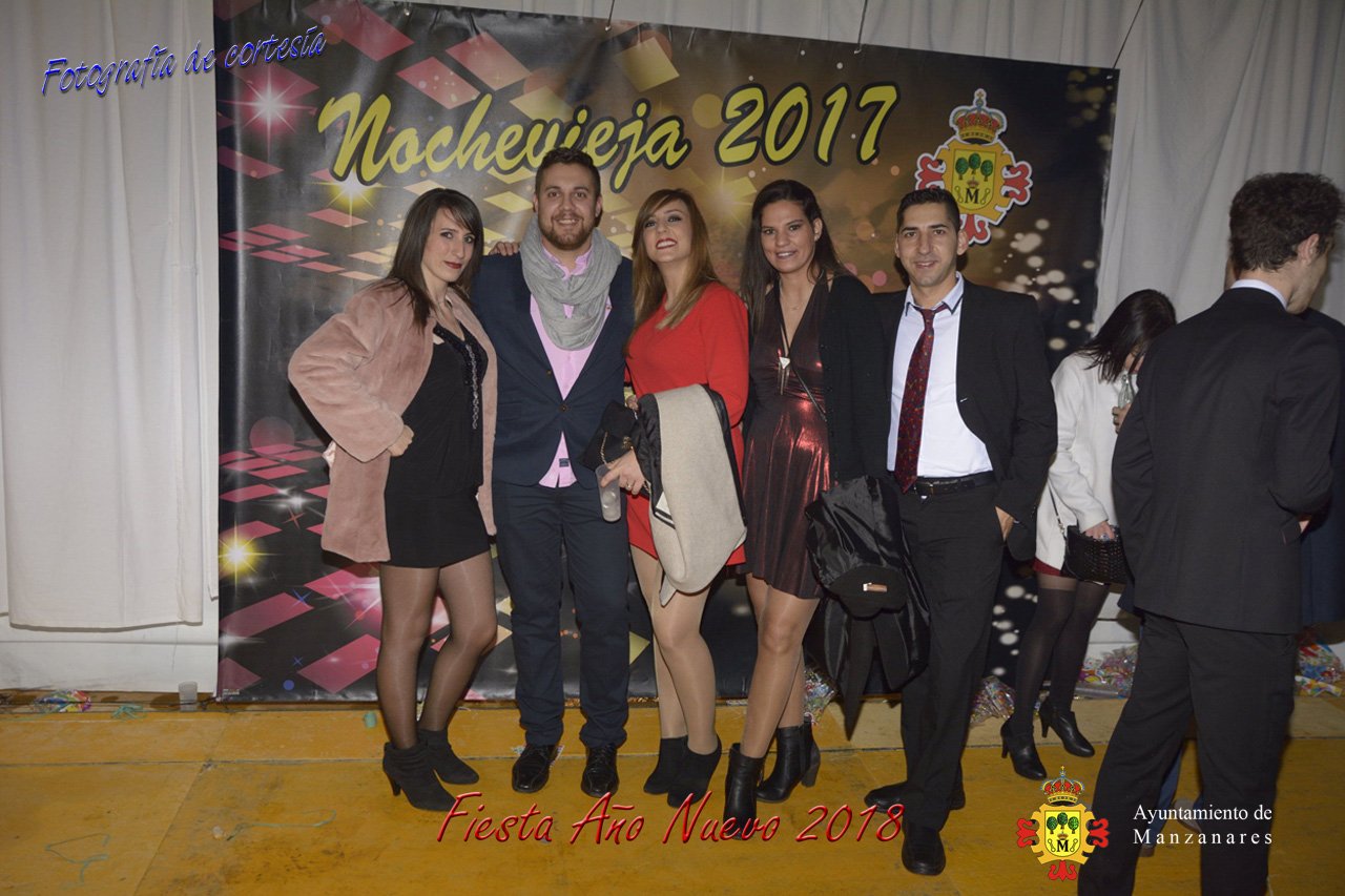 Fotografías durante la fiesta cotillón realizada al inaugurar el nuevo año 2018 bailando a ritmo de discomovil con CON DJ DART Y DJ JUANMA SOUND, en la Pérgola durante la madrugada del 1 de Enero, con motivo de las fiestas Navideñas 2017 de la localidad de Manzanares, Ciudad Real.