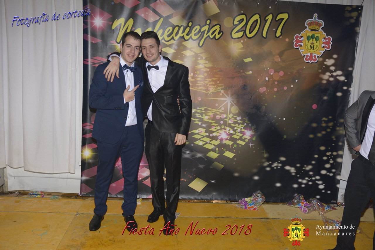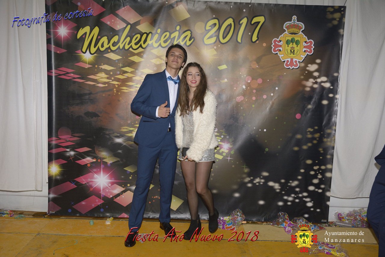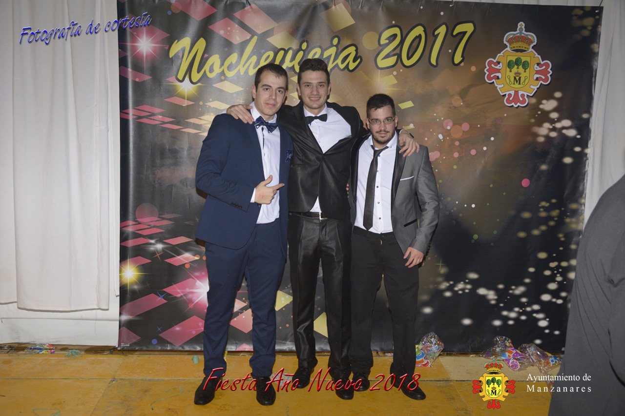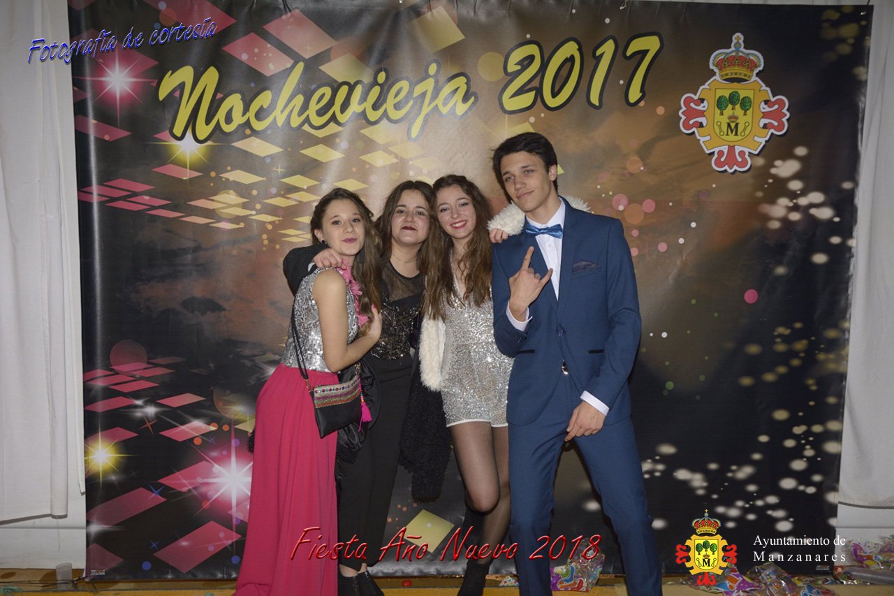 Fotografías durante la fiesta cotillón realizada al inaugurar el nuevo año 2018 bailando a ritmo de discomovil con CON DJ DART Y DJ JUANMA SOUND, en la Pérgola durante la madrugada del 1 de Enero, con motivo de las fiestas Navideñas 2017 de la localidad de Manzanares, Ciudad Real.