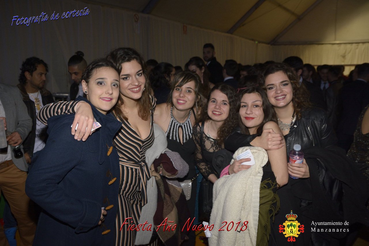 Fotografías durante la fiesta cotillón realizada al inaugurar el nuevo año 2018 bailando a ritmo de discomovil con CON DJ DART Y DJ JUANMA SOUND, en la Pérgola durante la madrugada del 1 de Enero, con motivo de las fiestas Navideñas 2017 de la localidad de Manzanares, Ciudad Real.