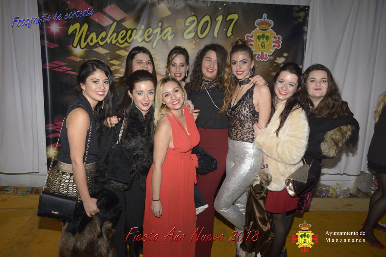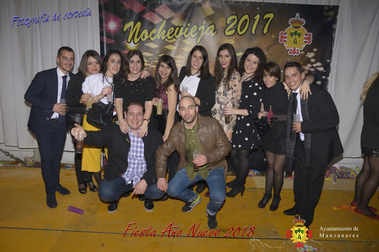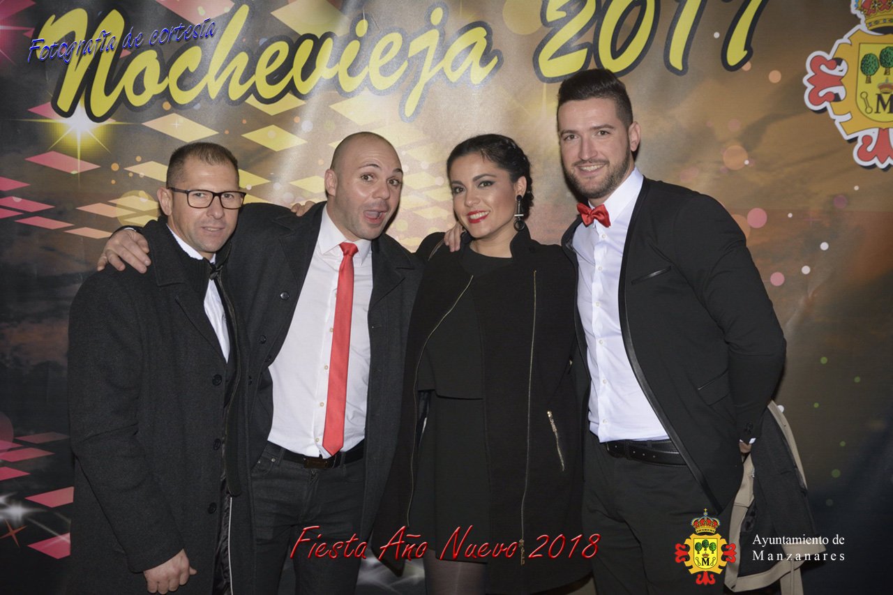 Fotografías durante la fiesta cotillón realizada al inaugurar el nuevo año 2018 bailando a ritmo de discomovil con CON DJ DART Y DJ JUANMA SOUND, en la Pérgola durante la madrugada del 1 de Enero, con motivo de las fiestas Navideñas 2017 de la localidad de Manzanares, Ciudad Real.
