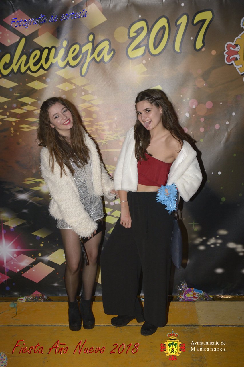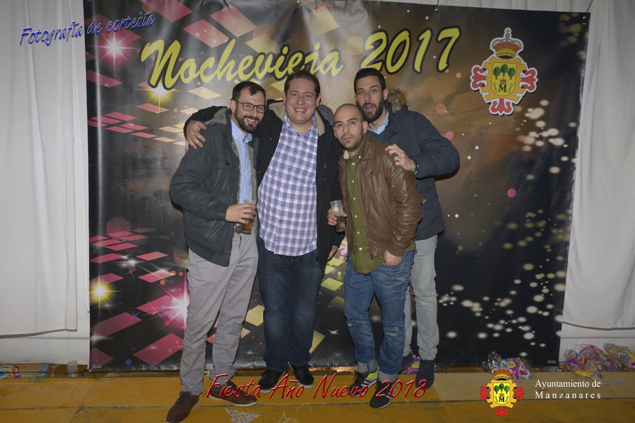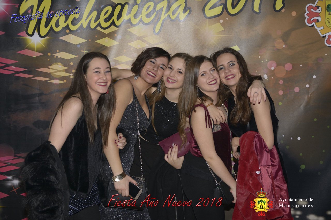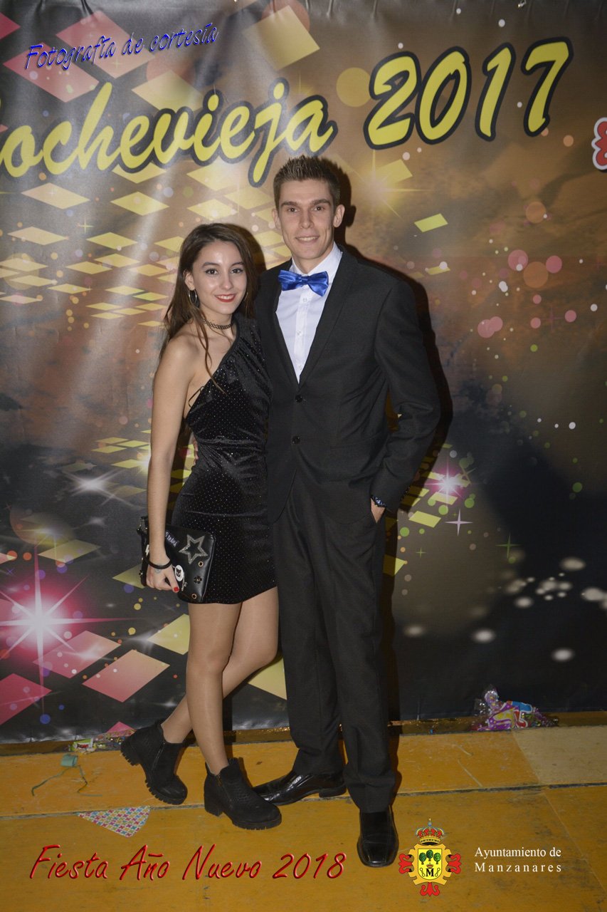 Fotografías durante la fiesta cotillón realizada al inaugurar el nuevo año 2018 bailando a ritmo de discomovil con CON DJ DART Y DJ JUANMA SOUND, en la Pérgola durante la madrugada del 1 de Enero, con motivo de las fiestas Navideñas 2017 de la localidad de Manzanares, Ciudad Real.