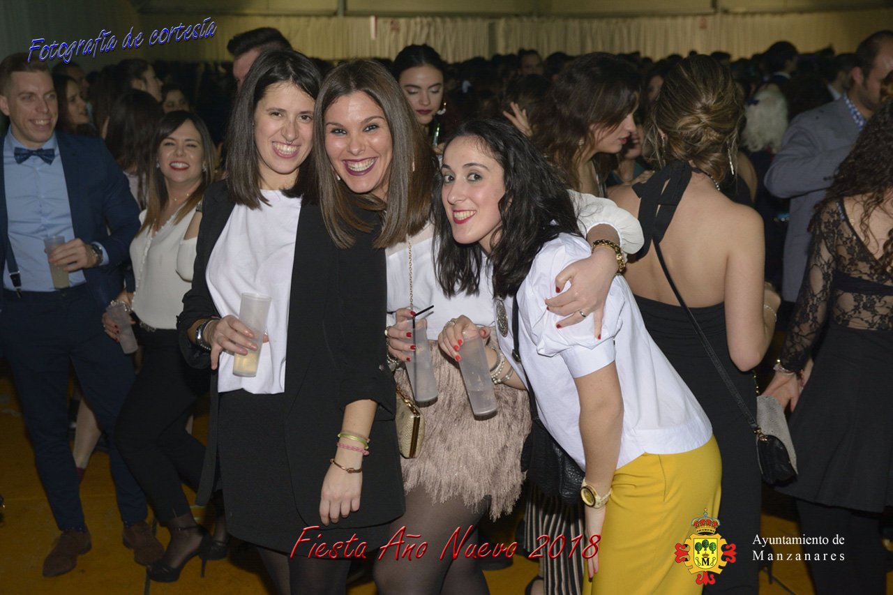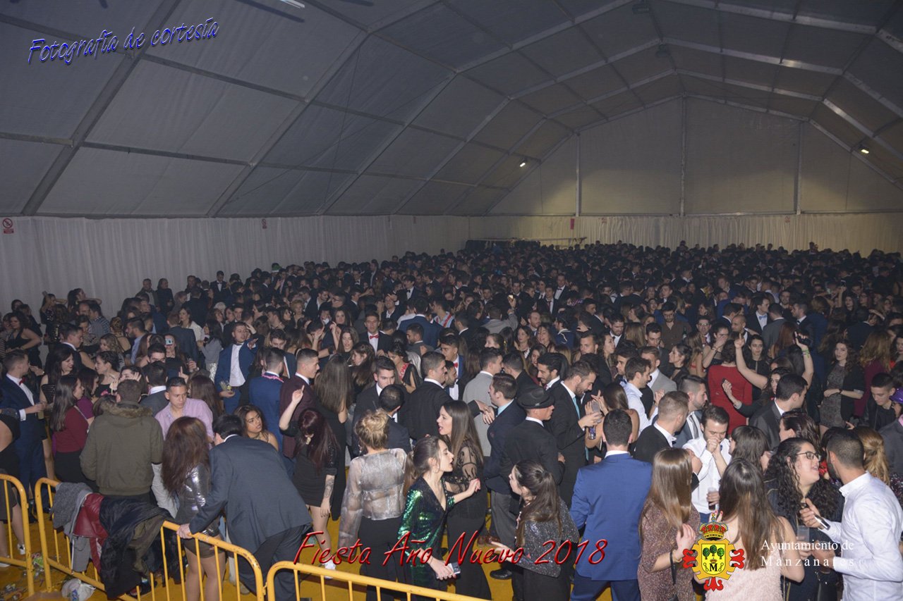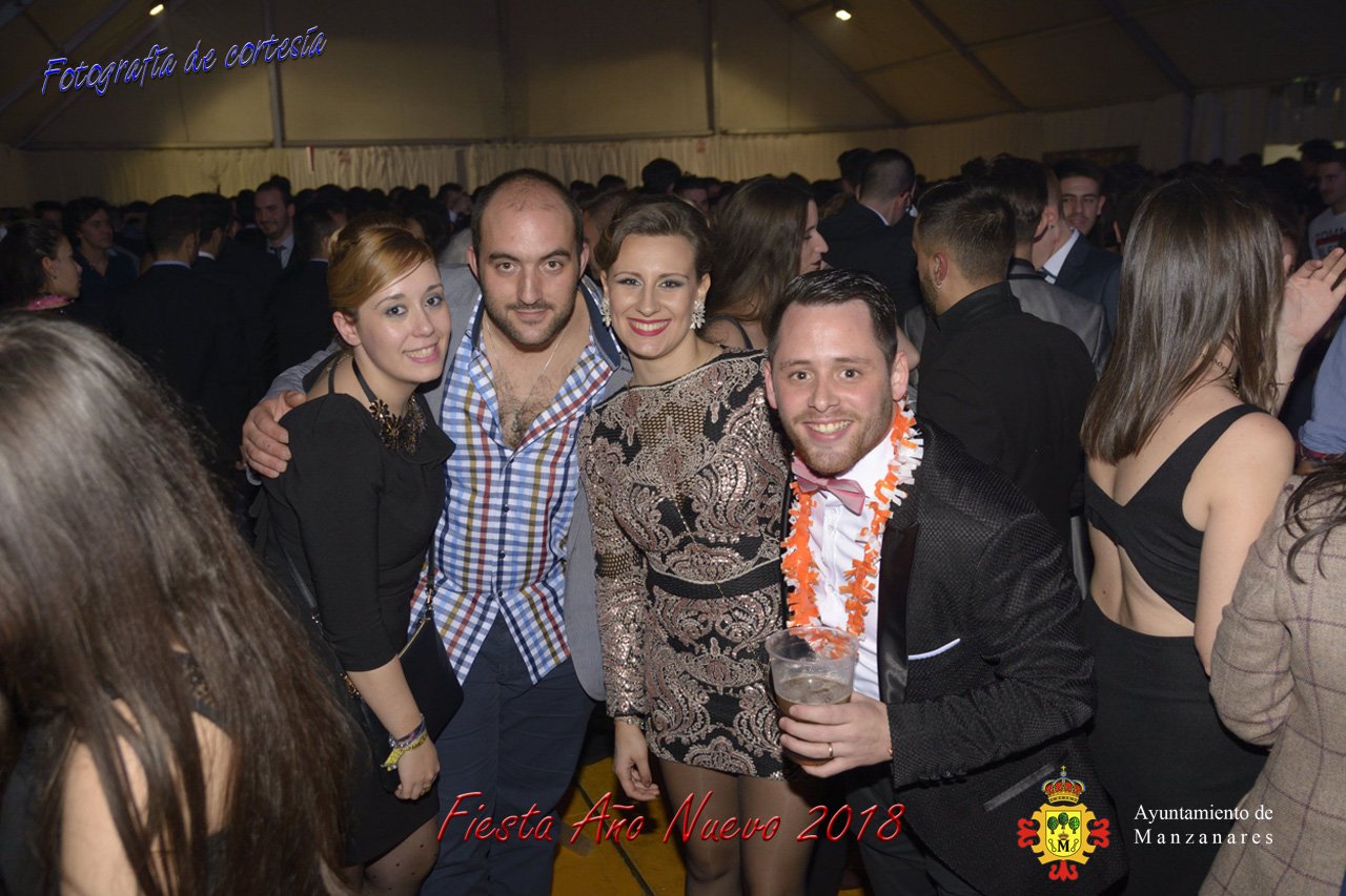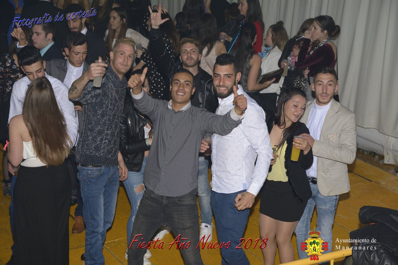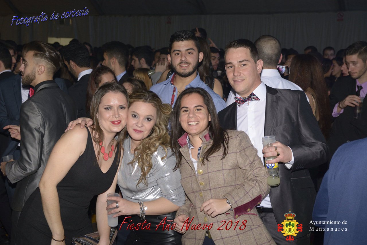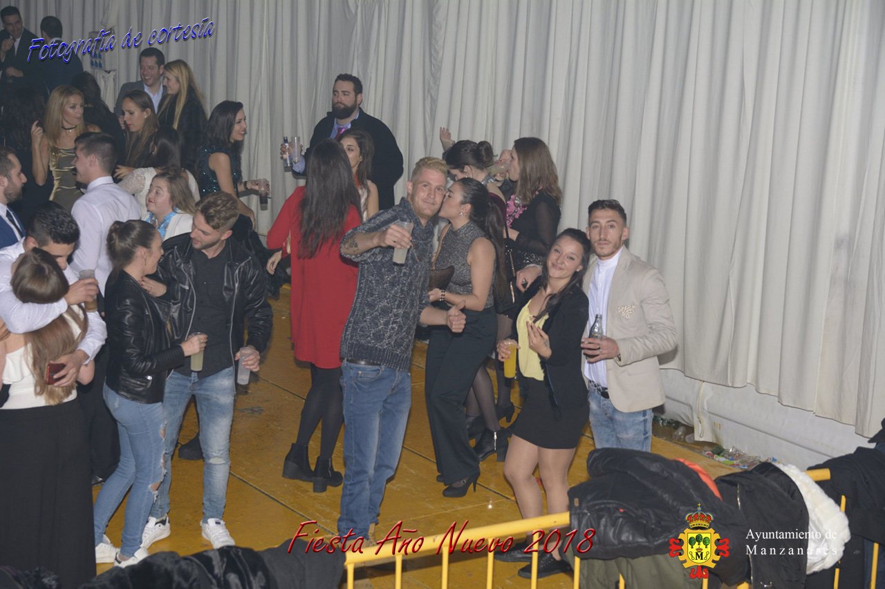 Fotografías durante la fiesta cotillón realizada al inaugurar el nuevo año 2018 bailando a ritmo de discomovil con CON DJ DART Y DJ JUANMA SOUND, en la Pérgola durante la madrugada del 1 de Enero, con motivo de las fiestas Navideñas 2017 de la localidad de Manzanares, Ciudad Real.