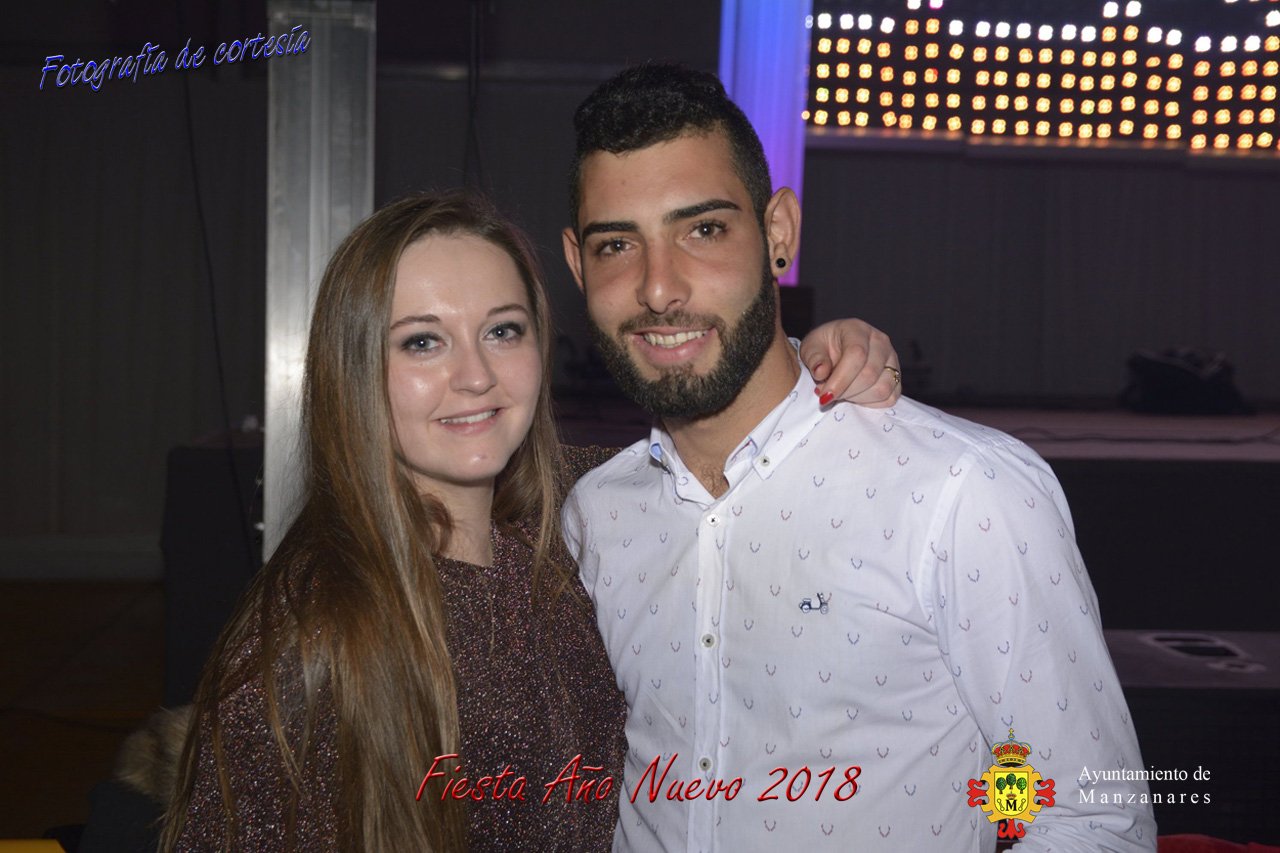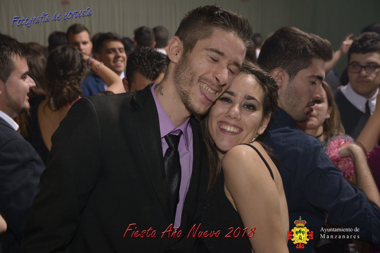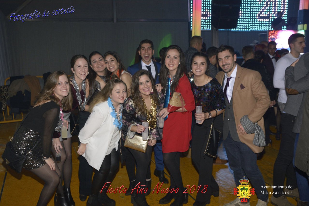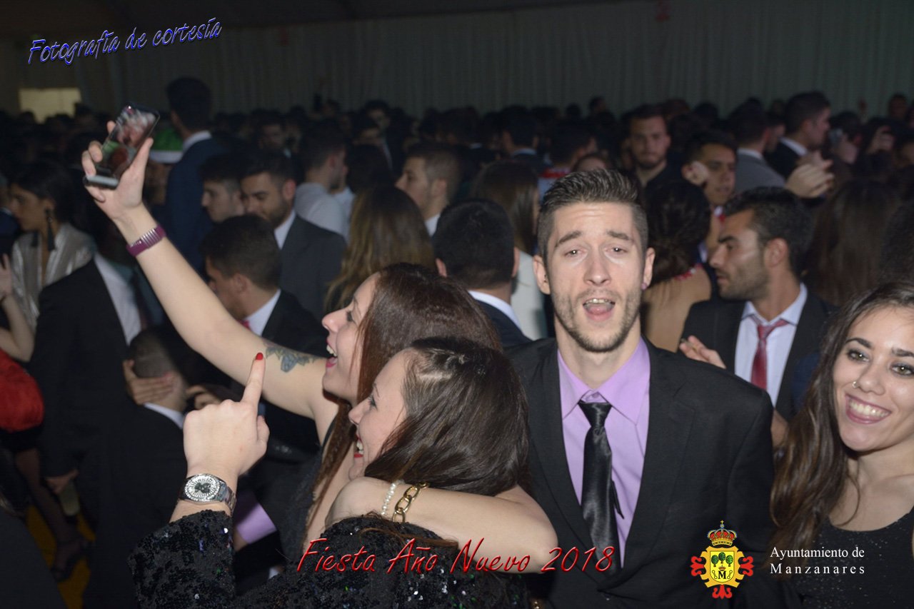 Fotografías durante la fiesta cotillón realizada al inaugurar el nuevo año 2018 bailando a ritmo de discomovil con CON DJ DART Y DJ JUANMA SOUND, en la Pérgola durante la madrugada del 1 de Enero, con motivo de las fiestas Navideñas 2017 de la localidad de Manzanares, Ciudad Real.